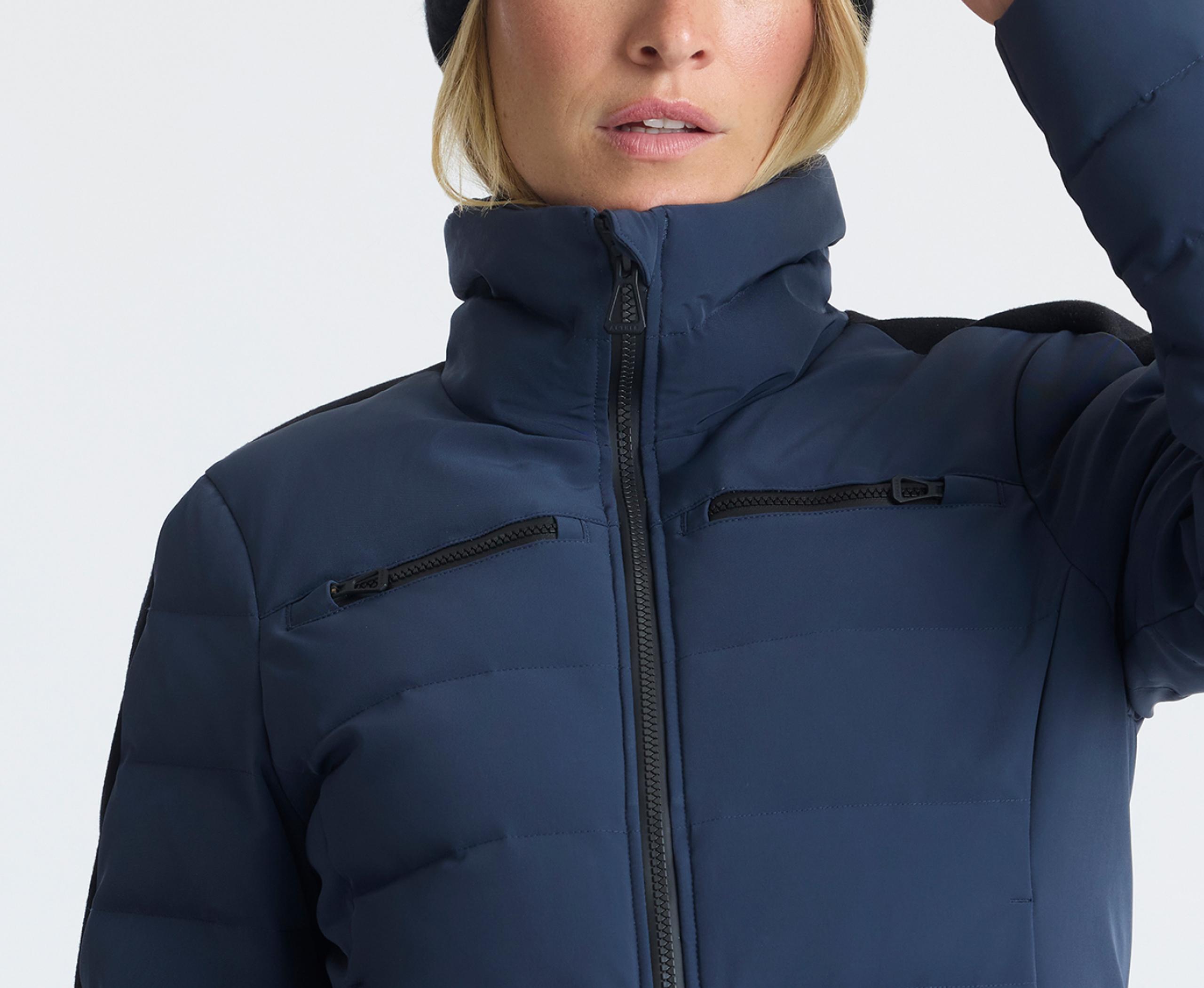 Regular Price$825.00insulated collar & contrast side panelsColor: Jadewood Greennew best seller Nina Cardigan-Sleeve Down Jacket
