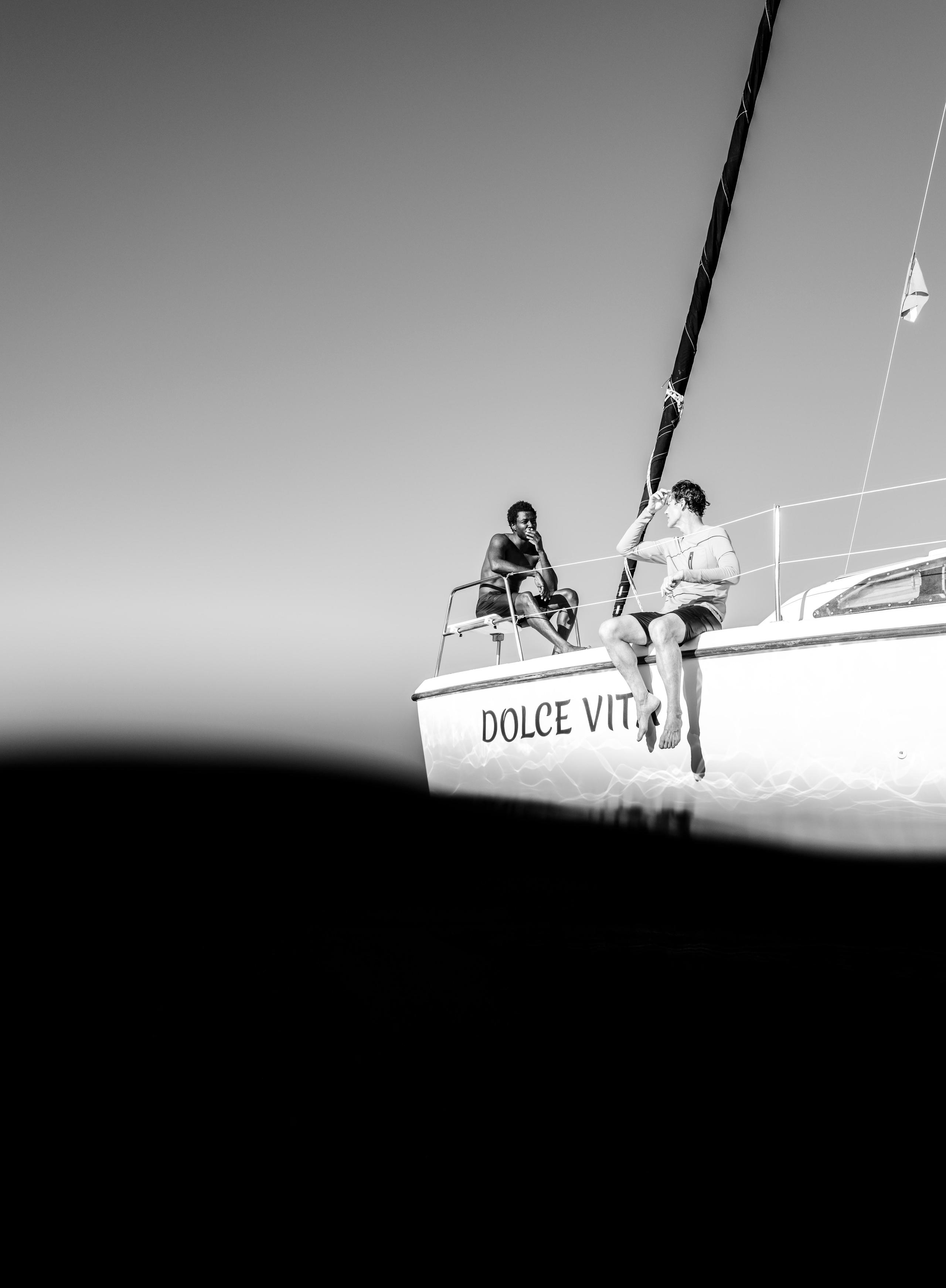 The next morning, we rose bright and early. After a traditional Hawaiian breakfast of Loco Moco, we then made our way to one of the region’s marinas where we boarded a chartered sailboat. The early afternoon was spent photographing our Spring ’25 Collection on the water, though once we got the shots we needed, the real fun began. This took the form of a few hours of diving and snorkeling, which was then followed by several more hours of deep-sea fishing. We finished out the day lounging topside, before watching the sun set above the waves once again.