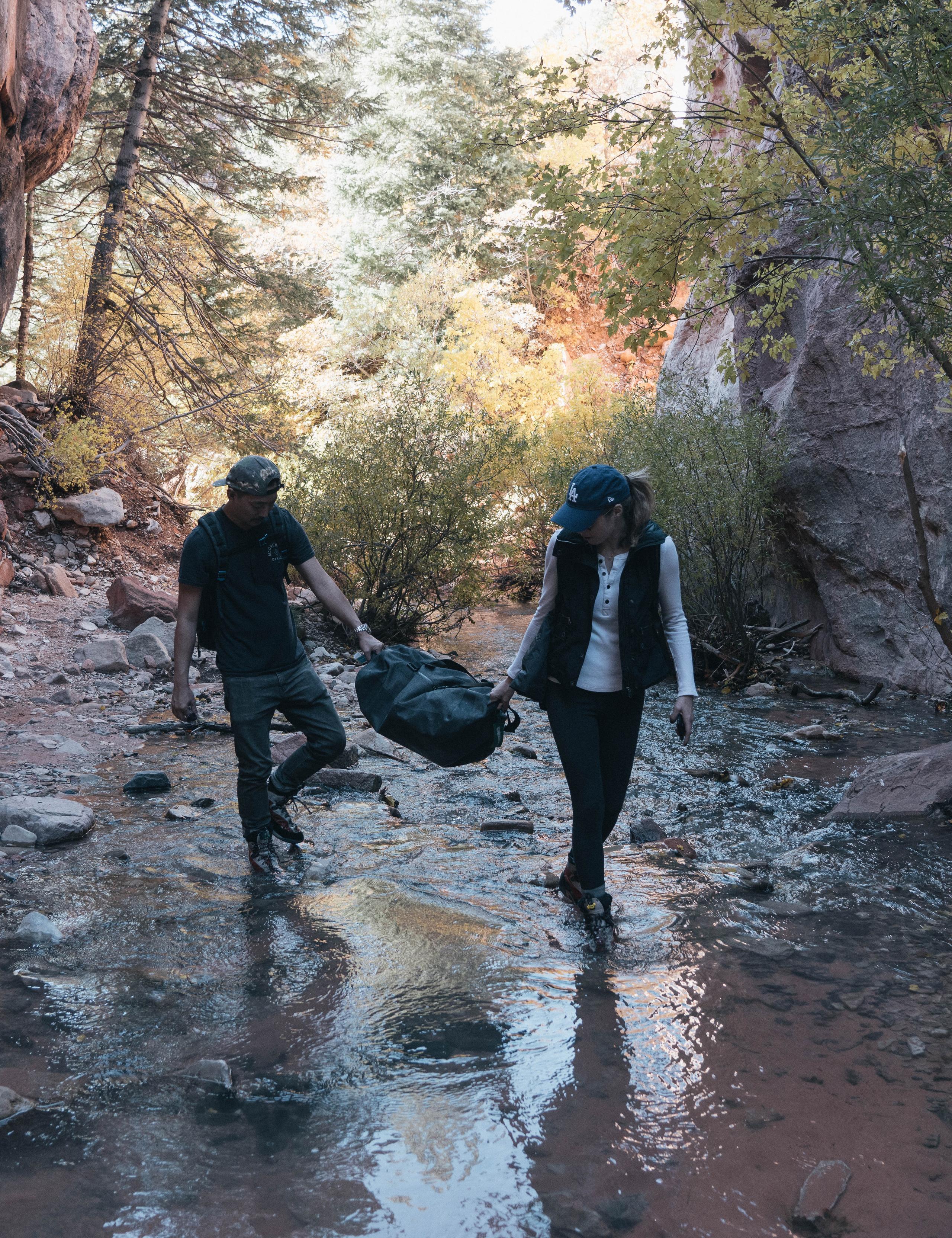 For our Spring '19 collection we traveled to Southern Utah to hike, explore, and photograph our men's and women's collections against the state's epic scenery. Starting the adventure with a road trip from our LA headquarters to Zion, Utah, in the as-yet-to-be-released Audi Q8, we drove the six-plus hours to our home base for a few days, the luxury camping destination Under Canvas. Throughout our stay, we explored Zion National Park and its surrounding areas, including spending most of a day traversing through the rocks, water, and beautiful slot canyons of Kanarraville Falls. Here, some behind-the-scenes images from our Utah trip. Stay tuned for more photos when Spring/Summer ’19 launches early next year.