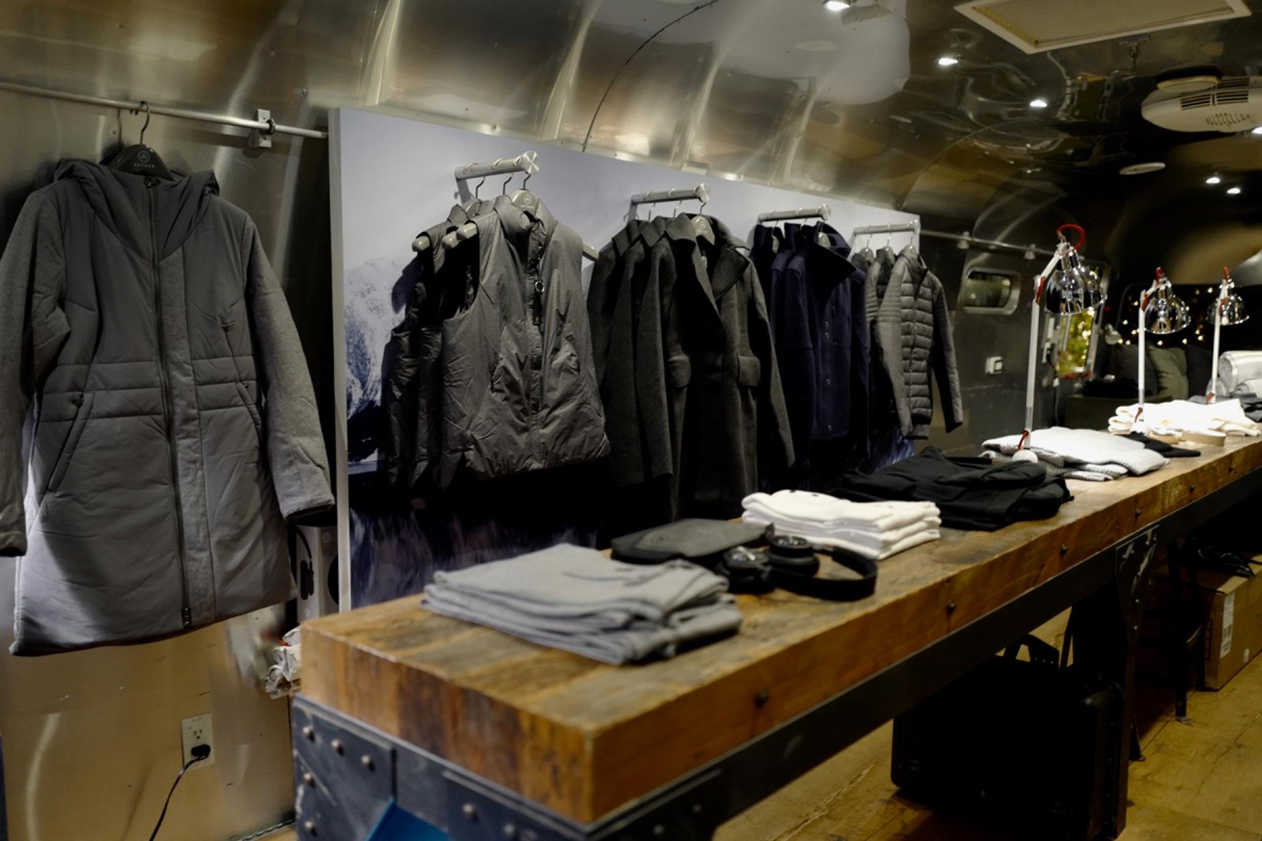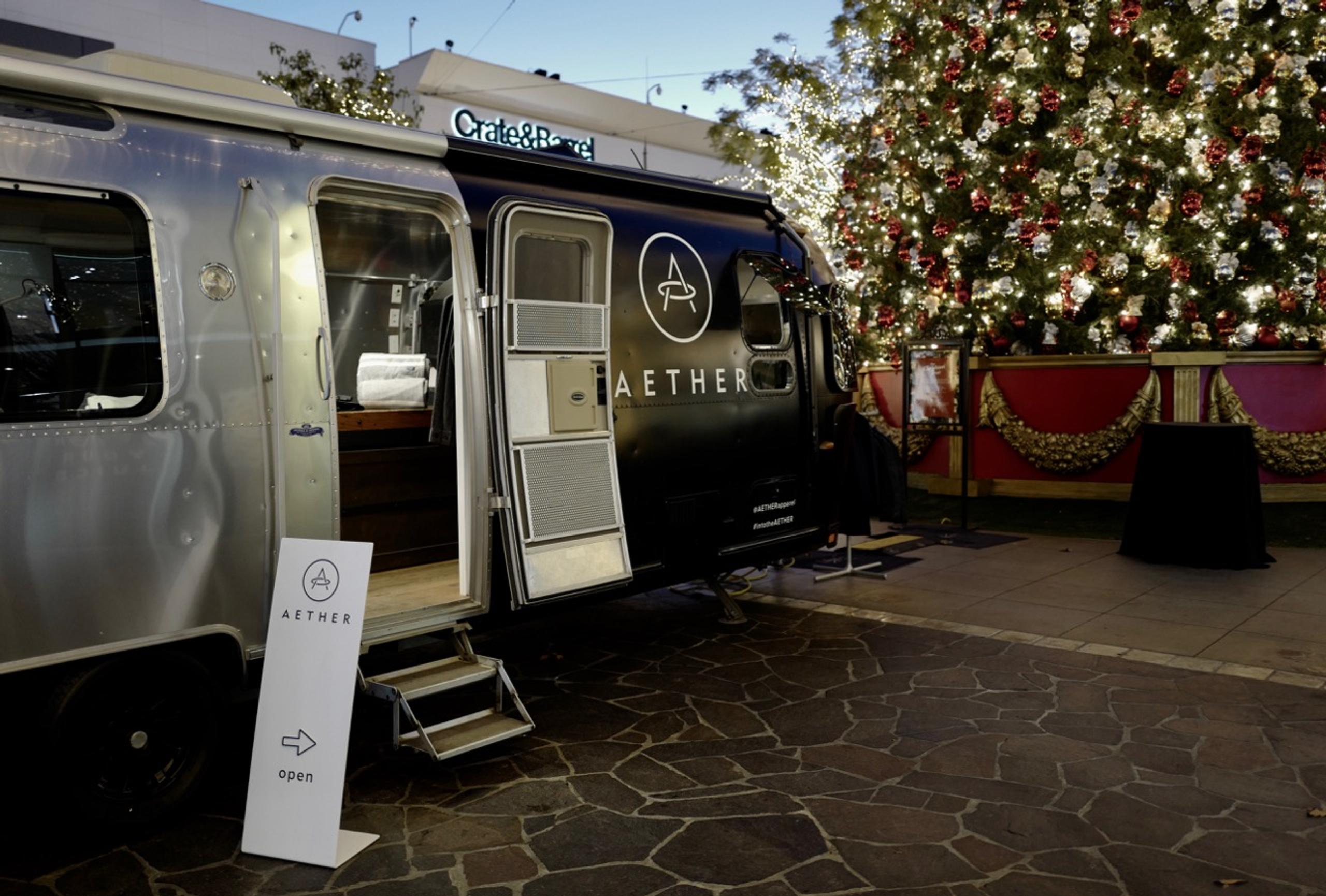 This holiday season, the AETHERstream has made its way to The Grove in LA, parking there through December 10. Featuring a curated mix of men's and women's styles from our F/W '17 collections, it's the ideal spot for holiday shopping for everyone on your list. The refurbished Airstream PanAmerica-turned-mobile store is stocked full of coats, sweaters, tees, accessories, and more. Last week, we kicked off the AETHERstream's arrival with a party hosted by us, The Chalkboard Mag, Pressed Juicery, Sugarfina, and The Grove. Guests came and shopped the AETHERstream, while enjoying sushi from Blue Ribbon Sushi, Pressed Freeze sundaes with Sugarfina toppings, wine from Winc, and a specialty whiskey cocktail from Mulholland Distilling. Here, some photos from the AETHERstream at The Grove at the event.