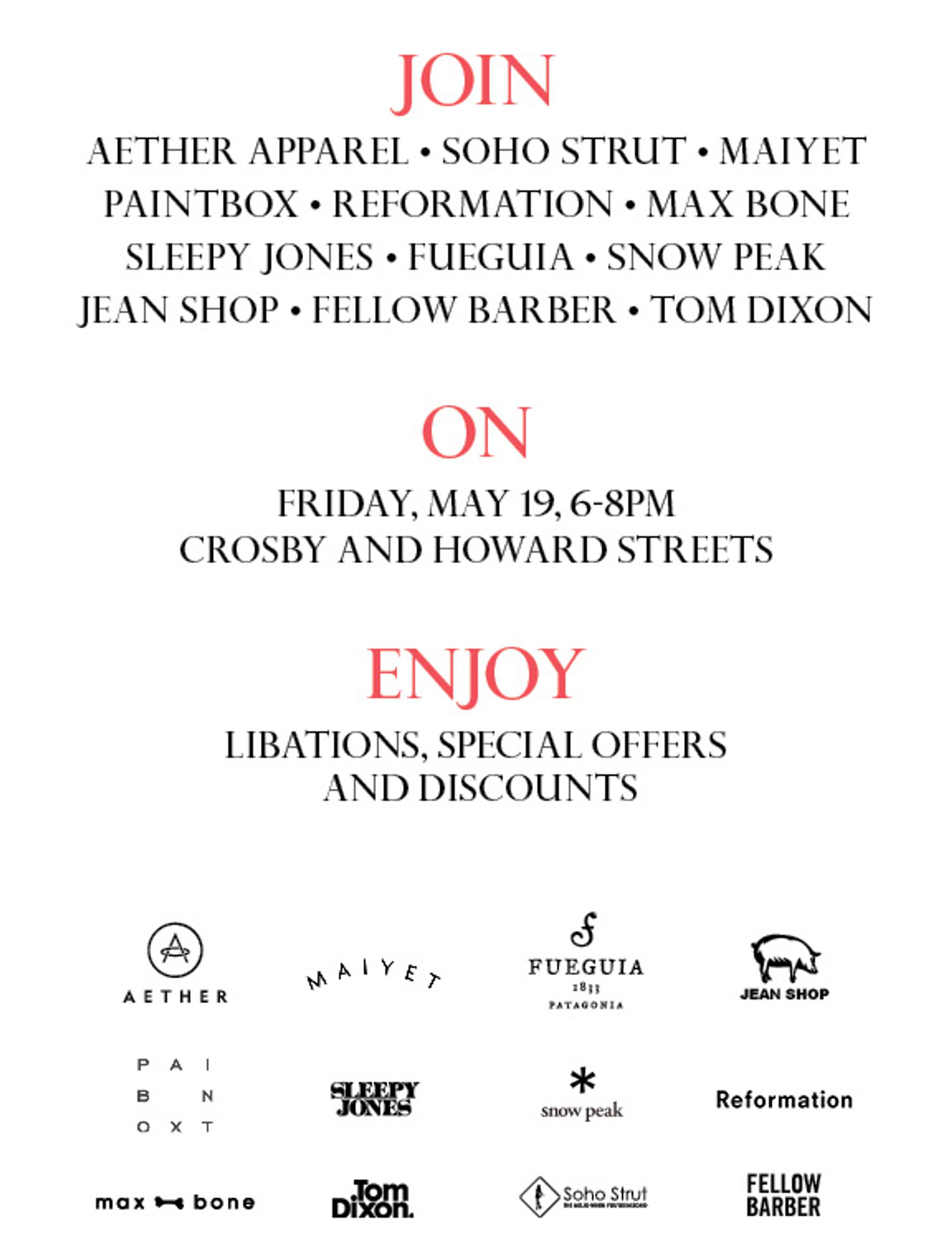 If you're in New York this week, join us and our neighbors in SoHo for a block party on Crosby and Howard streets this Friday from 6-8 p.m. There will be libations, discounts, and other special offers. RSVP here. Hope to see you there!