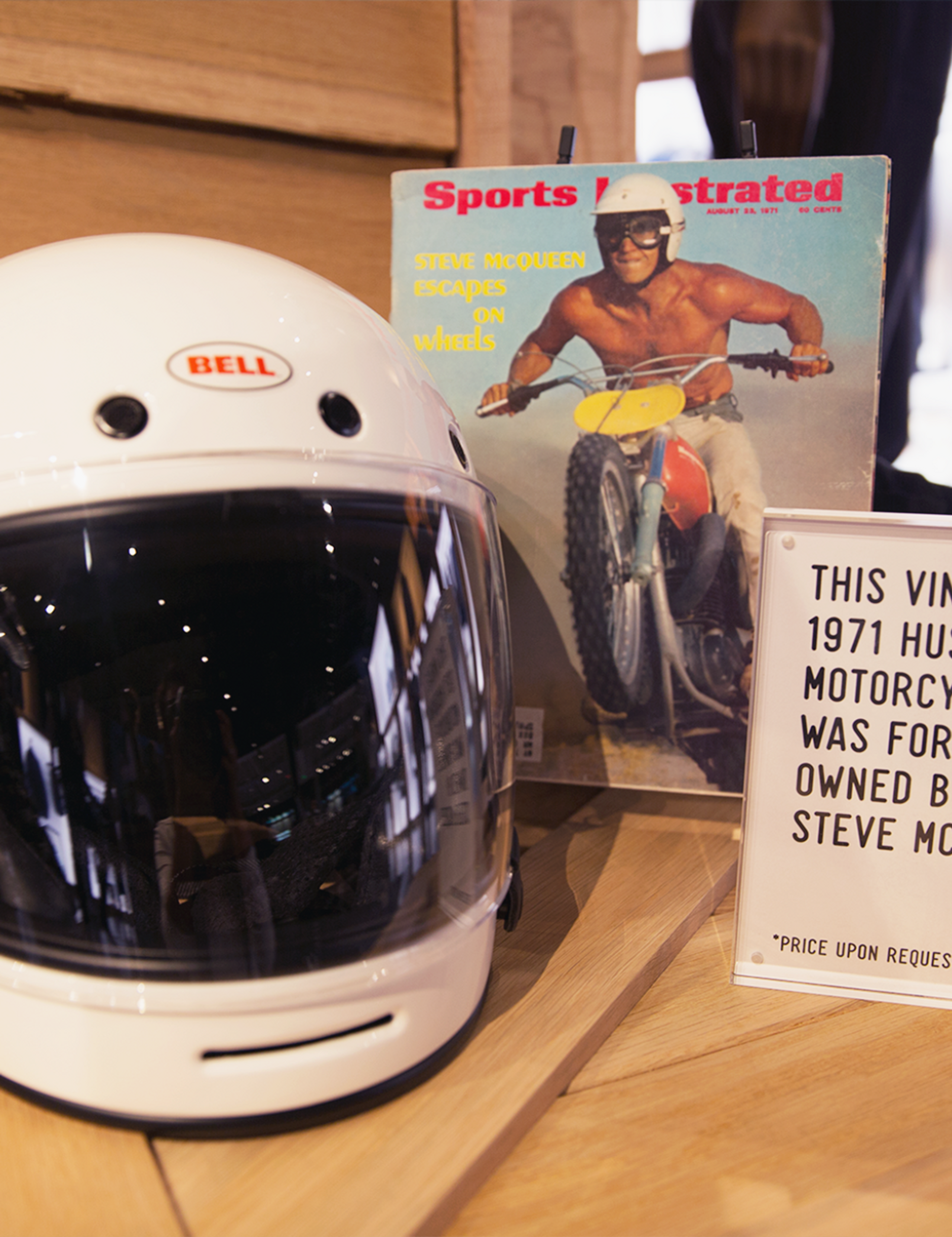 The Husqvarna 250 Cross motorcycle currently on display in LA was bought by McQueen in 1971 for $898 (for context, a 400 Cross he once owned was sold for $144,500 at auction in 2011). The 250 has been almost completely restored and is in running condition; it’s equipped with a single-cylinder engine, four-speed transmission, and weighs only 208 lbs, making it one of the lightest dirt bikes of its time. Like most of McQueen's vehicles, the bike was purchased through his film-production company, Solar Productions in Hollywood.