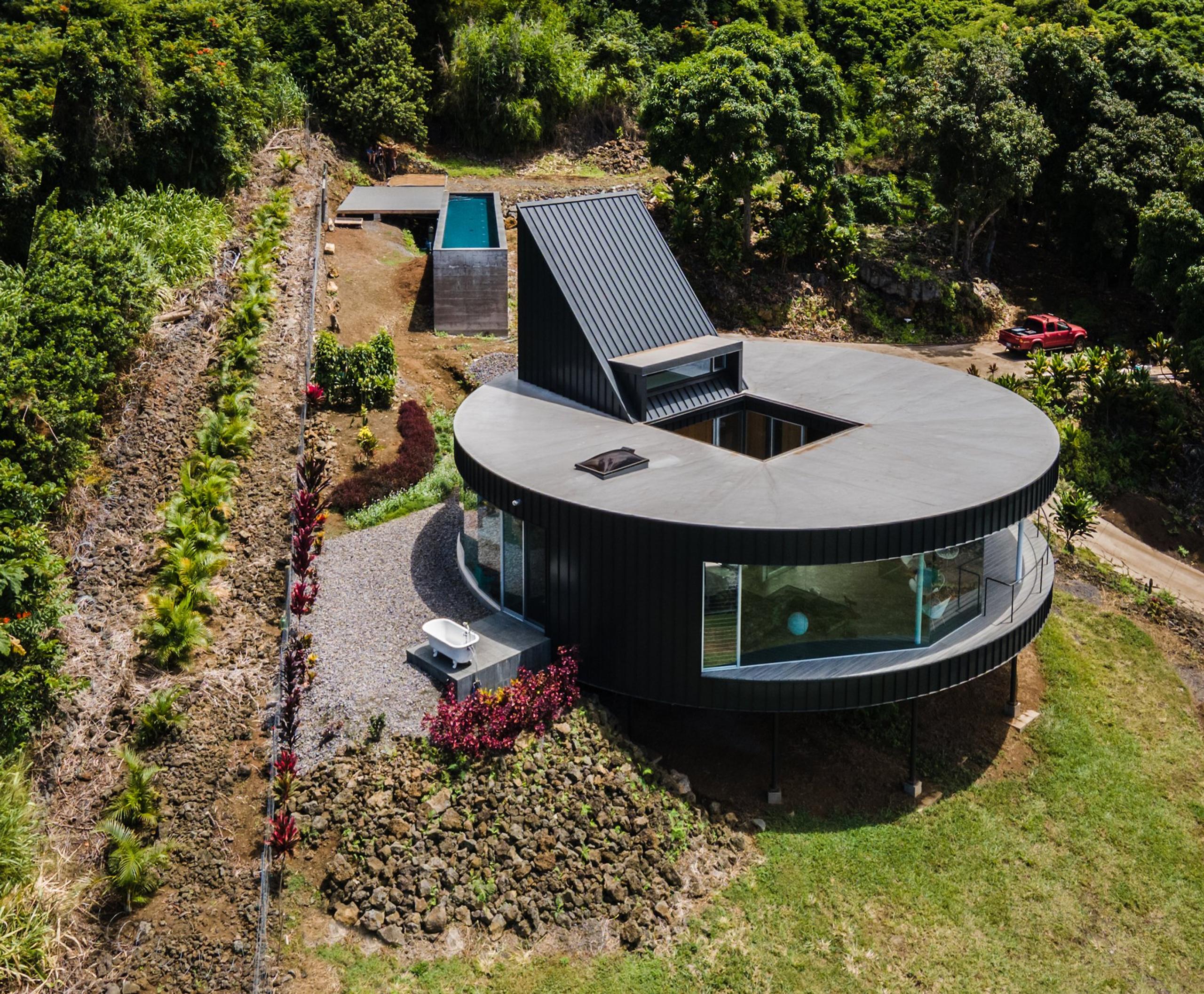 Having now developed a distinctive, almost brutalist-inspired motif, Steely’s trio of latest works perfectly encapsulate his firm’s hallmark style of homes—with these three projects being the D Fin House, the Musubi House, and the Pāpa’aloa Homestead.