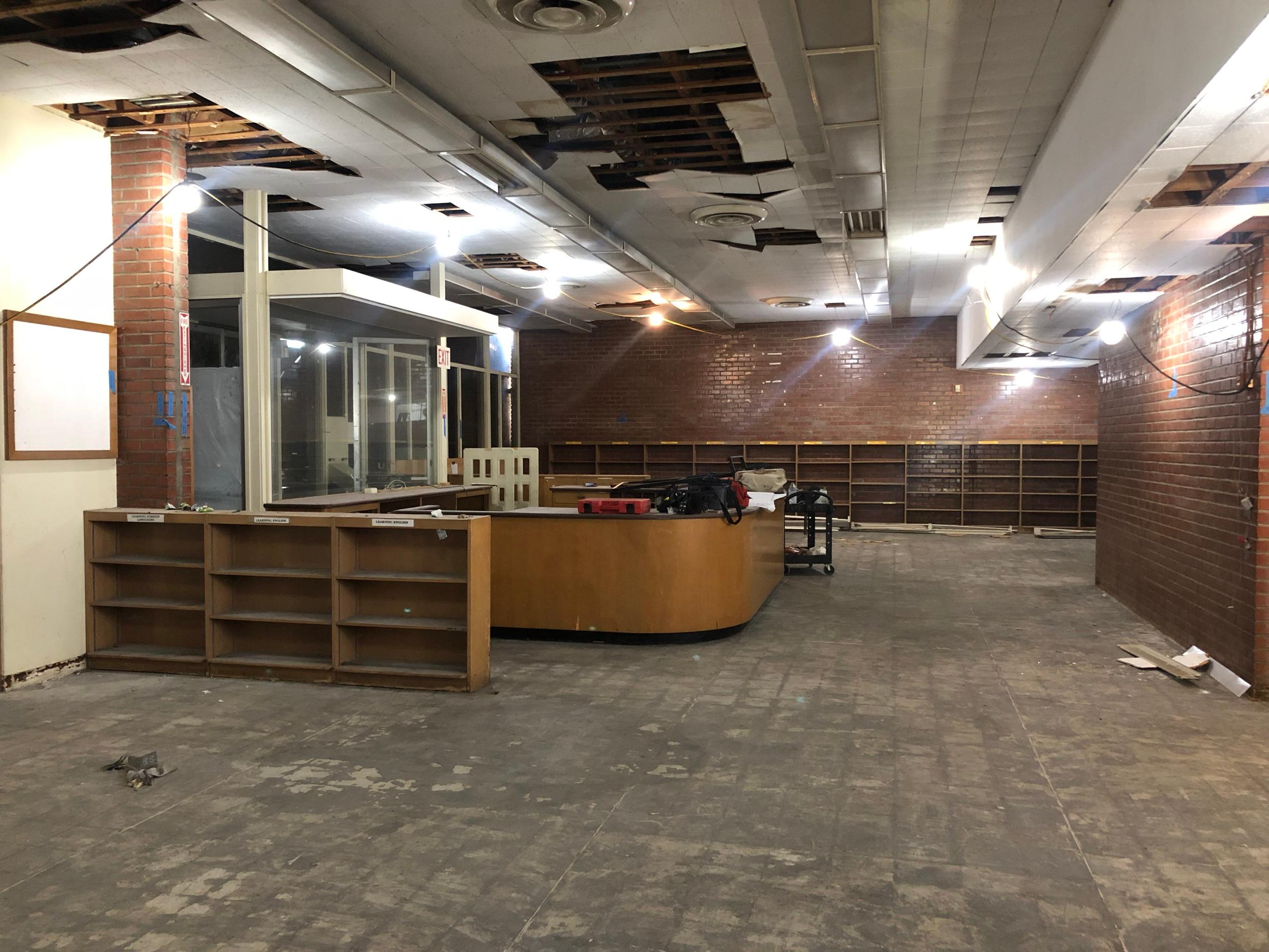 The library’s original circulation desk is being restored and incorporated into the shelter.