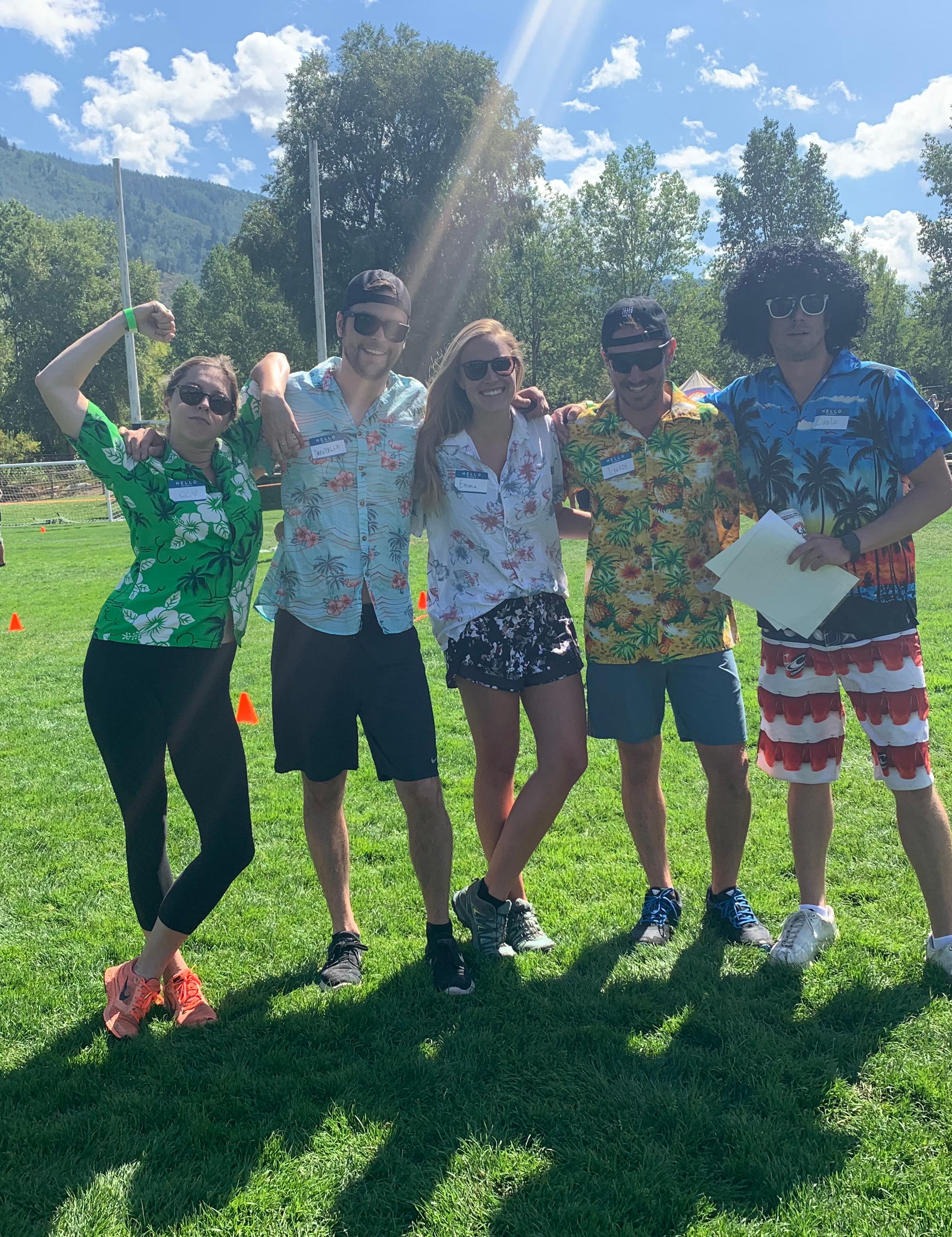 Last week, we hosted the third annual AETHER Games benefitting the Aspen Youth Center in Rio Grande Park in Aspen, Colorado. Building on the success of previous years, the 2019 AETHER Games drew a record 24 teams, well surpassing the goal of $22,000 for the Aspen Youth Center, a nonprofit organization that provides a place for Aspen-area youth to spend time after school, free of cost. Twenty-two teams of adults and two teams of kids spent the sunny Saturday competing in 11 classic field-day games, from a three-legged race to cornhole to tug-of-war. A lunch of hearty barbeque came courtesy of Home Team BBQ, while Sopris Liquor & Wine kept the athletes hydrated with ice-cold beer. Following the games, participants headed to Jimmy’s, An American Restaurant & Bar, where all proceeds from their margarita specials went to AYC. Shoutout to Team Kenichi for taking home this year’s trophy and thanks to all who helped us make our third annual event a huge success. We hope to see you in Aspen next year! Here, some of our favorite images from AETHER Games 2019.