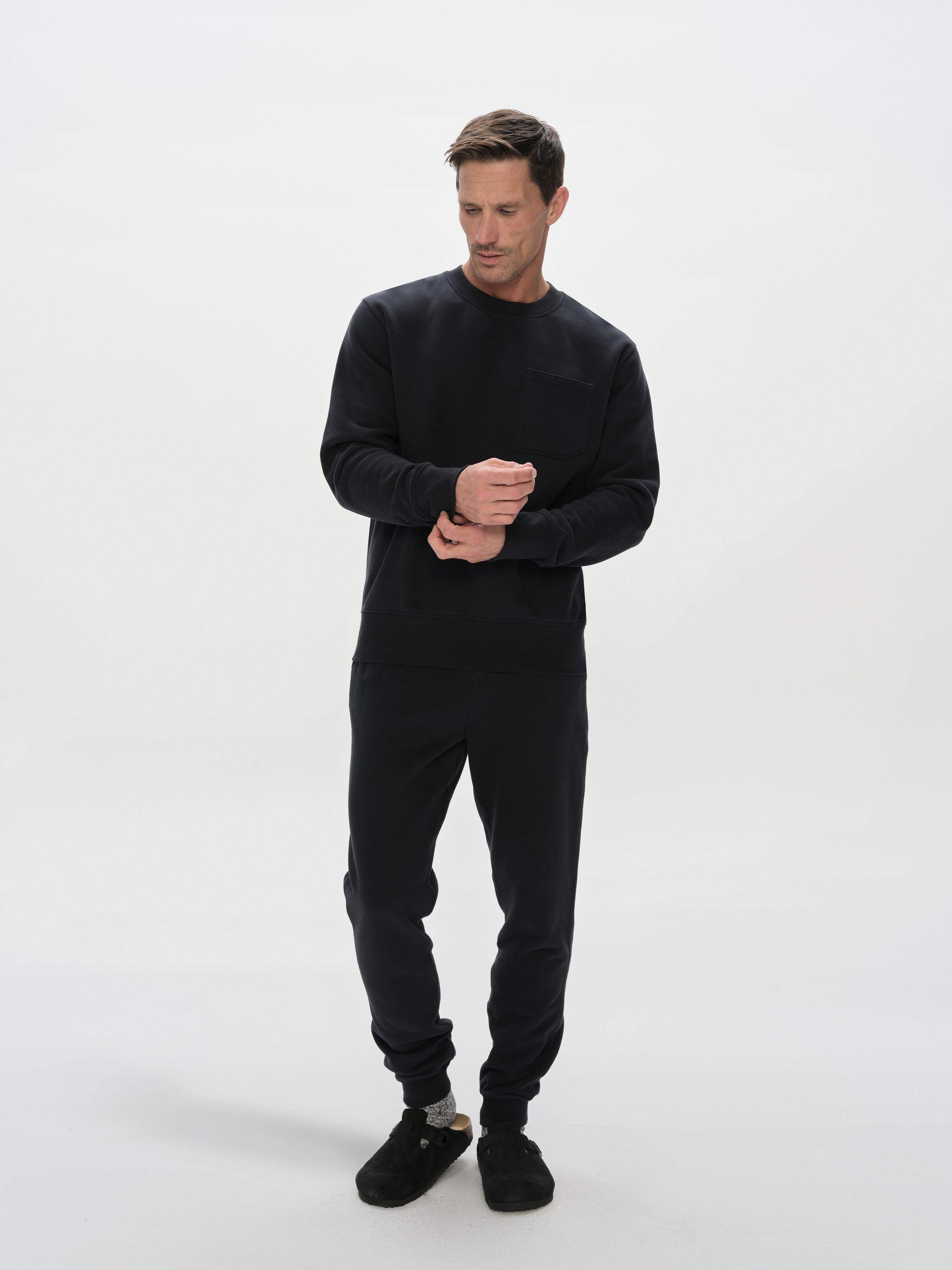 Our all-new Rylan sweatshirt and sweatpant offer the perfect balance of comfort and presentability. Putting a premium spin on traditional loungewear, these styles are constructed from the softest fleece we’ve ever used.