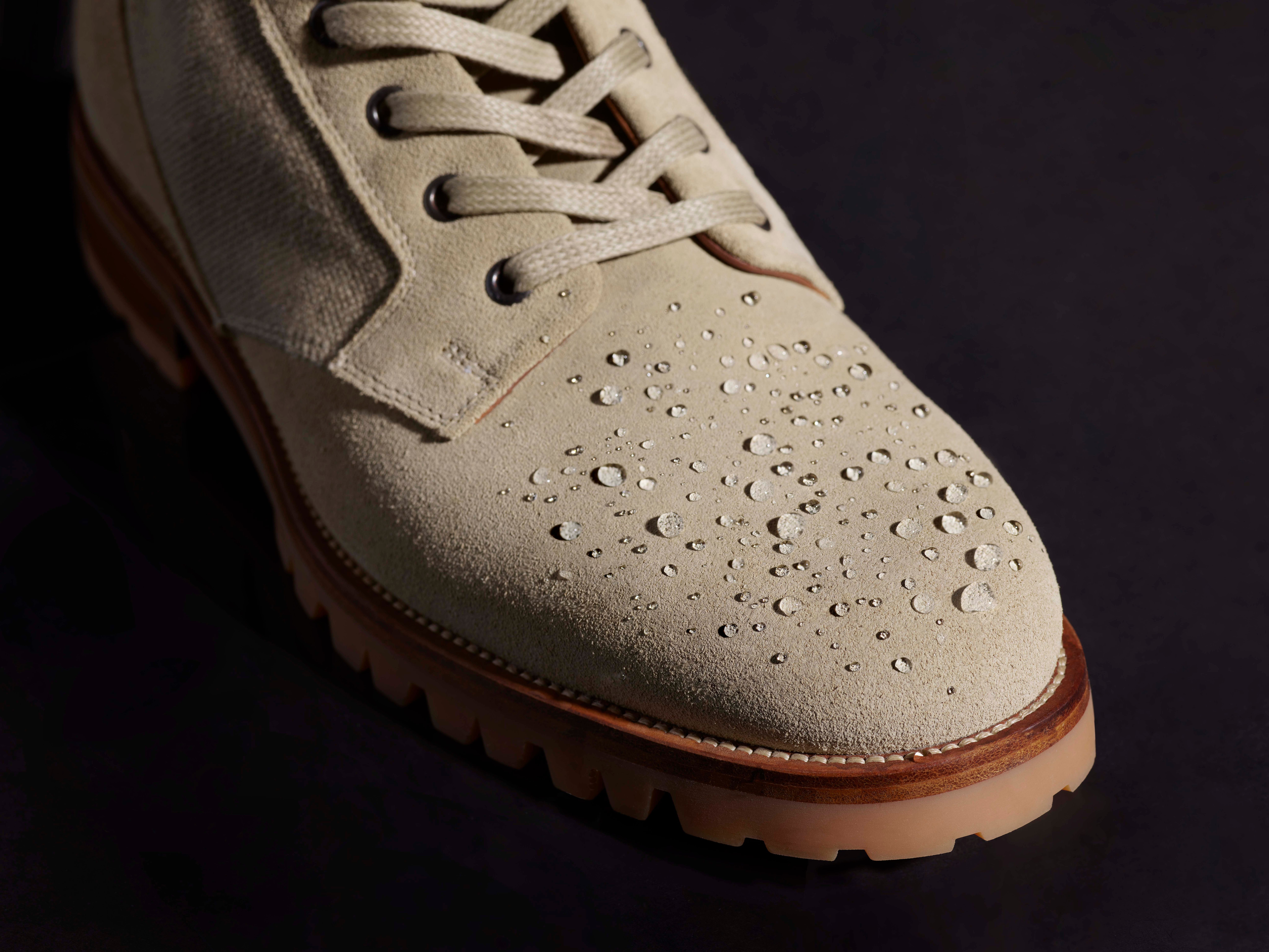 The suede is treated for water repellency so weather isn’t an issue. The boot also features a sturdy Vibram sole.