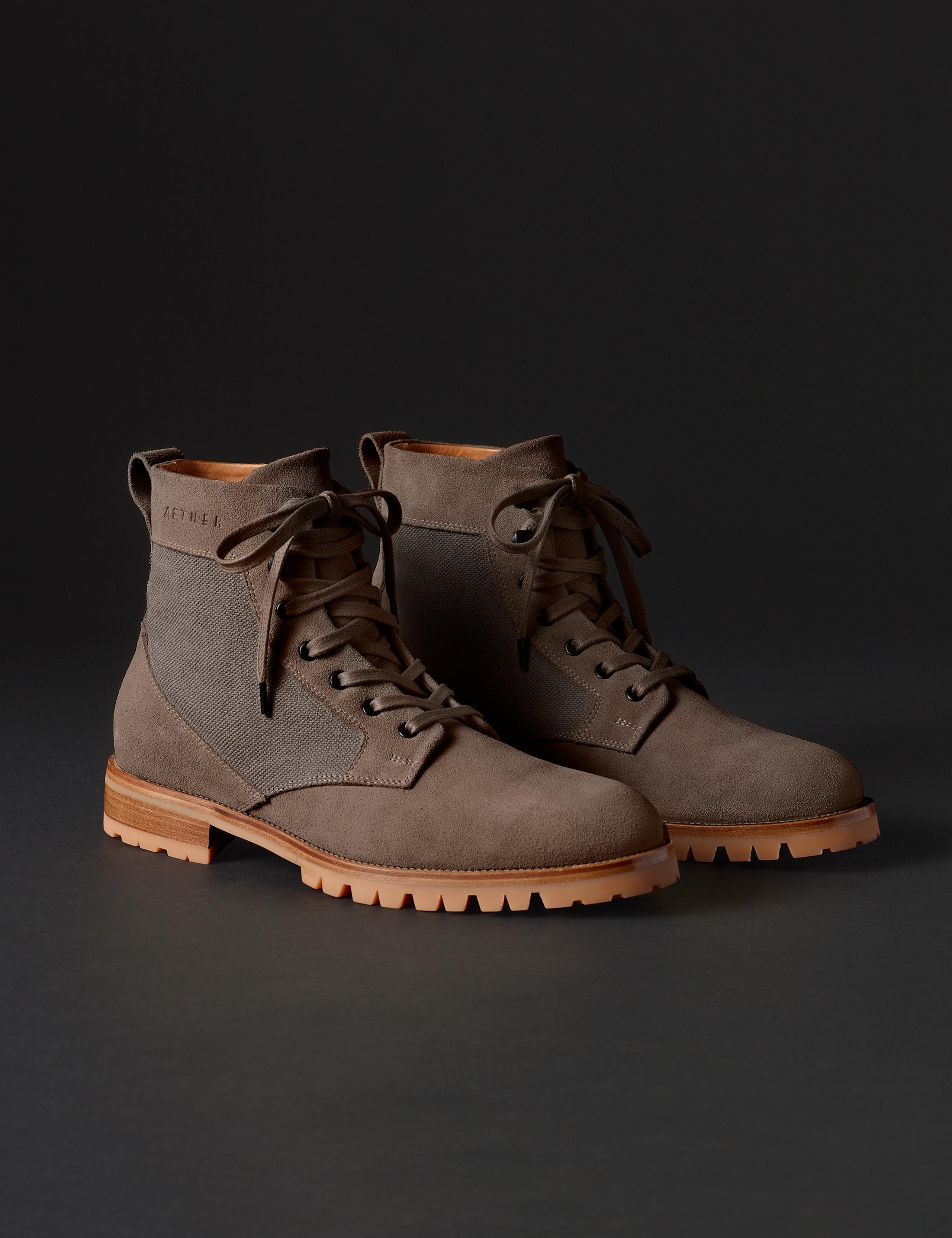 The Ojai Boot is constructed from heavy duty canvas and vegetable-dyed suede.