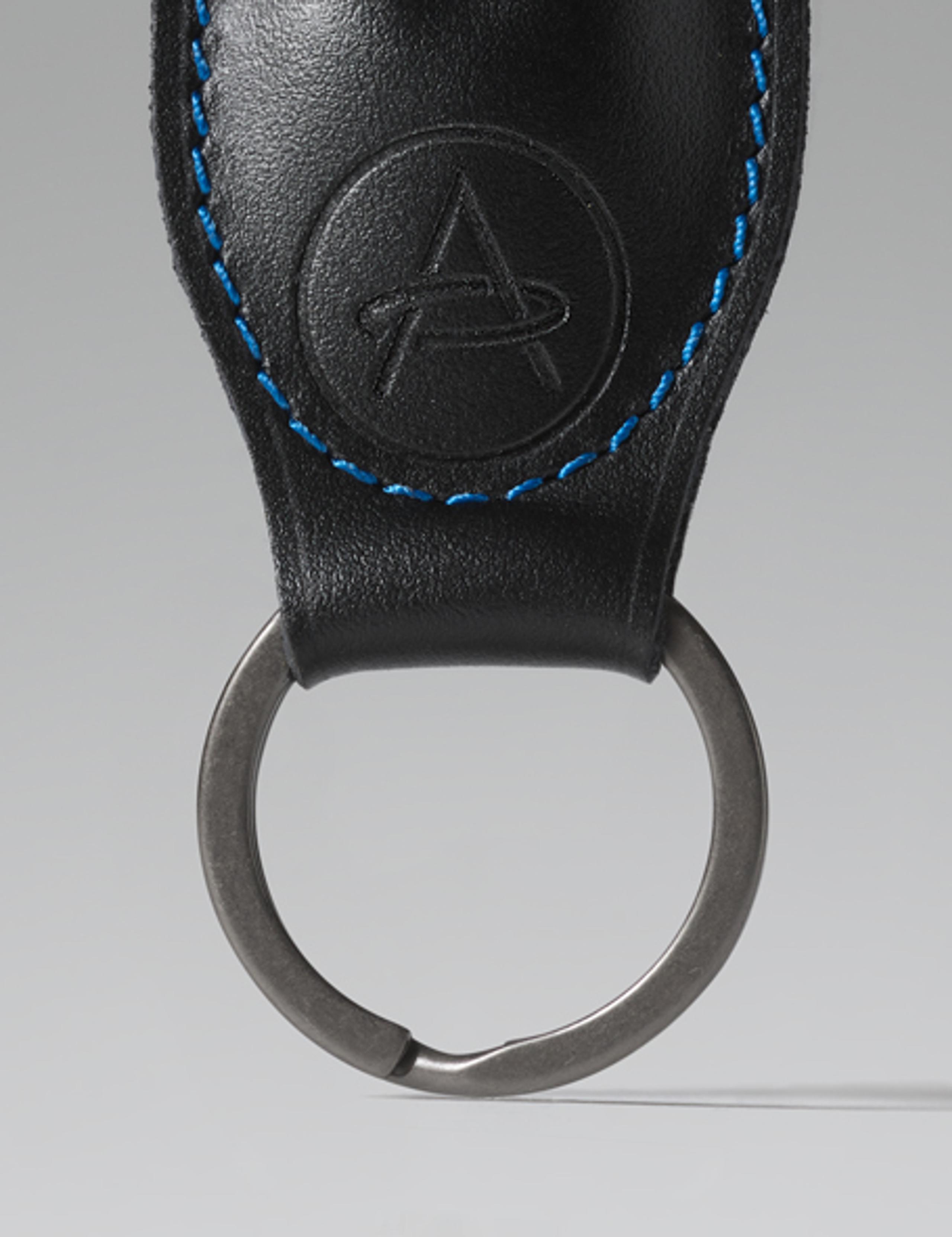 Mated to the leather cover is a solid iron 1” split keyring with a gunmetal finish.
