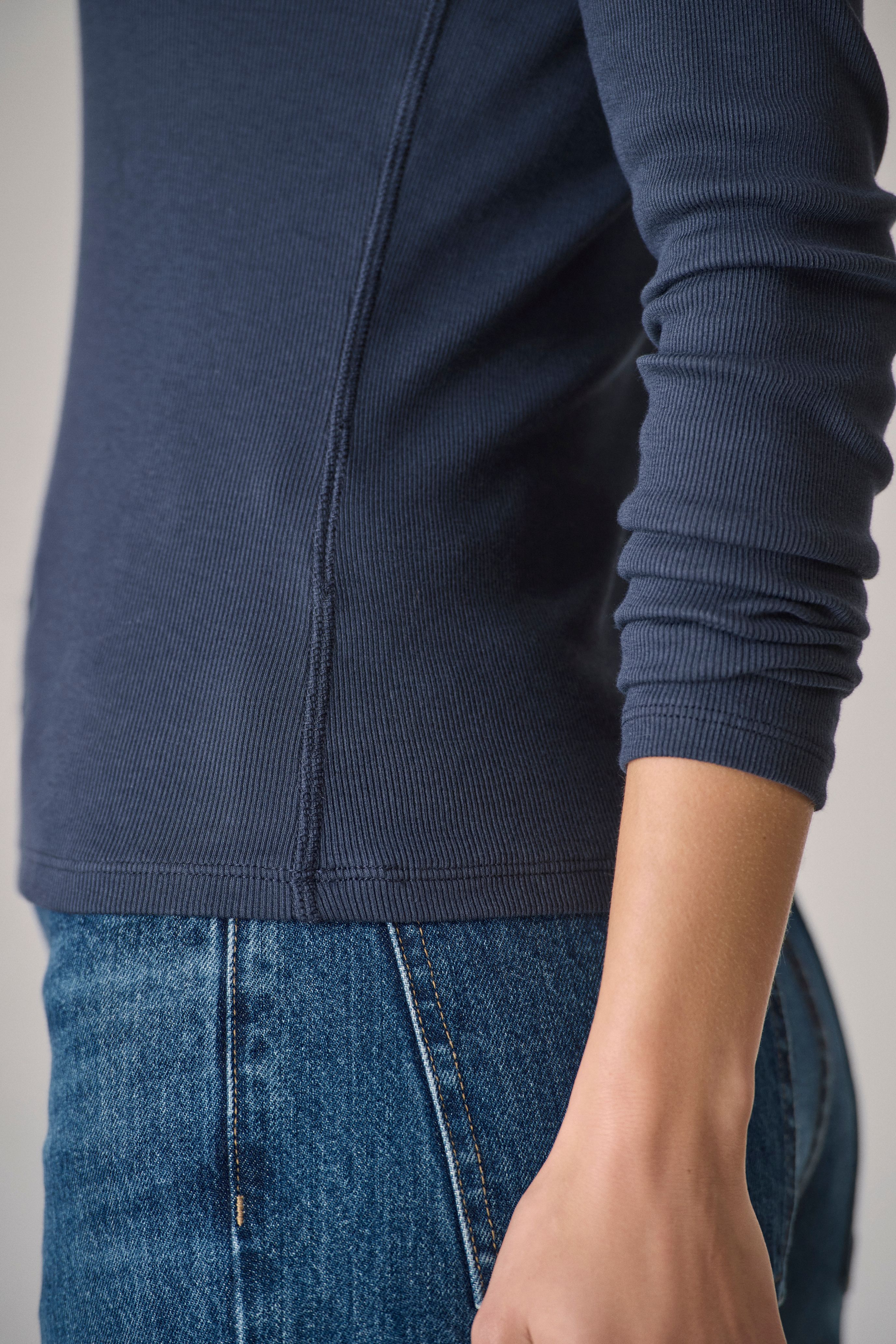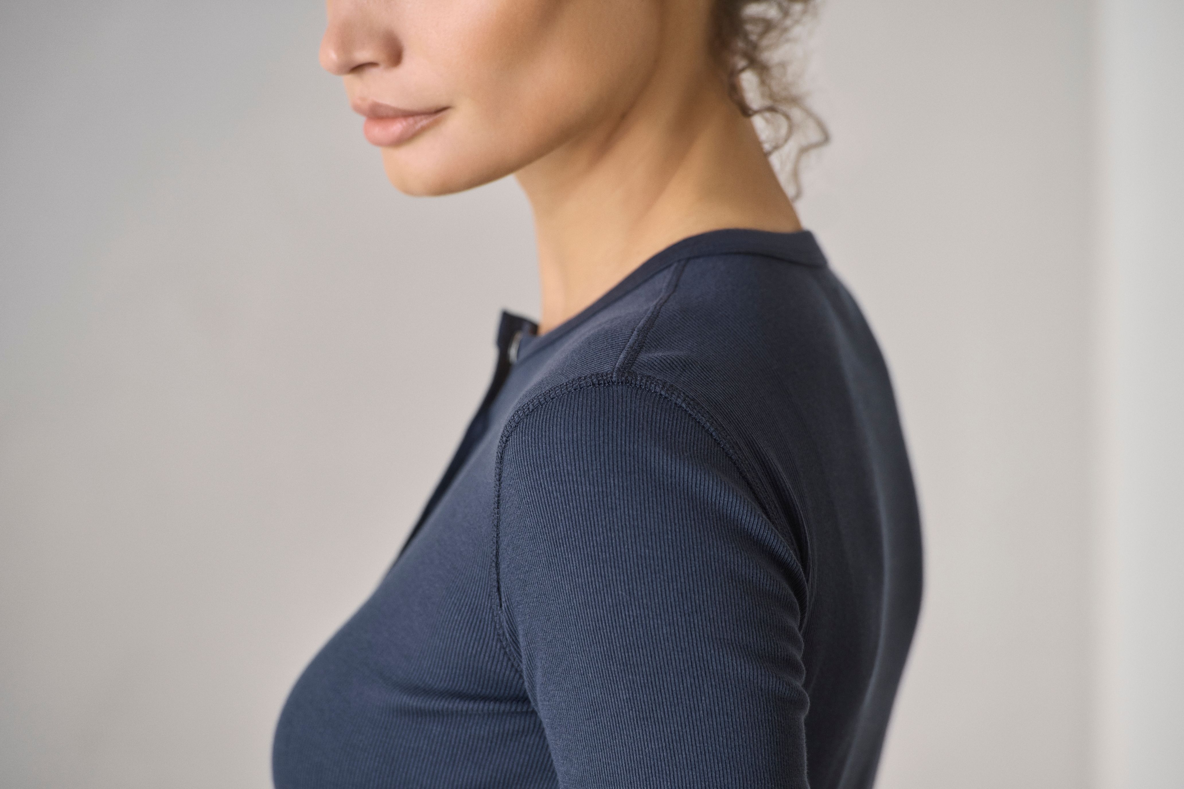A versatile women’s wardrobe staple, our Amara Long-Sleeve Ribbed Henley features a slim fit and a full 2x1 rib-knit, organic Pima cotton construction infused with Lycra for added two-way stretch.