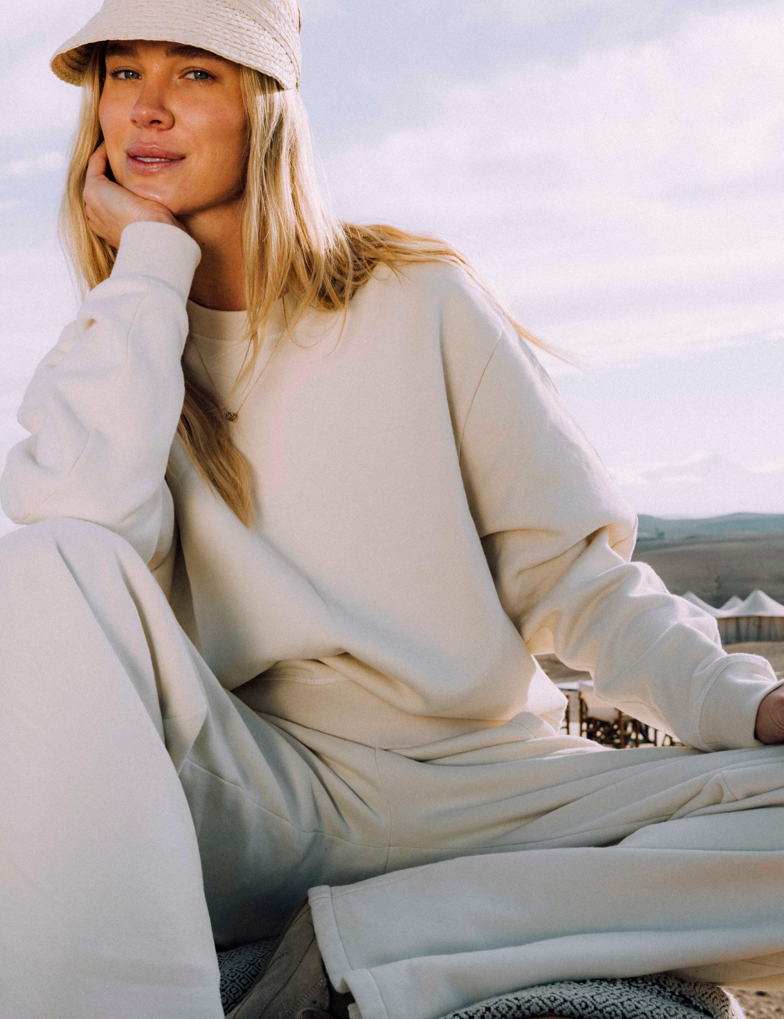 The Ayla Wide-Leg Sweatpant is designed to pair with the Ayla Crewneck Sweatshirt.