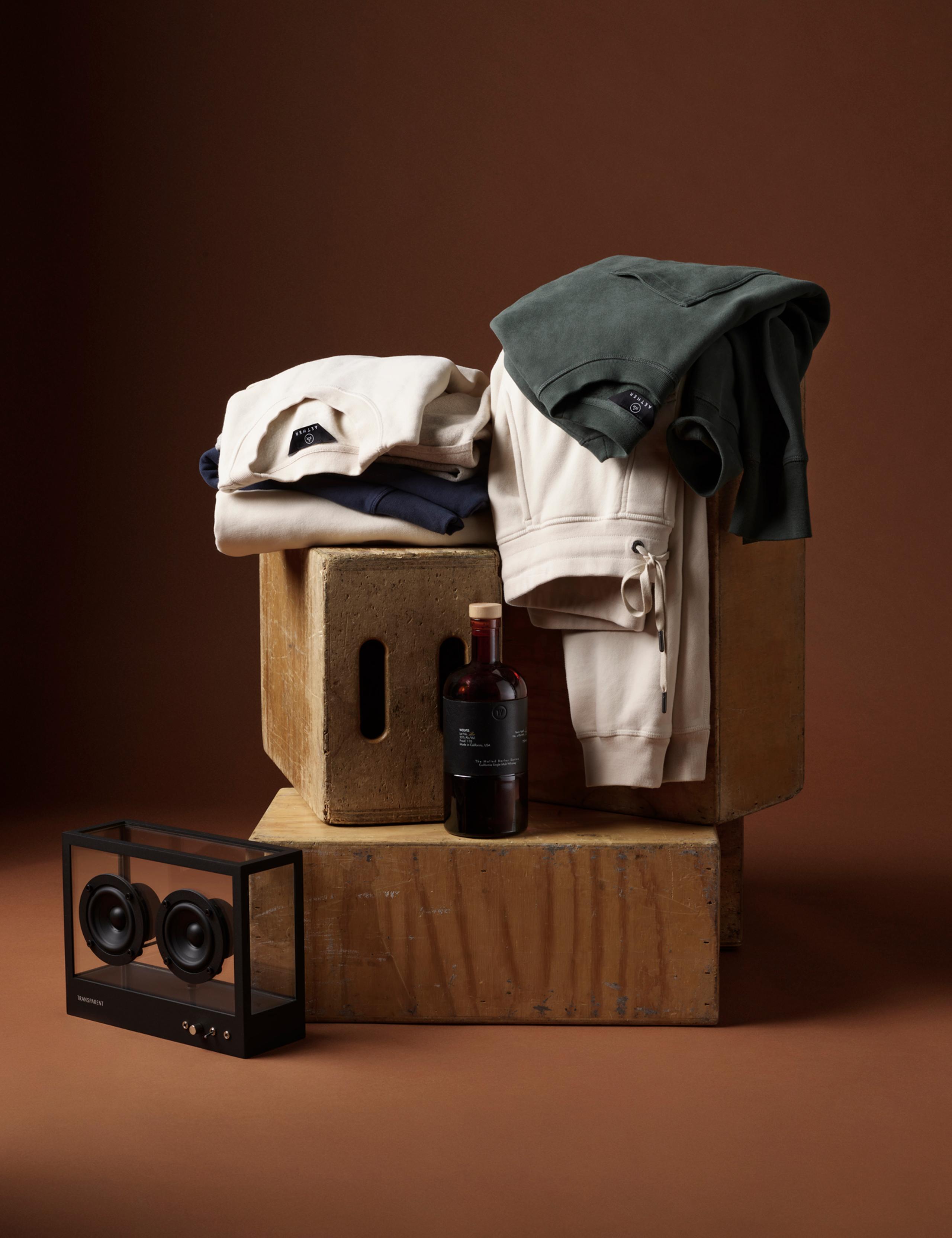 • Flat lay view of the Ayla Wide-Leg Sweatpant in Saville Green from AETHER Apparel.