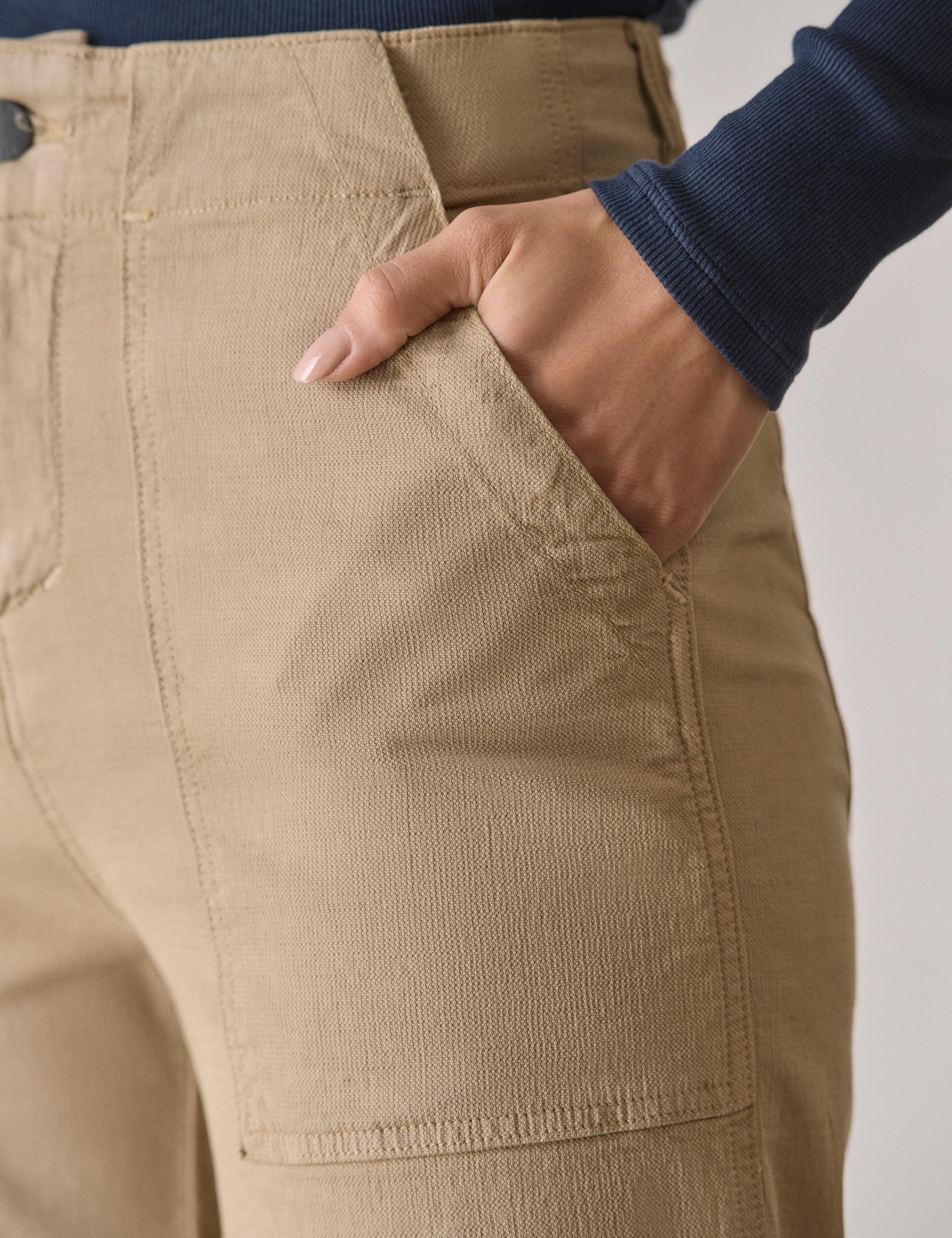 Cut from soft touch cotton-linen with built-in stretch properties, the Bella Travel Pant is proudly USA-manufactured using fabric sourced from Spain.