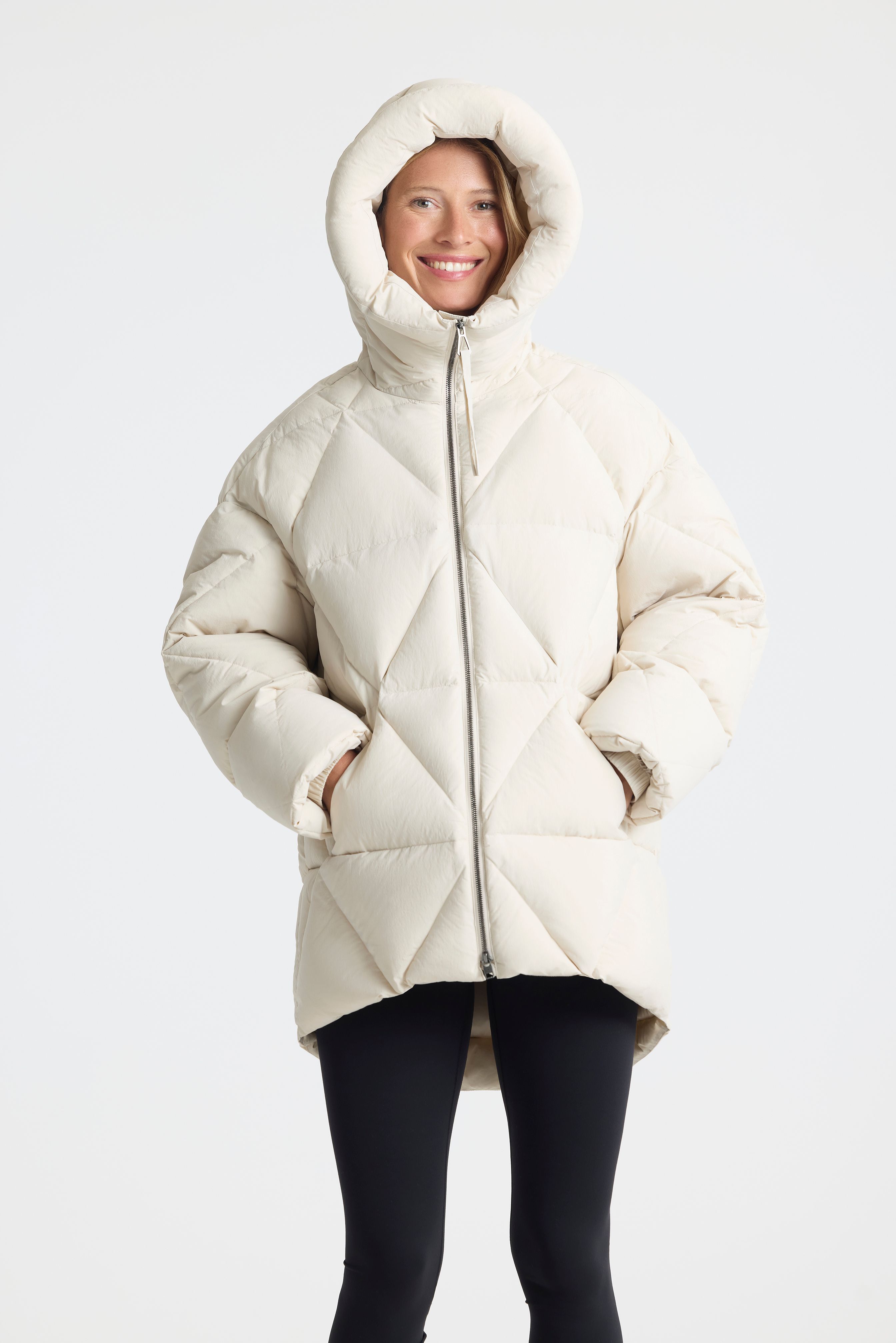 Using a blown-up version of AETHER’s signature triangle quilting, the Callie Oversized Down Parka offers extraordinary levels of warmth thanks to its ultra-liberal use of eco-friendly 750-fill power RENU down insulation that’s set within diamond quilting at the body and sleeves.