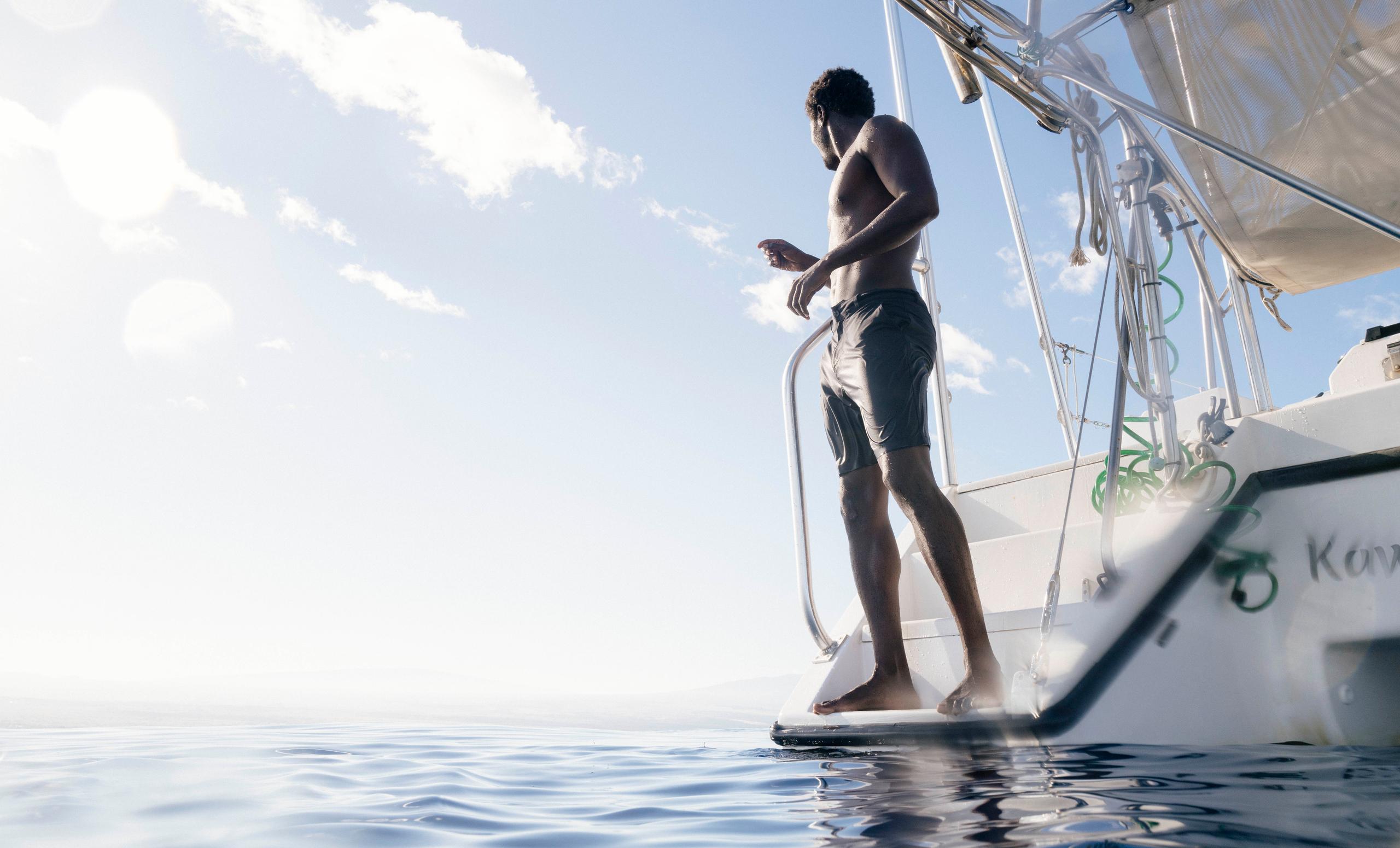 Composed of nearly 40% recycled content, the Catalina Submersible Short’s woven stretch construction boasts moisture-wicking, antimicrobial, and anti-static properties.