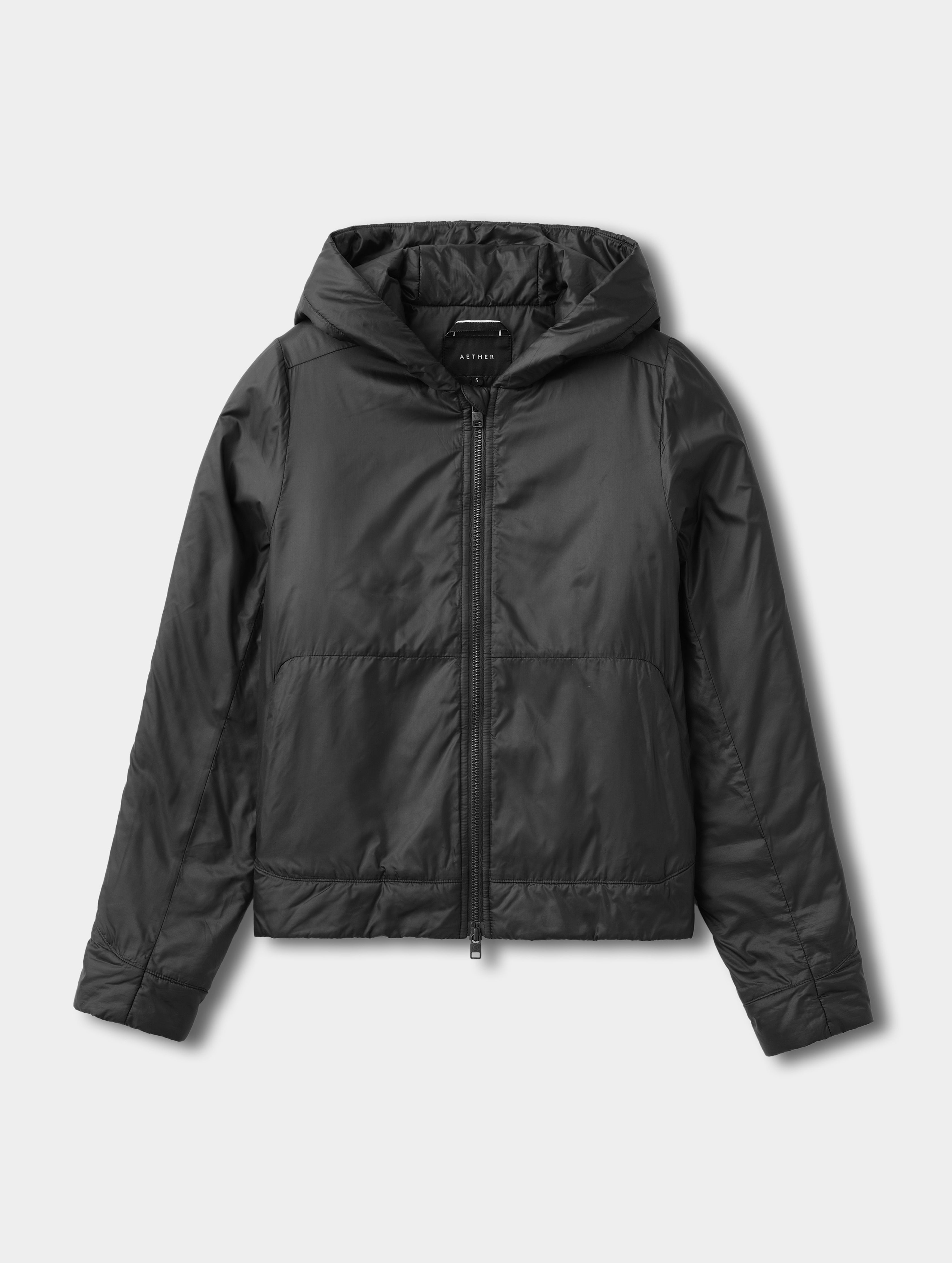 The garment’s center-back lining comes trimmed in AETHER logo quilting.