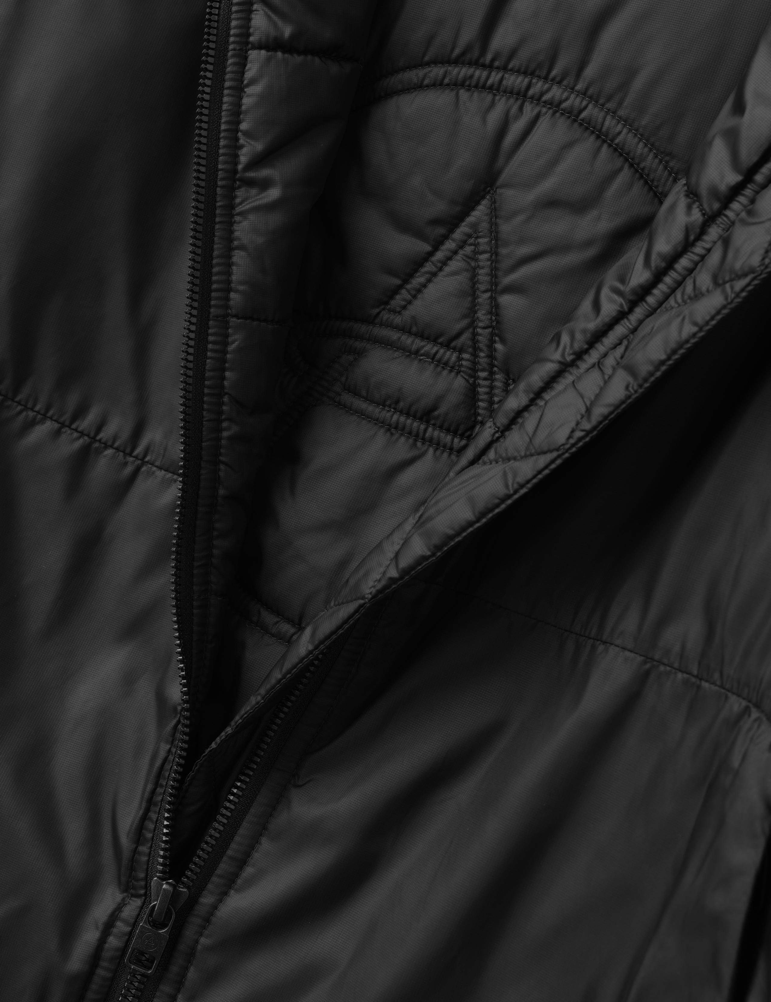 Alongside zipper-secured hand pockets, the Celeste Eco Insulated Jacket’s main center-front closure features a two-way Metaluxe® zipper with a zipper garage and custom AETHER-branded pull.