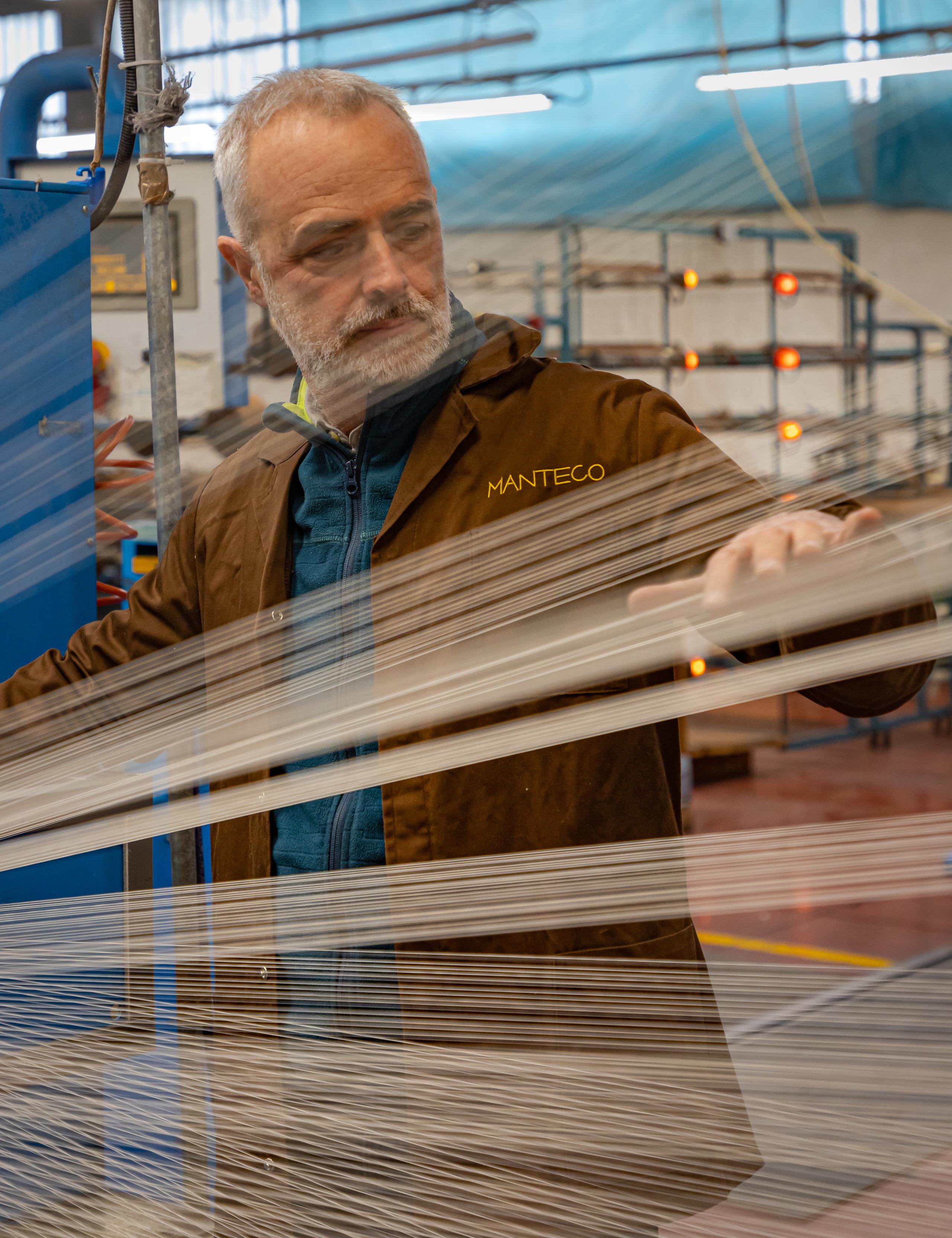 We traveled to Italy’s Manteco mill (est. 1943) to source a recycled wool flannel fabric that requires 99.9% less water and 93.3% less energy consumption, compared to virgin wool fibers.