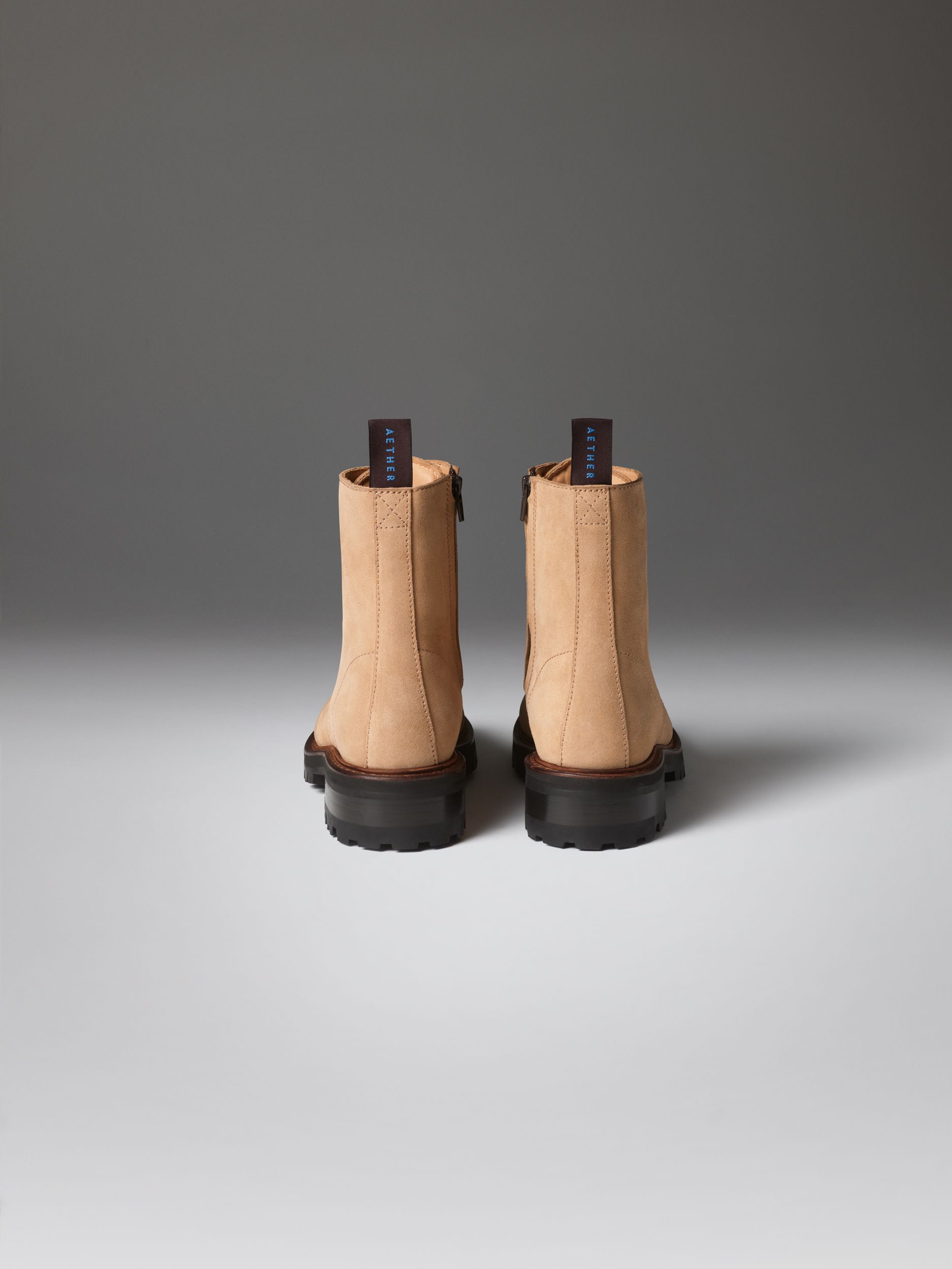 Each boot is pieced together by hand using an ultra-rugged Goodyear welt construction. This multi-layer, mechanical join not only makes for an incredibly hardwearing piece of footwear, but it also allows the boot to be re-soled once worn out. In addition to practically guaranteeing a lifetime of dependable use, this tried-and-true construction technique also allows this boot to be passed down to future generations as a modern-day family heirloom. Because each boot is made by hand in small batches, AETHER is able to deliver a much higher level of craftsmanship, build quality, and overall fit and finish compared to mass-produced boots.