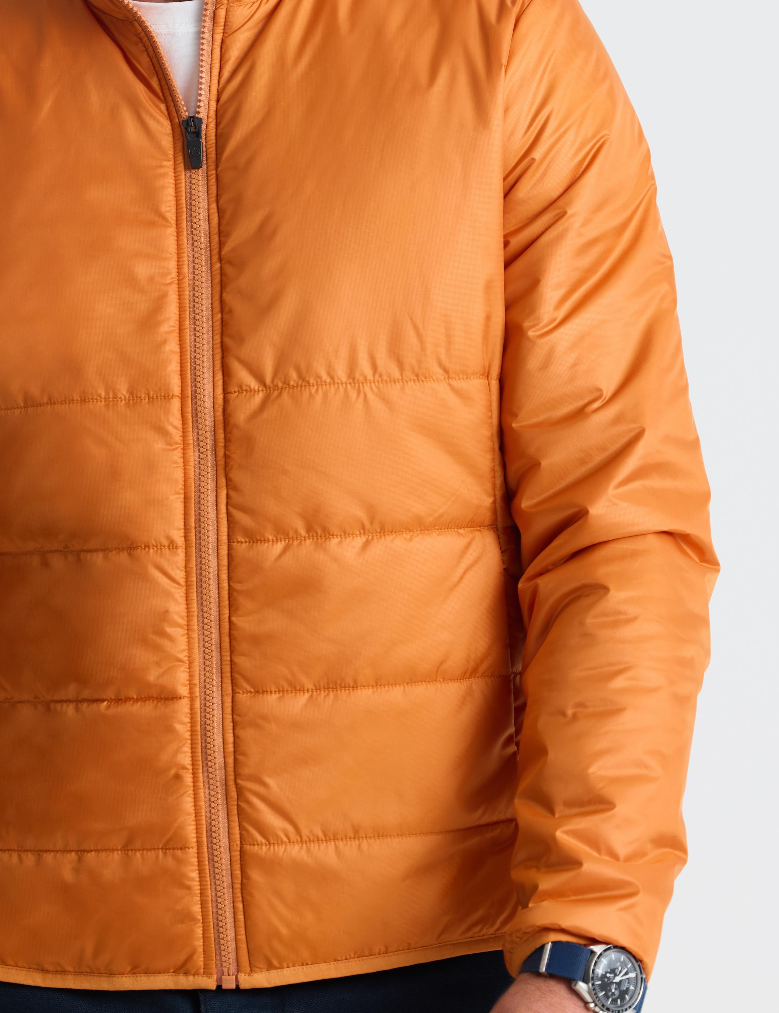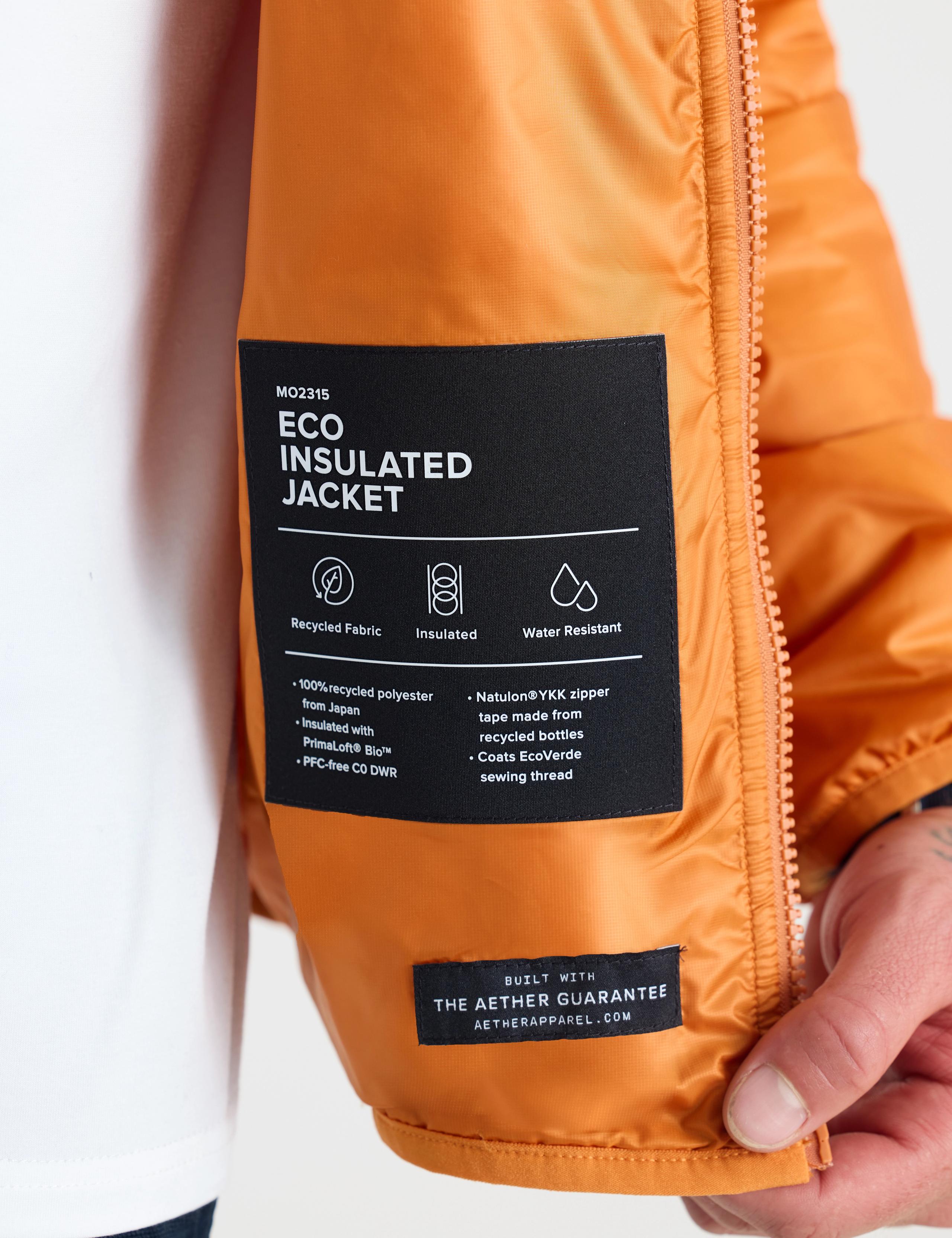 Our water- and wind-resistant Eco Insulated Jacket is a modern approach to a traditional insulated jacket crafted entirely from sustainable materials. Constructed around a 100% recycled Japanese polyester micro ripstop fabric with a PFC-free C0 DWR treatment, the jacket boasts recycled, biodegradable 60-gram PrimaLoft® Bio™ insulation and a Natulon zipper with zipper tape made from recycled bottles — all stitched together using 100% recycled Coats Ecoverde sewing thread.