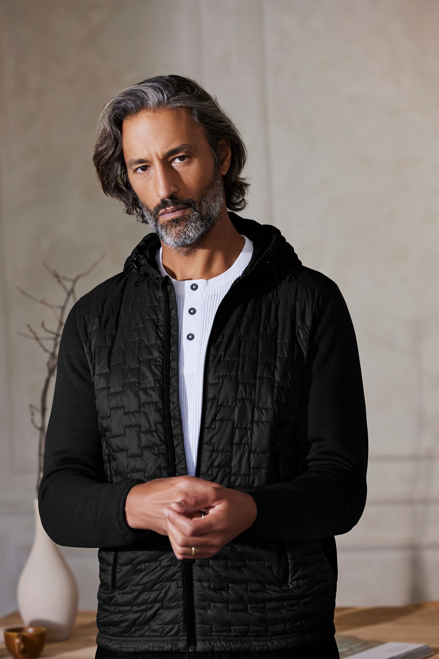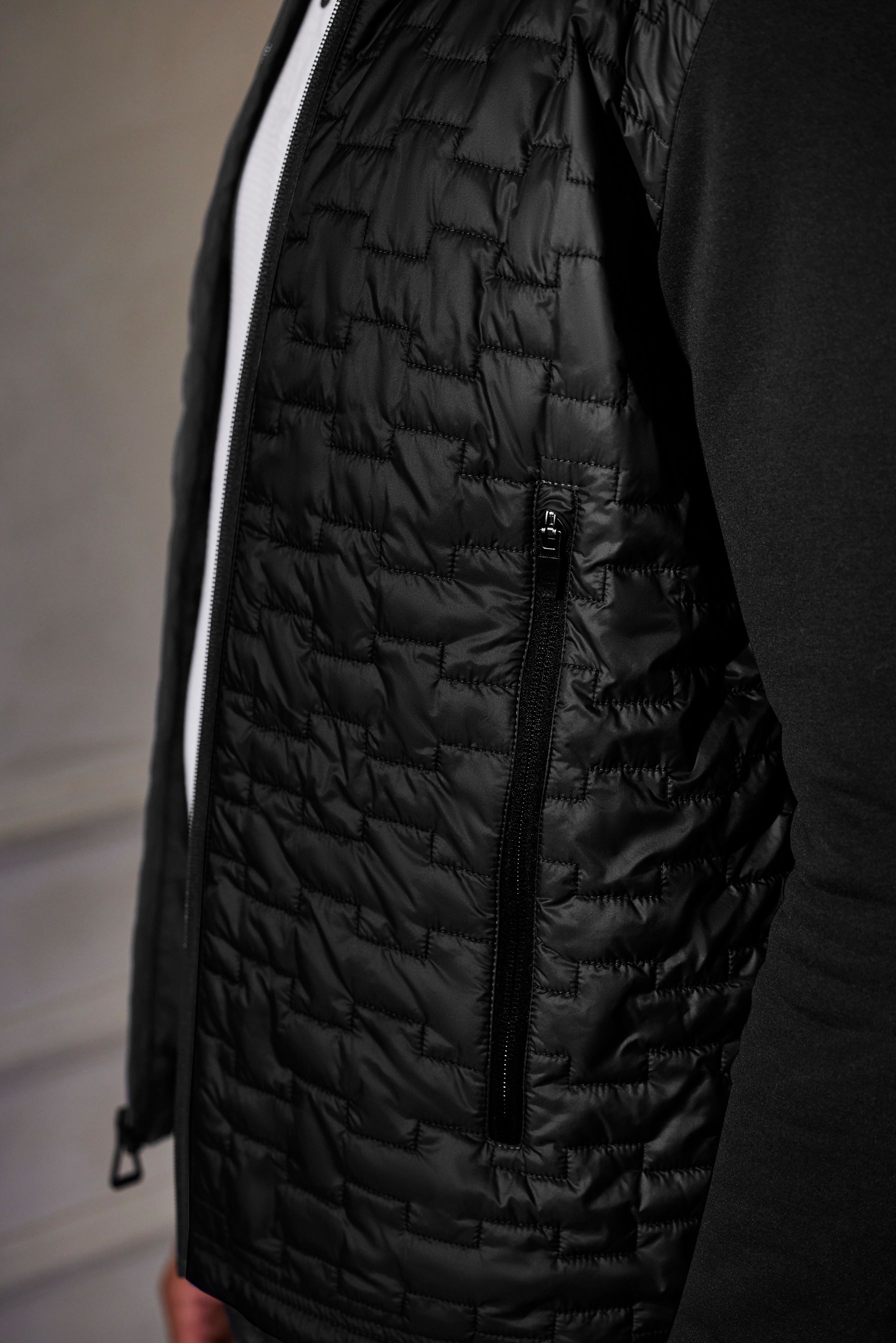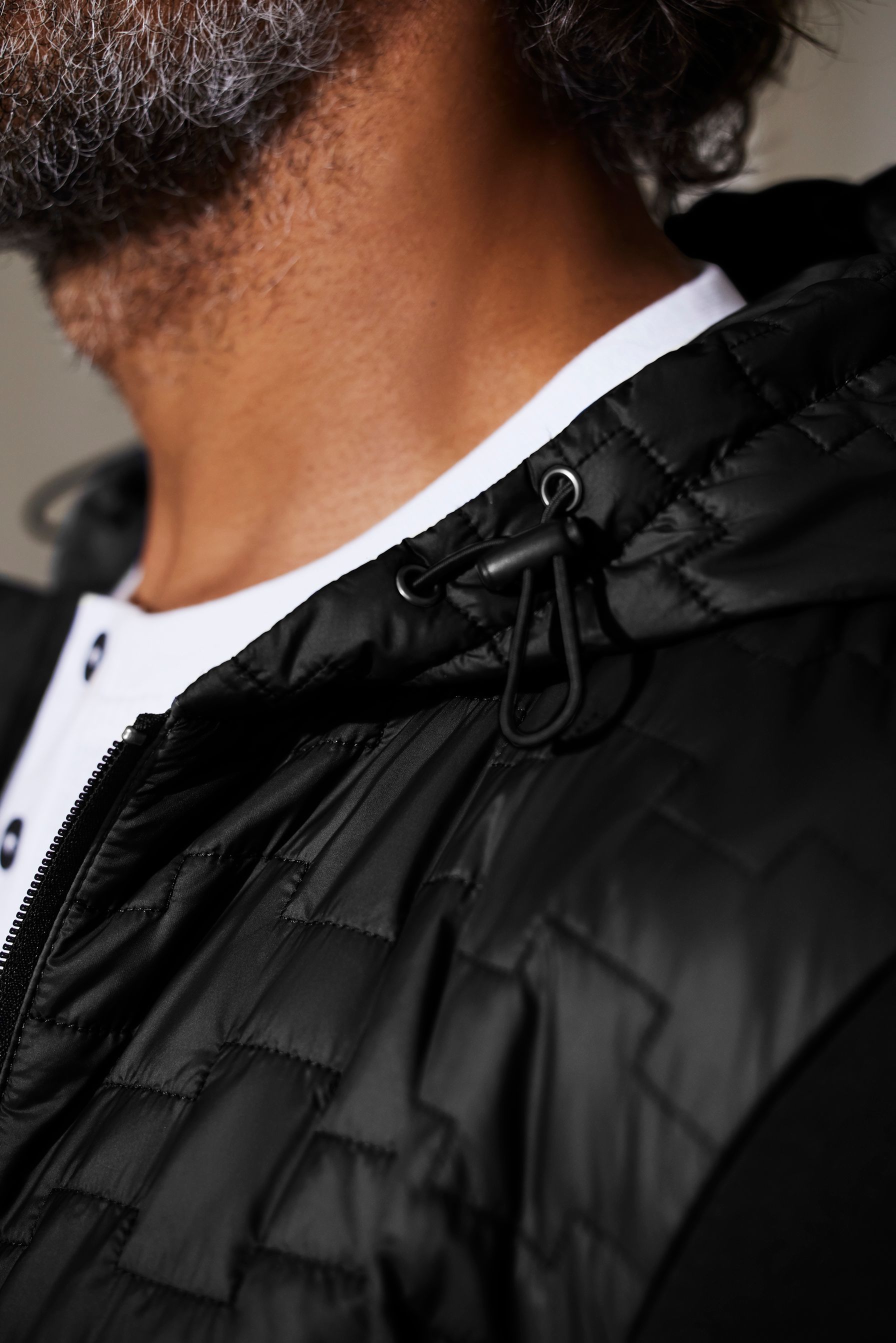 The Hybrid Tech Hoodie features custom quilting and a two-point adjustable hood.