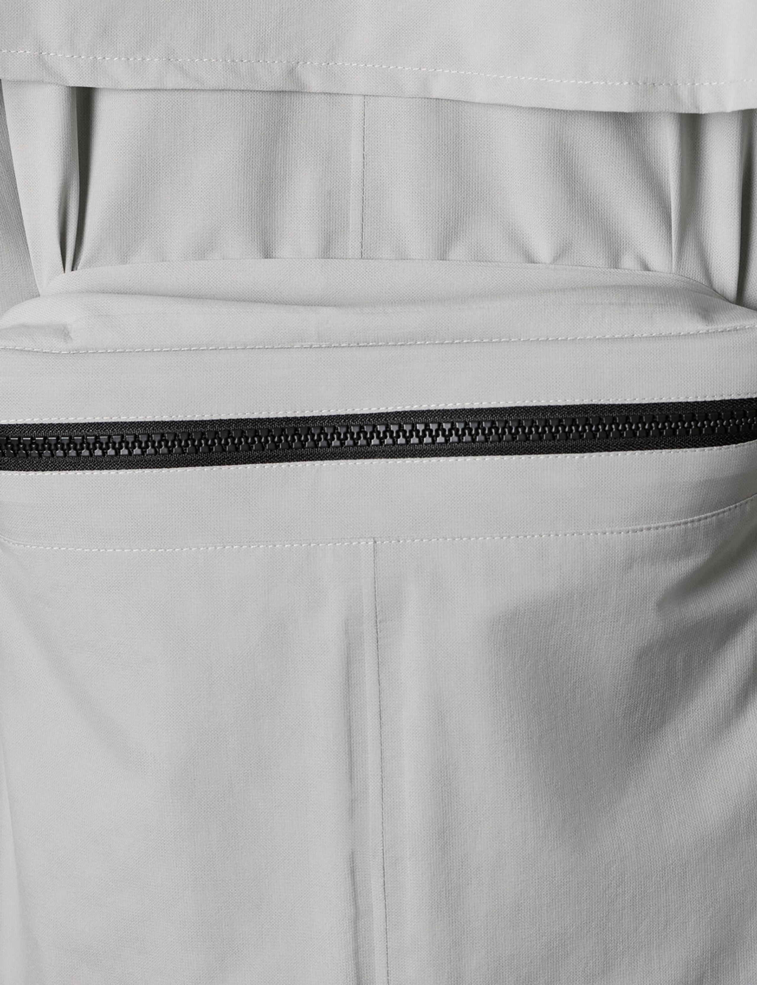 This garment was cut from a multi-layered technical fabric, which provides additional wind and moisture resistance.