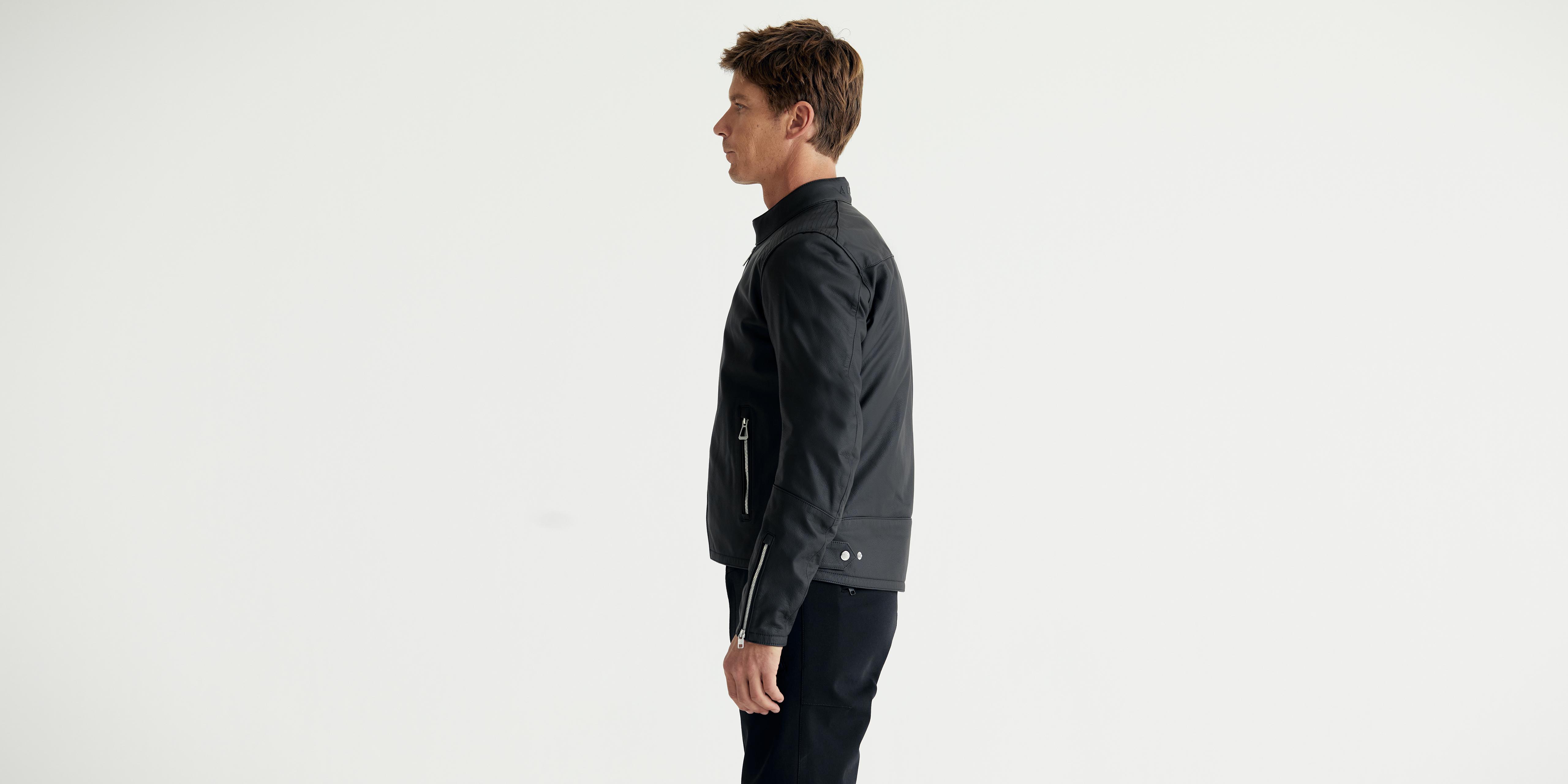 We designed the Laslo Motorcycle Jacket to be a sophisticated, slim-fit leather jacket. It will keep you safe and comfortable on the bike, but it’s also built with low-profile D3O® armor, so when the armor is removed, the jacket doubles as a daily wear piece.