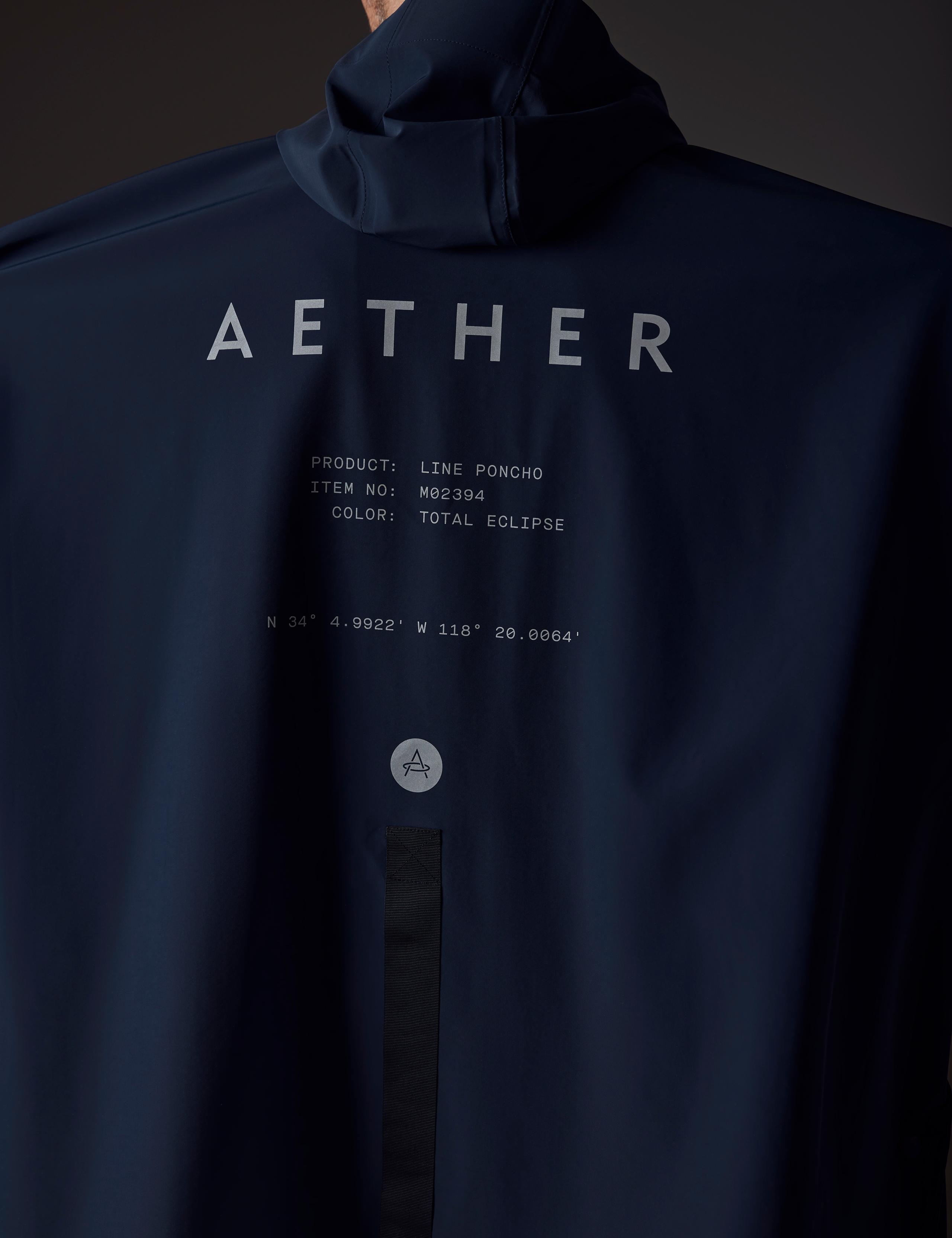 Flat lay of the Line Poncho in Onyx Black from AETHER Apparel.