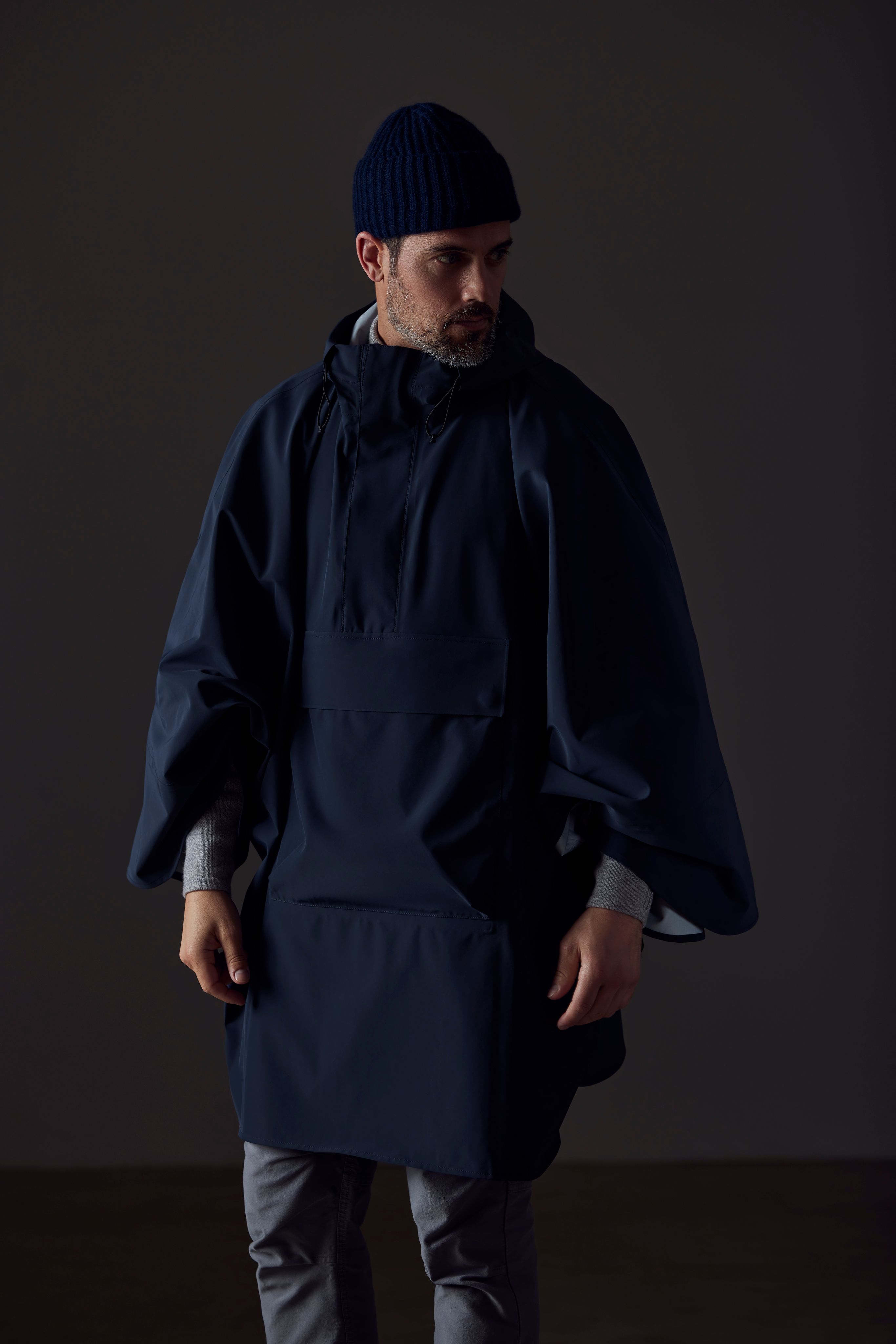 The Line Rain Poncho boasts a minimal lightweight construction with subtle, meticulous technical details that make all the difference, including a three-piece hood with Cohaesive™ bungees, and a bungee at the back of the hood to further adjust the fit.