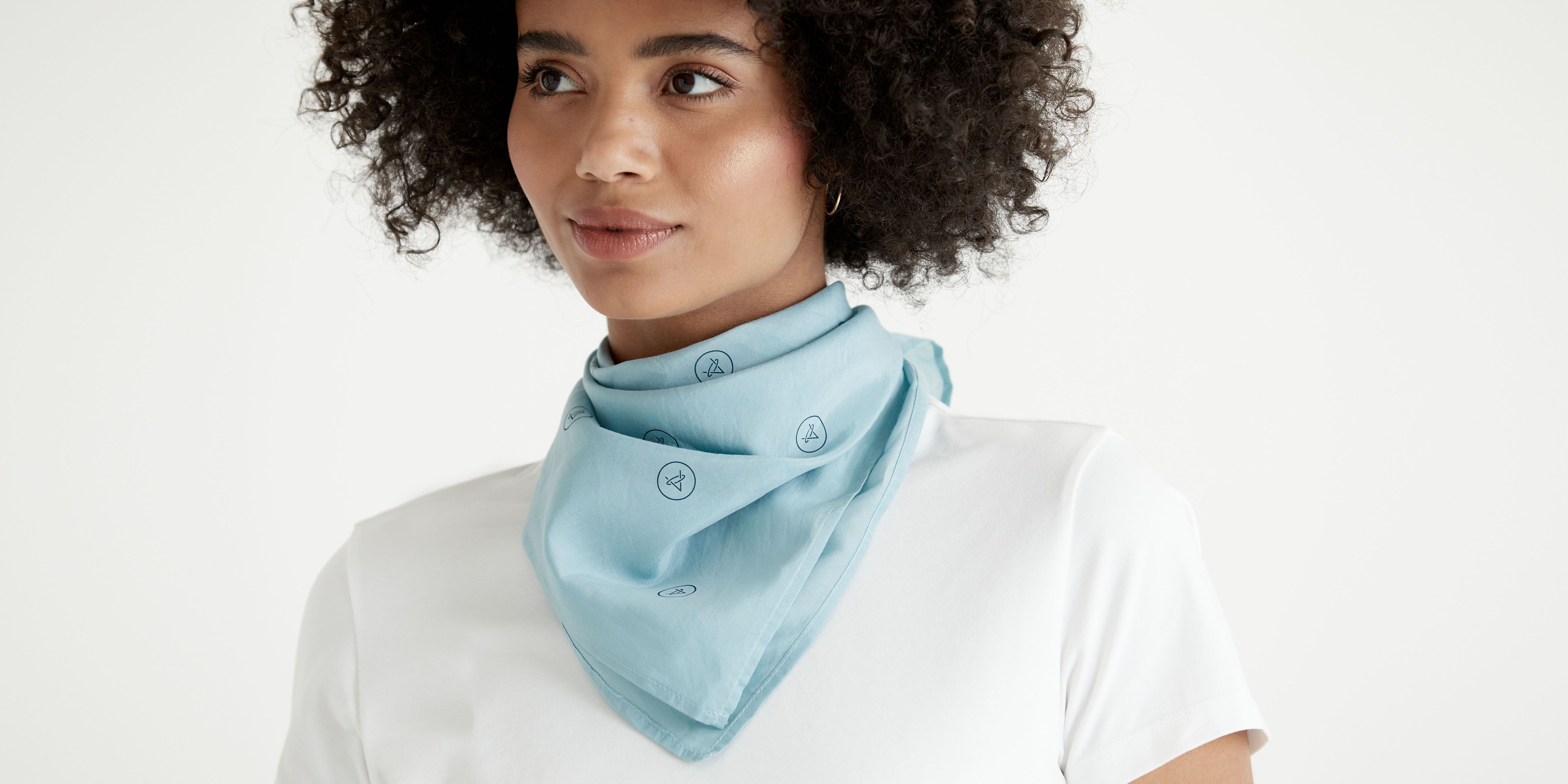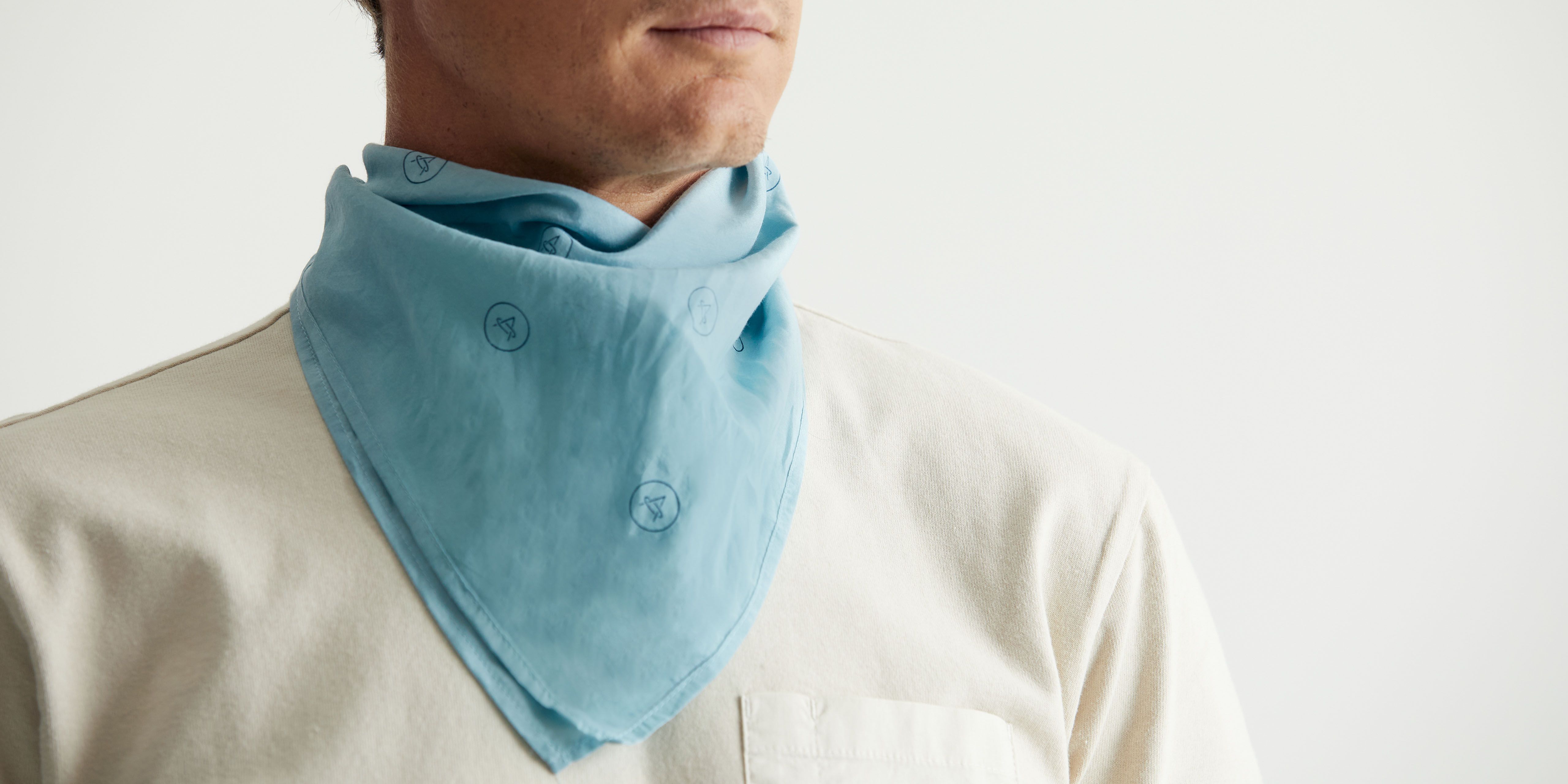 A lightweight, cotton-silk blend bandana with our custom AETHER-logo print.