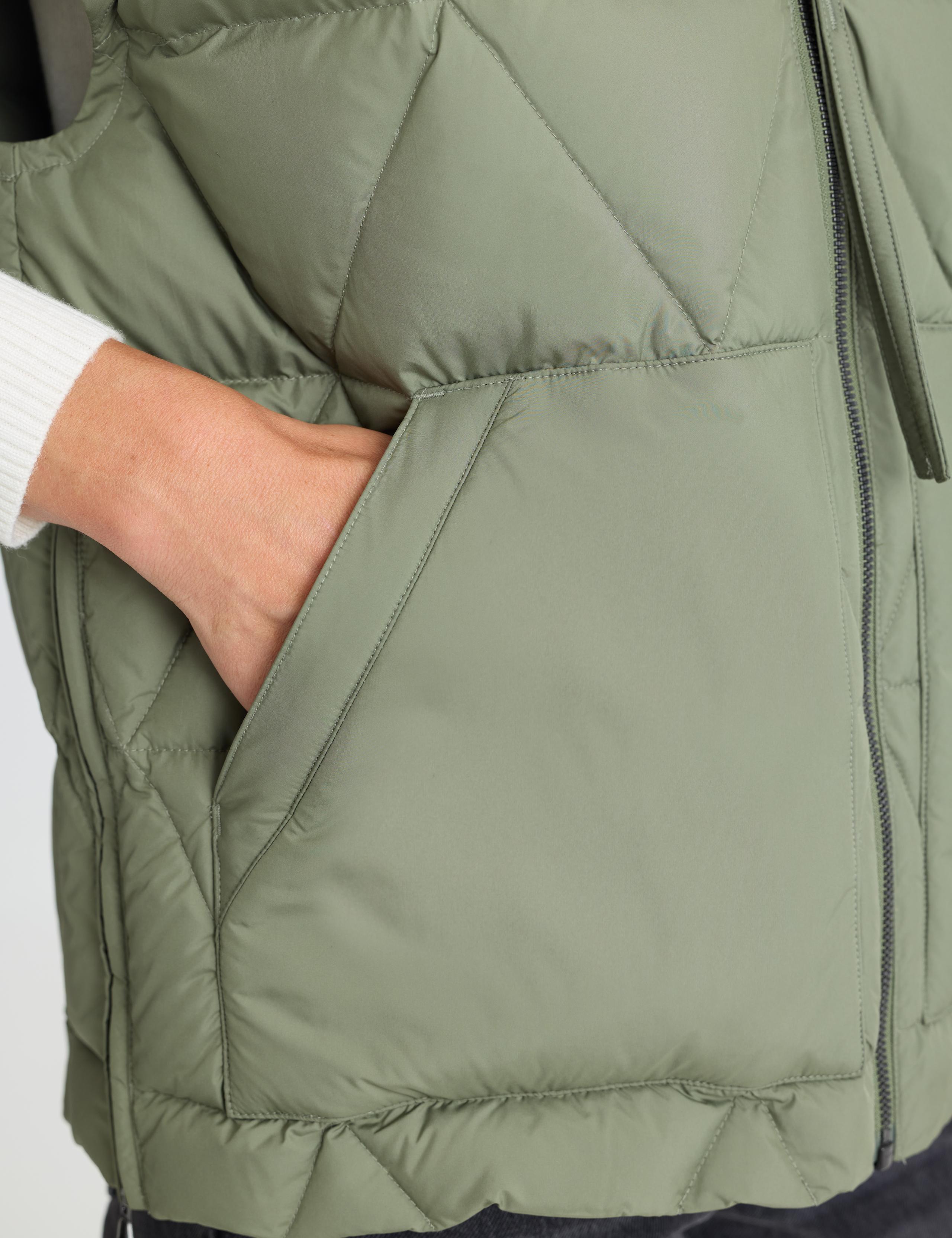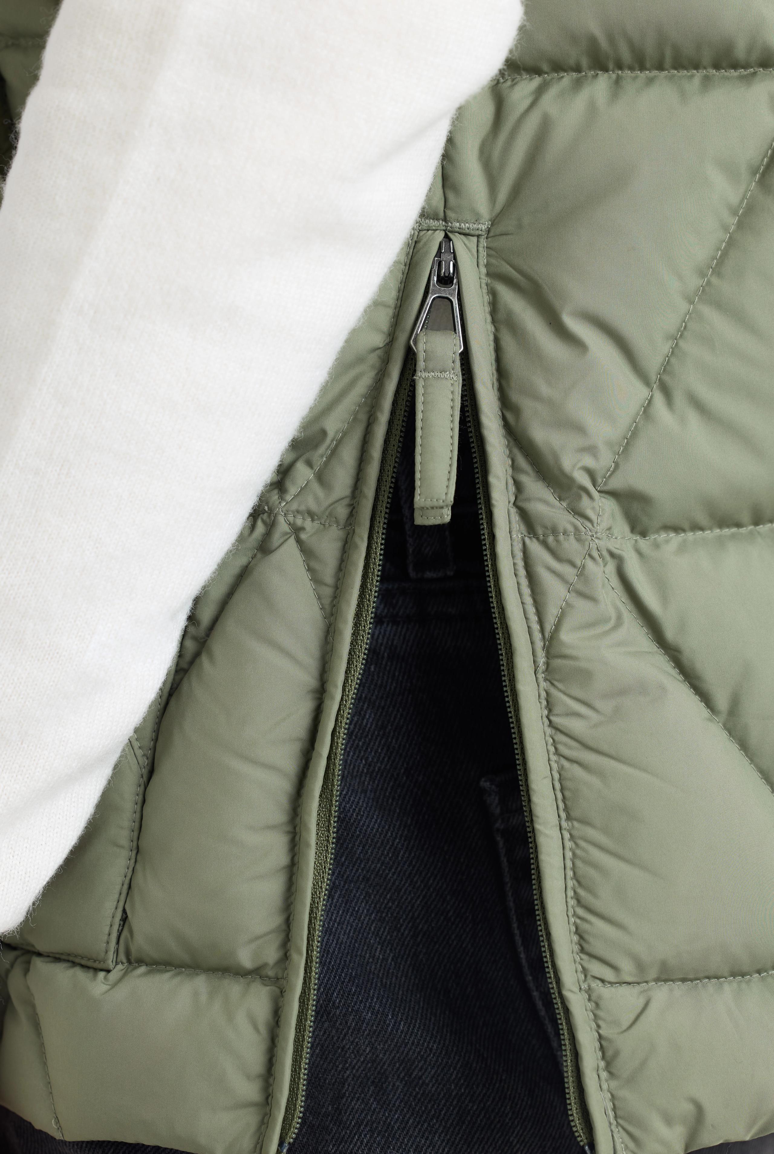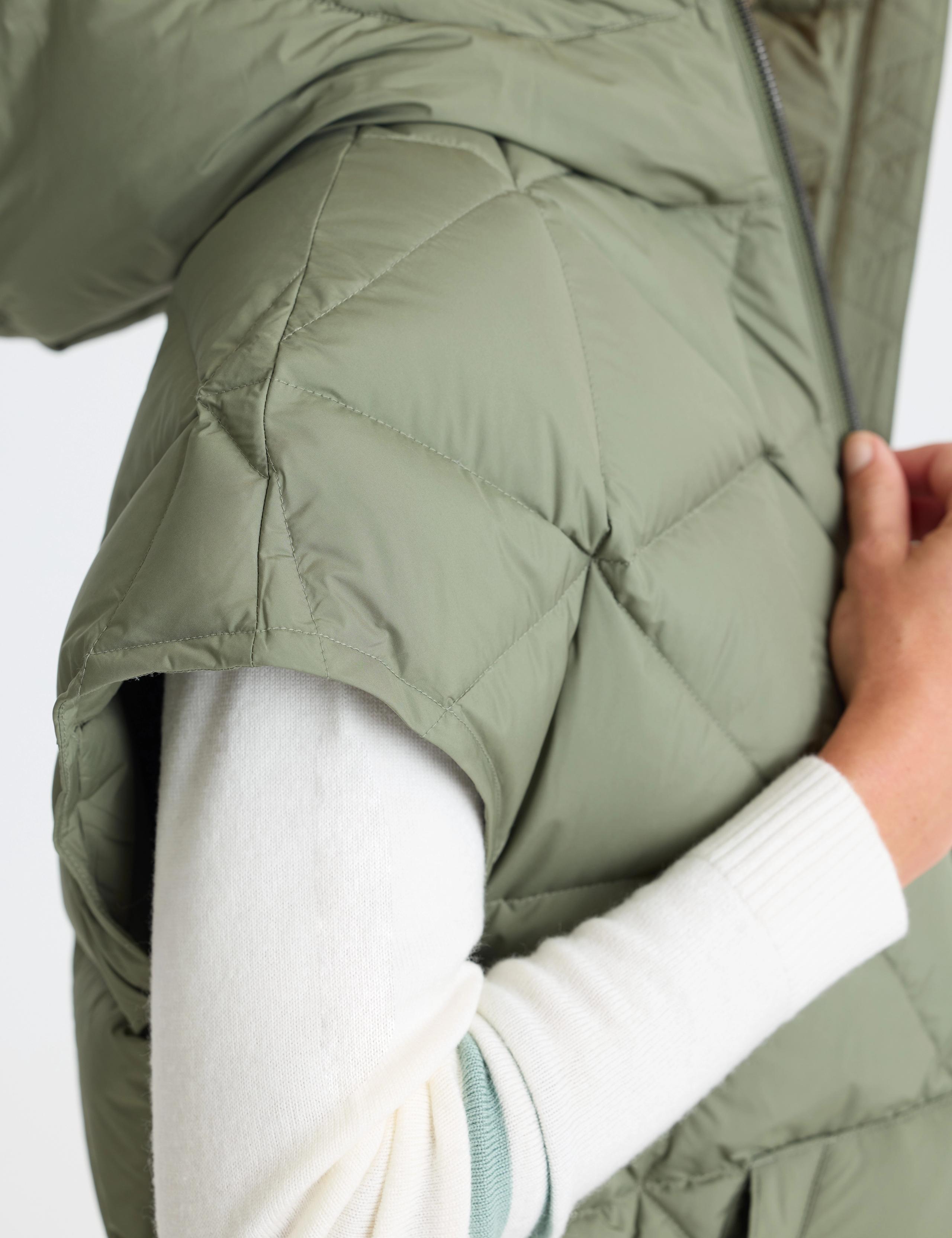 With pull-tab-equipped side-seam zippers, the Mailen Oversized Vest can instantly go from a slimmer, more figure-hugging silhouette that better traps in warmth when zipped up, to a more relaxed, poncho-like flowing fit with its side slits unzipped.