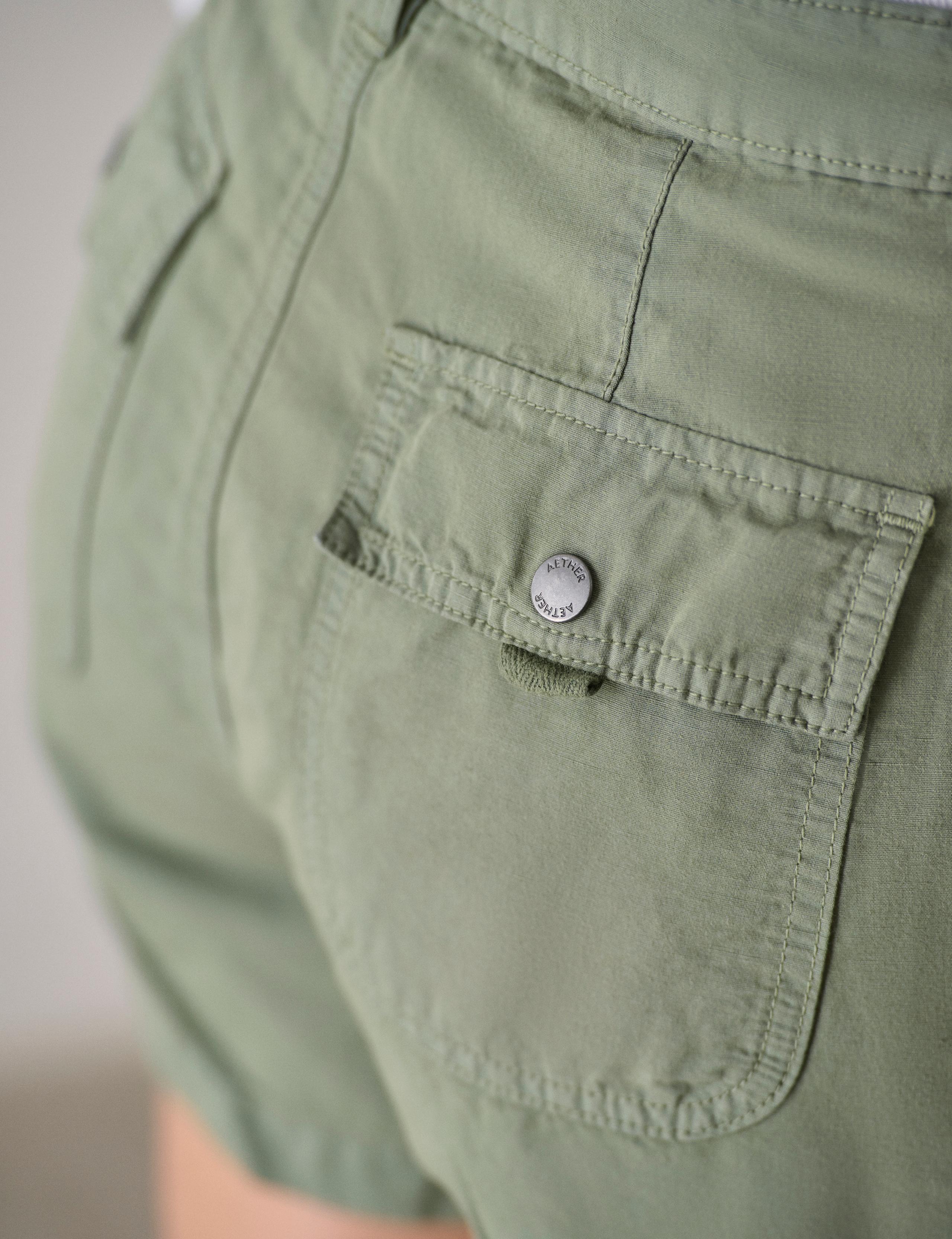 The back of these adventure shorts feature patch pockets with protective flaps, custom snap closures, and herringbone twill tape tabs.