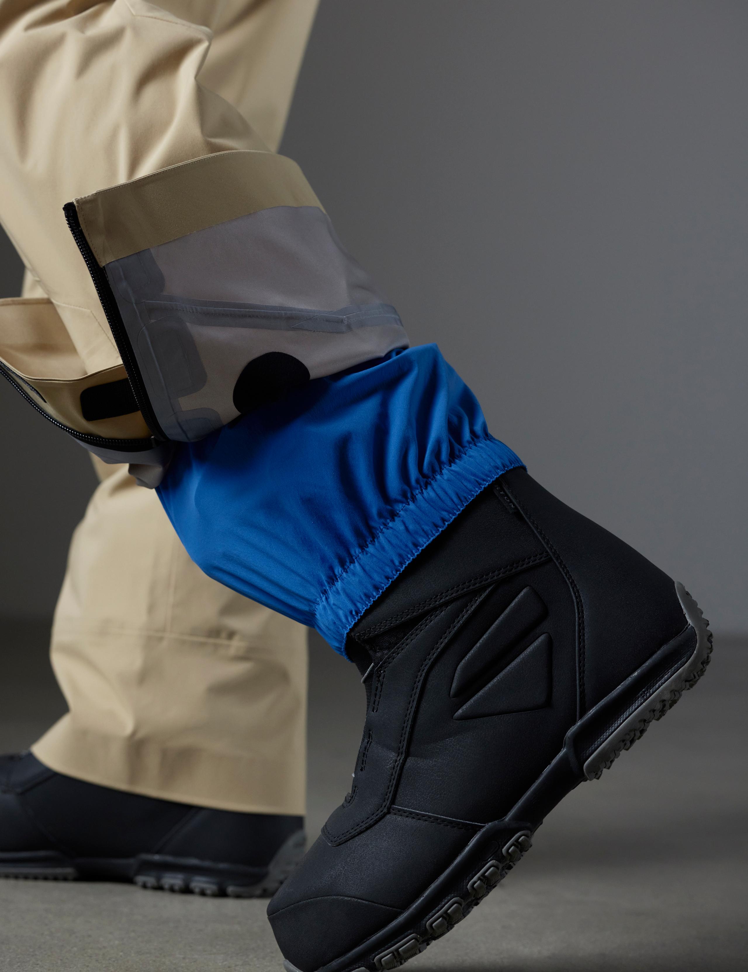 Dermizax™ 3L Protect fabric with sealed seams creates a fully water- and windproof pant that’s durable enough to resist abrasions from backcountry excursions. Internal snow gaiters at the leg openings keep snow out and you dry.