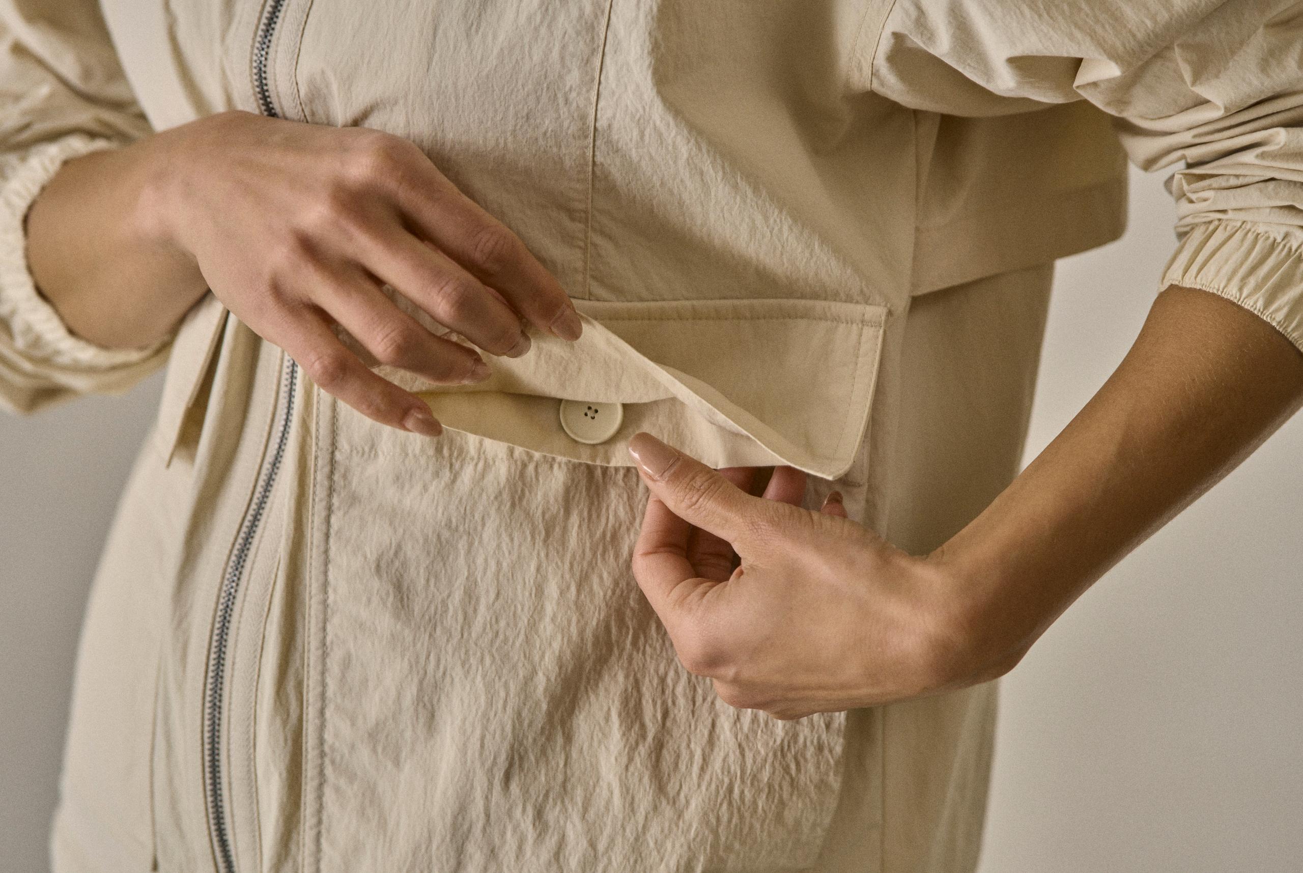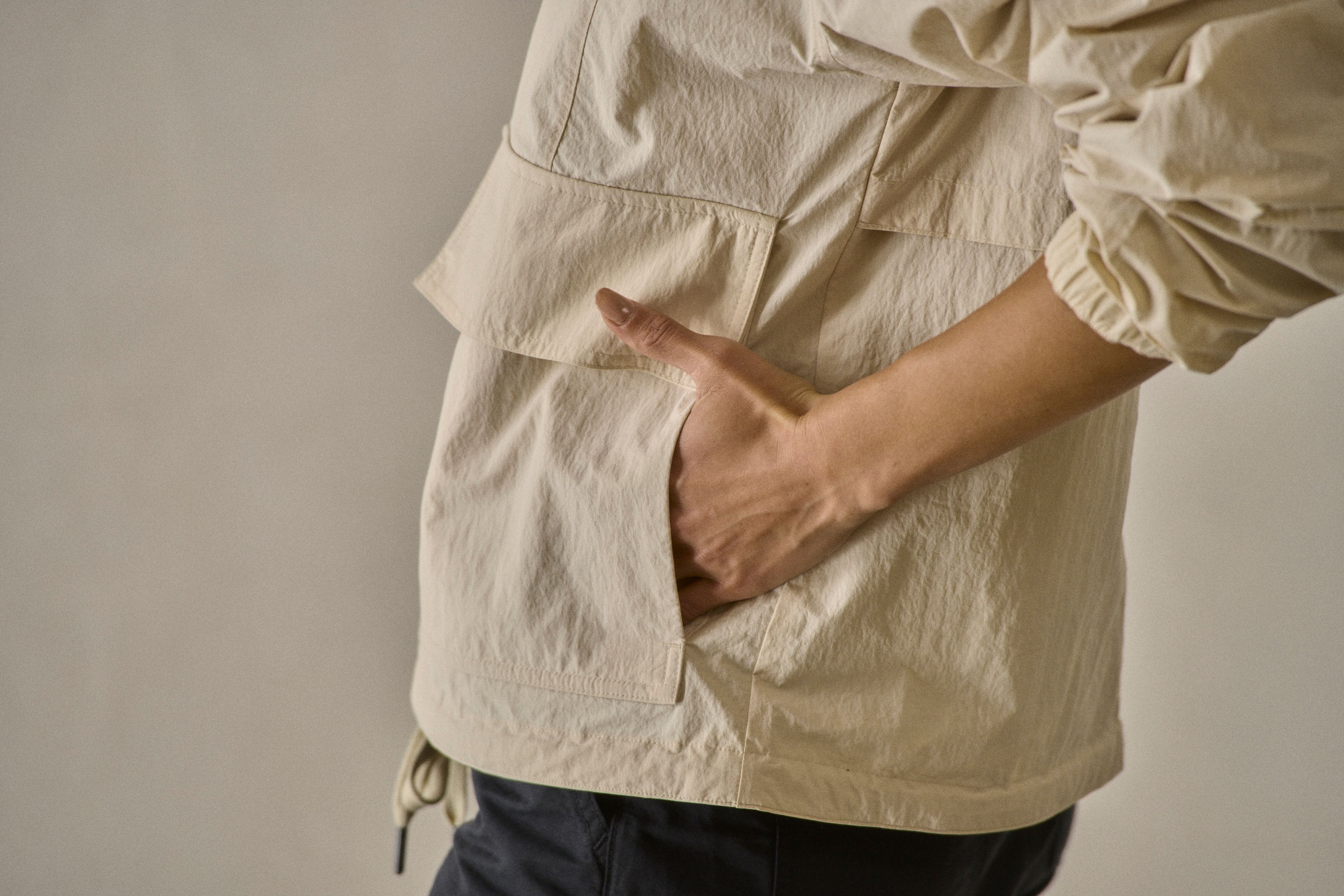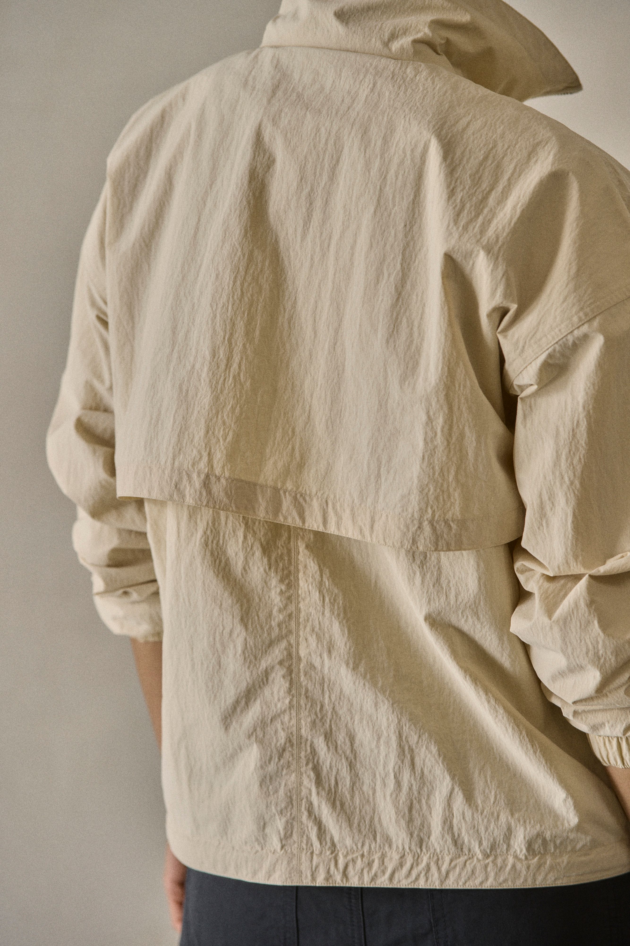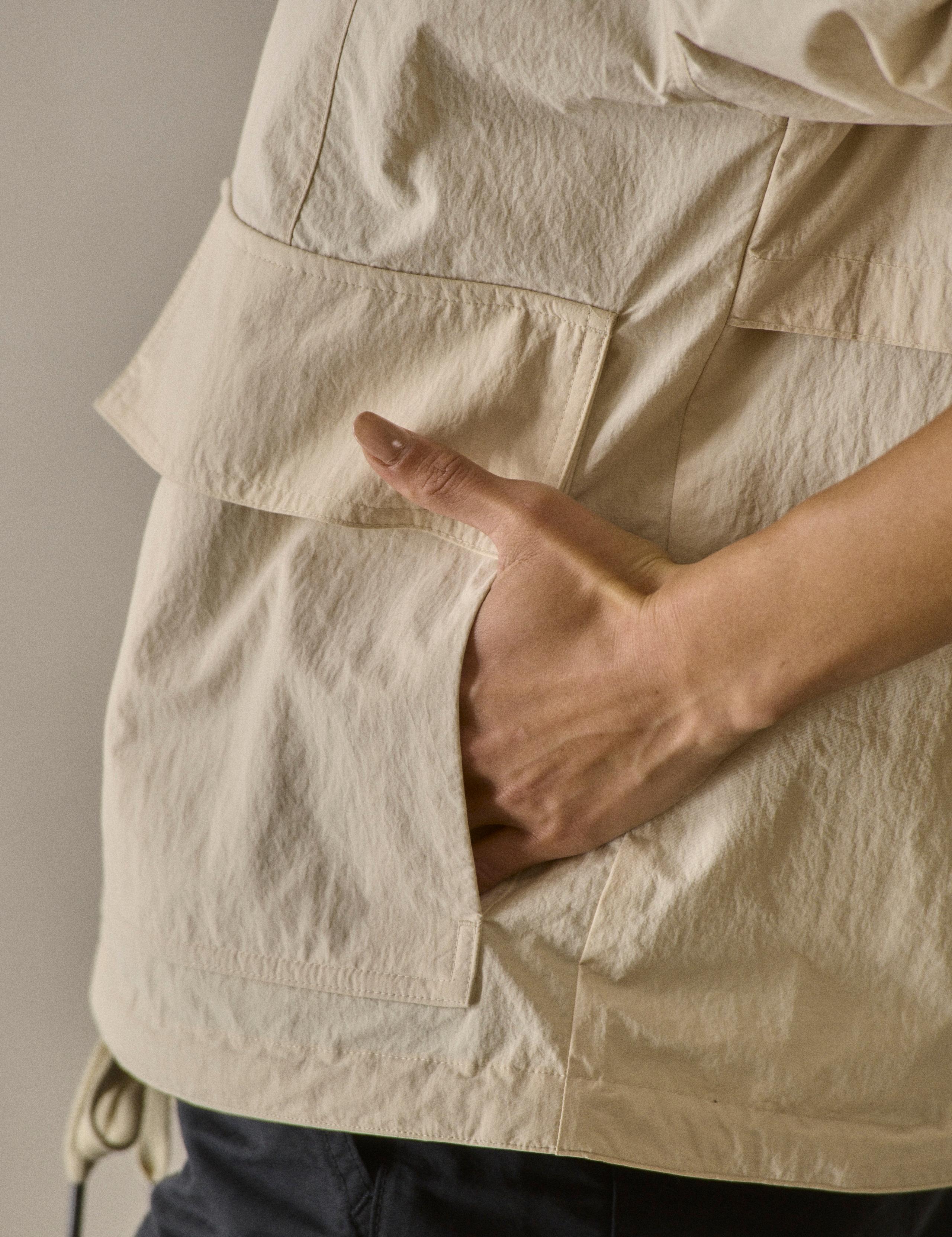 Cut from a vintage-peached nylon derived completely from upcycled content, the entire garment comes trimmed in a soft cotton poplin liner.