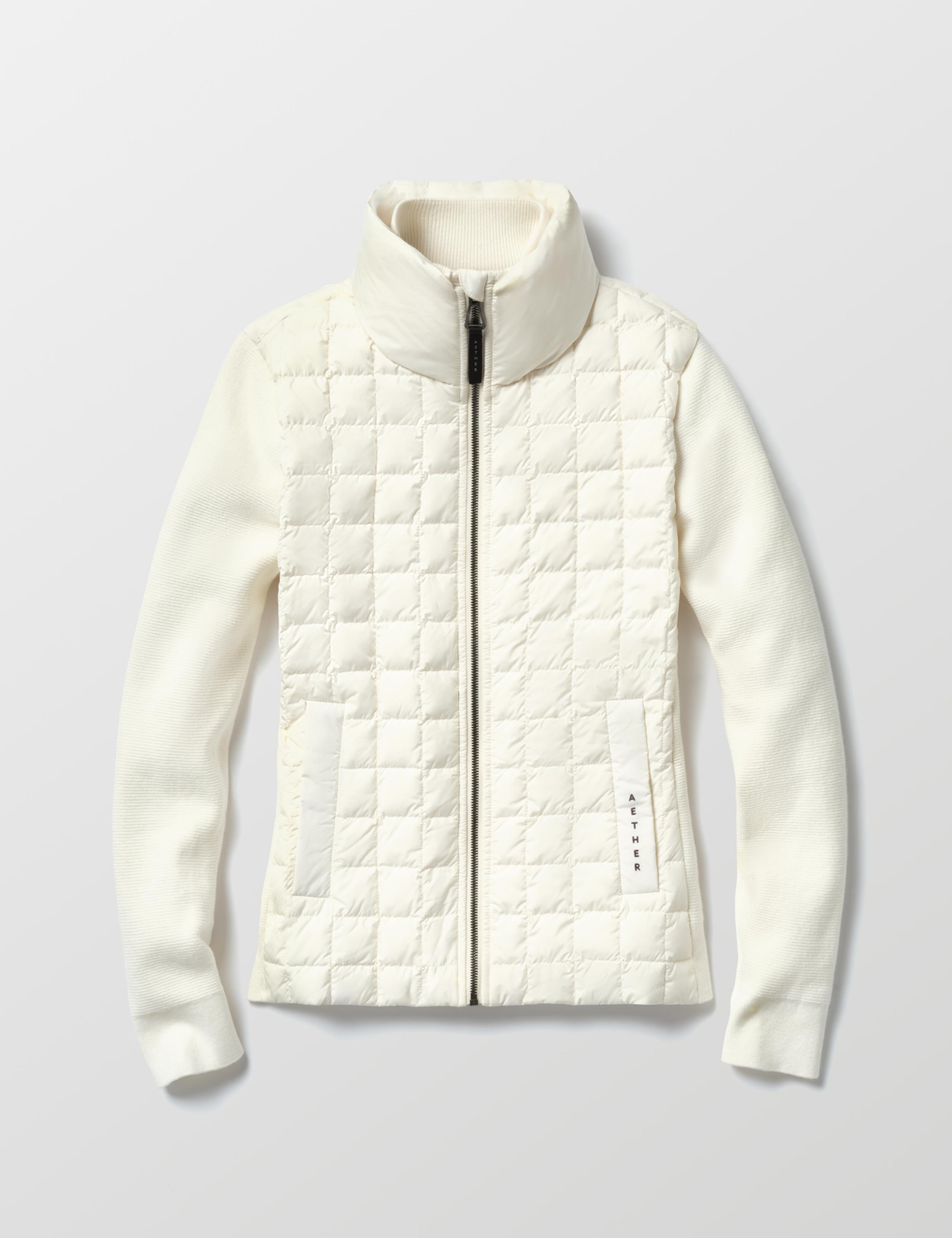 The Phase Full-Zip features 800-fill-power goose-down, box-quilted insulation at the body and exterior collar.