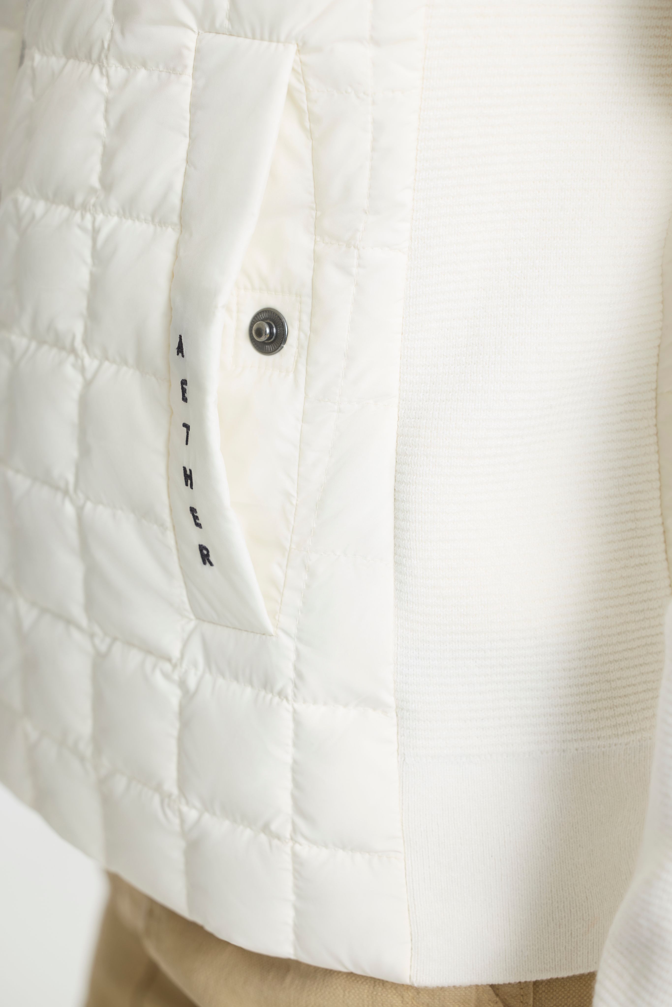 The sleeves, side panels, and interior of the collar are made from a cotton-cashmere blend that feels great against the skin.