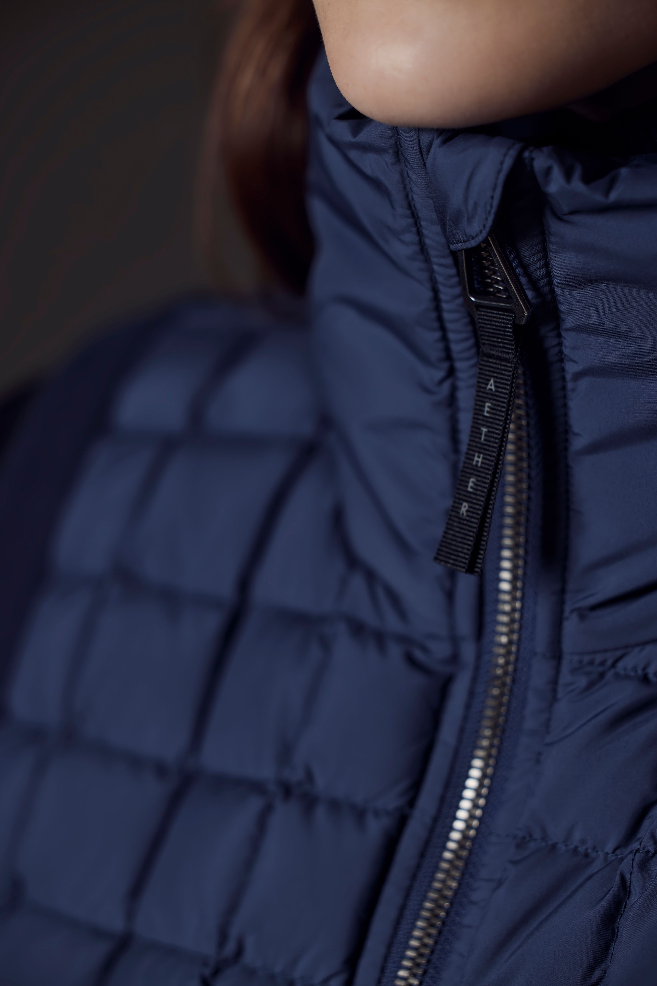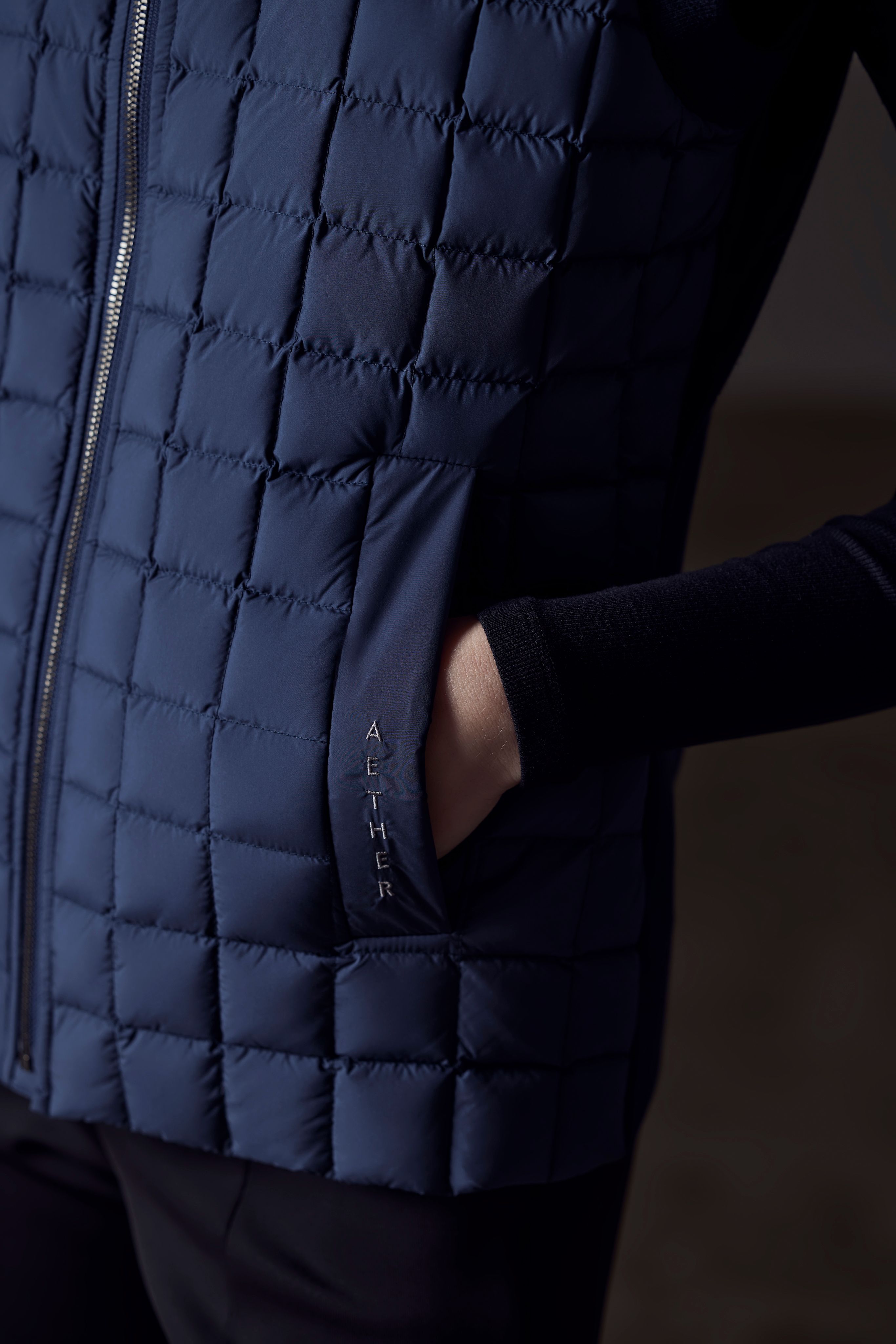 The Phase Vest features 800-fill-power goose-down, box-quilted insulation at the body and a plush outer collar.