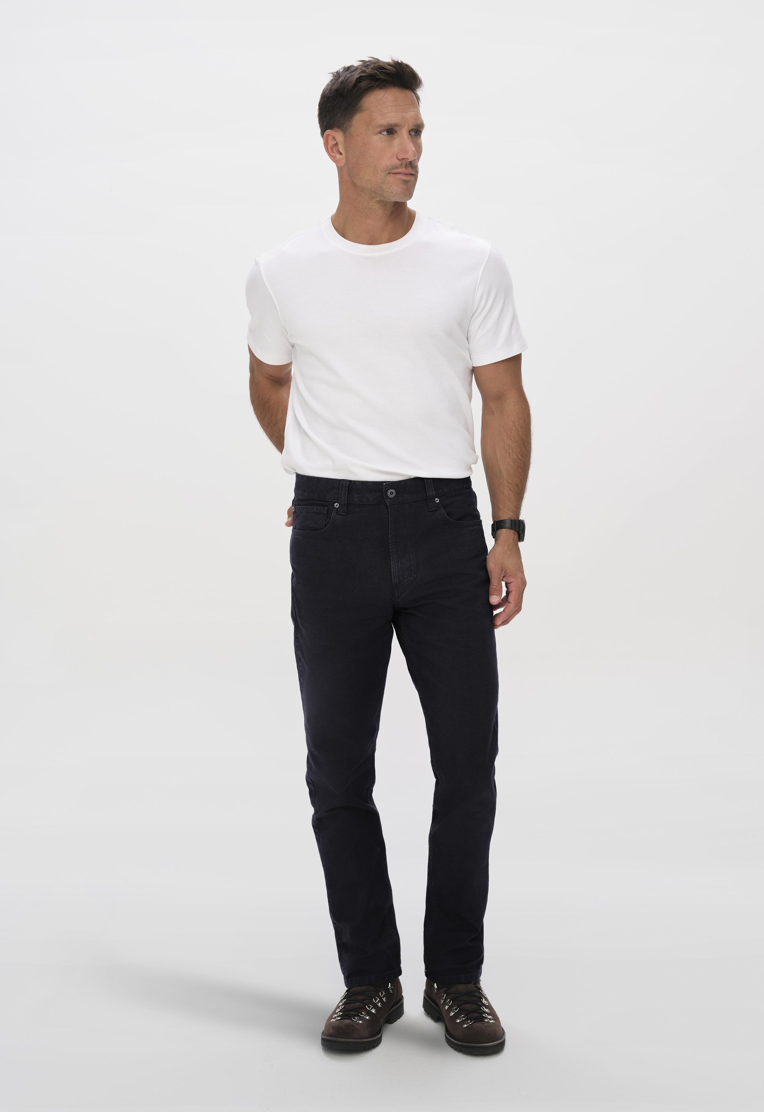 Front full-body view of man wearing the Porter 5-Pocket Pant in Onyx Black from AETHER Apparel.
