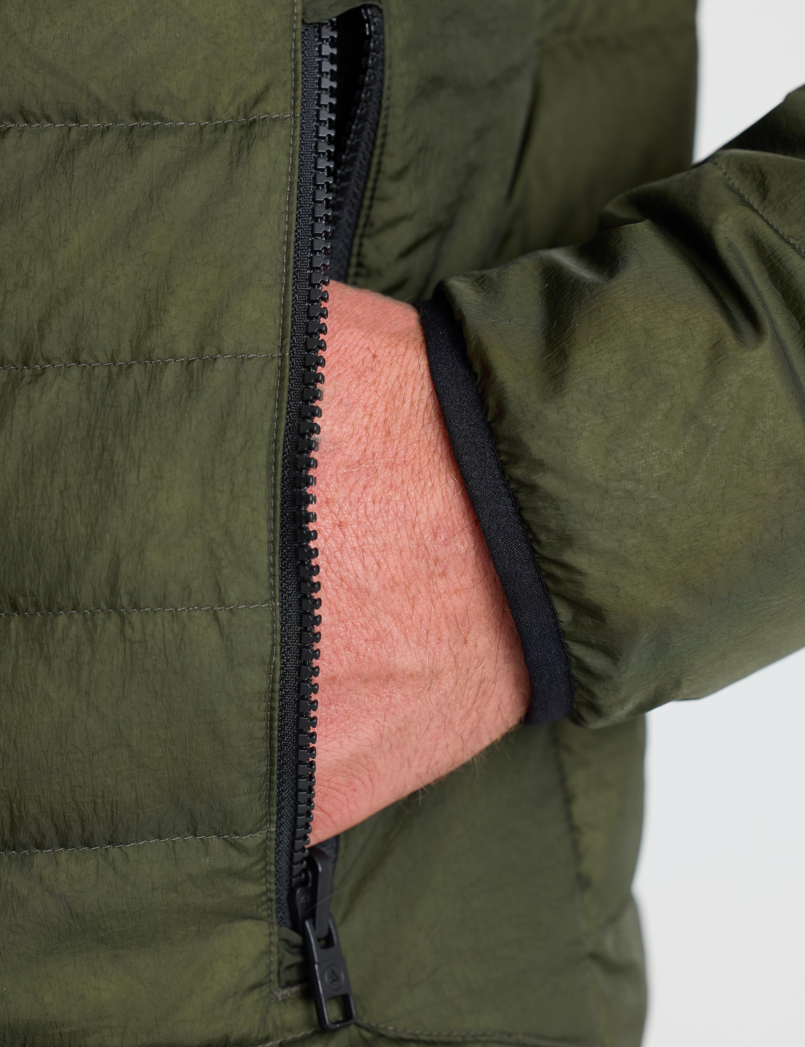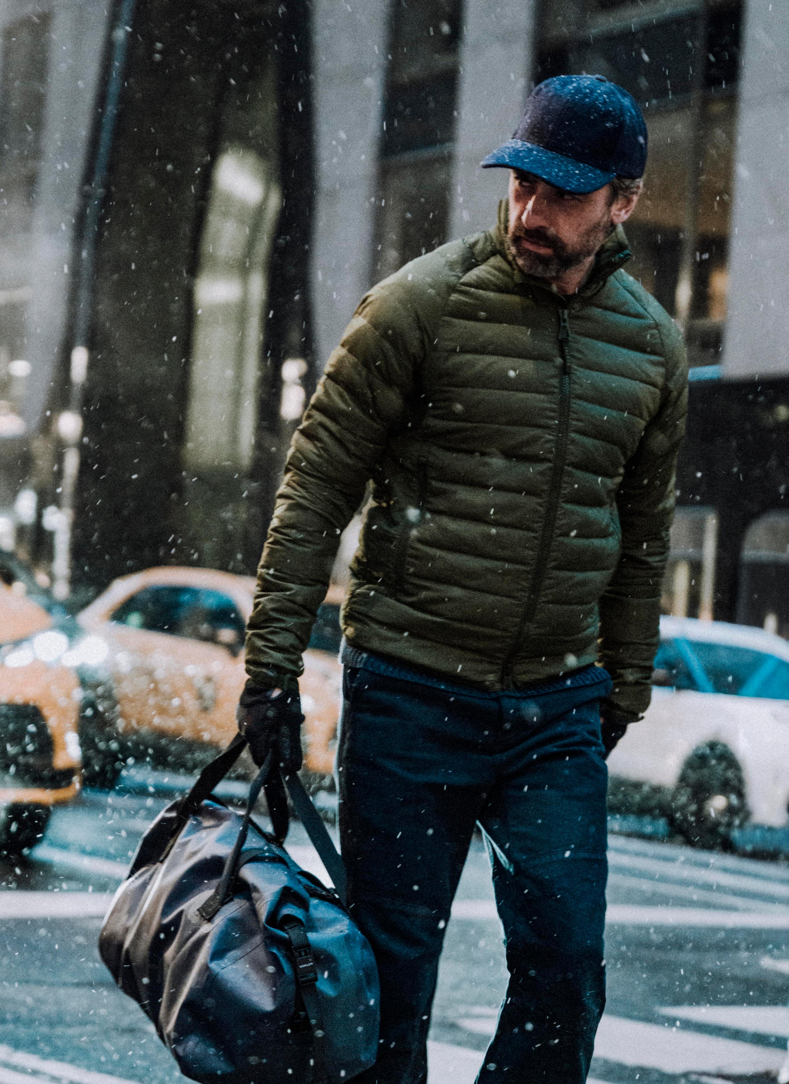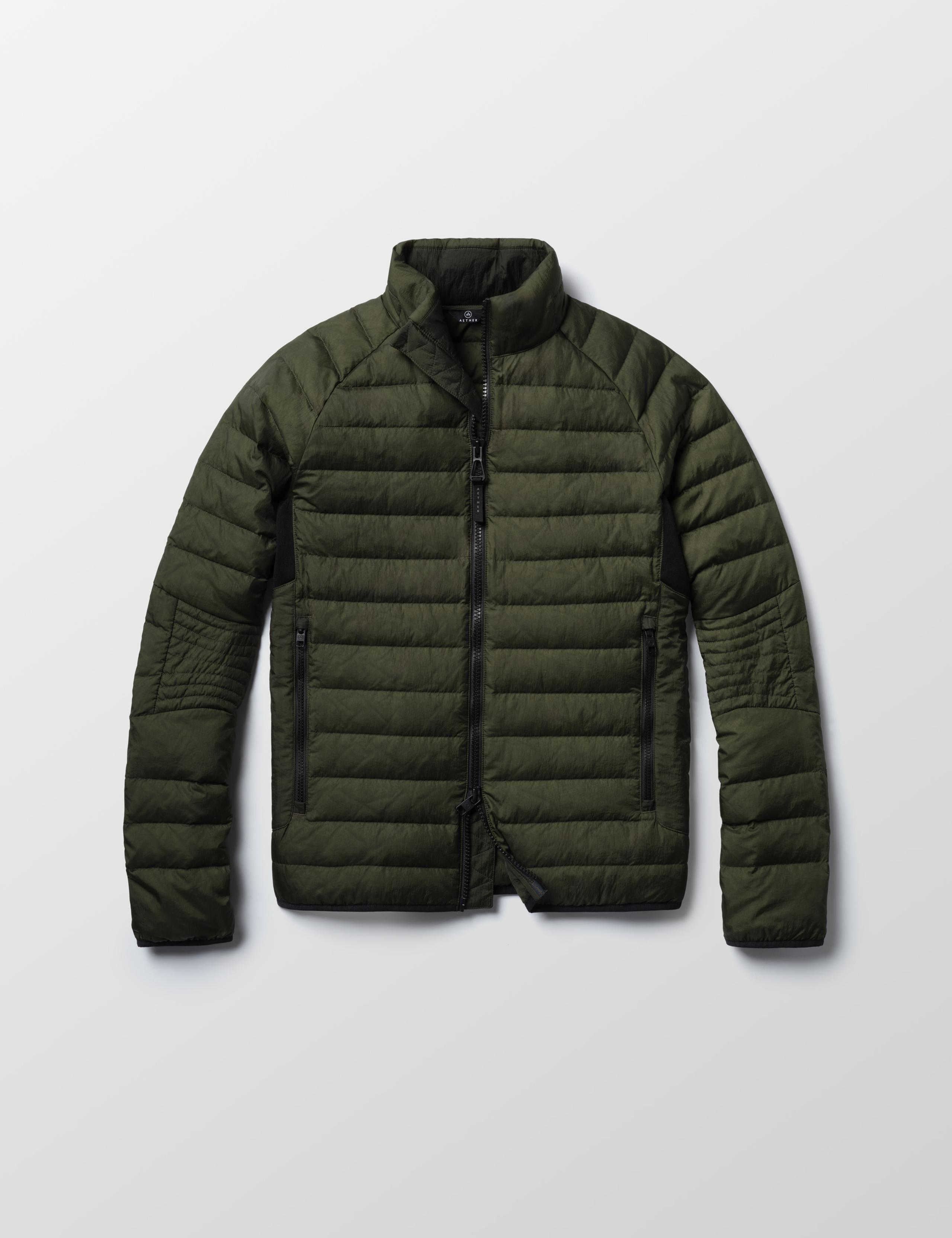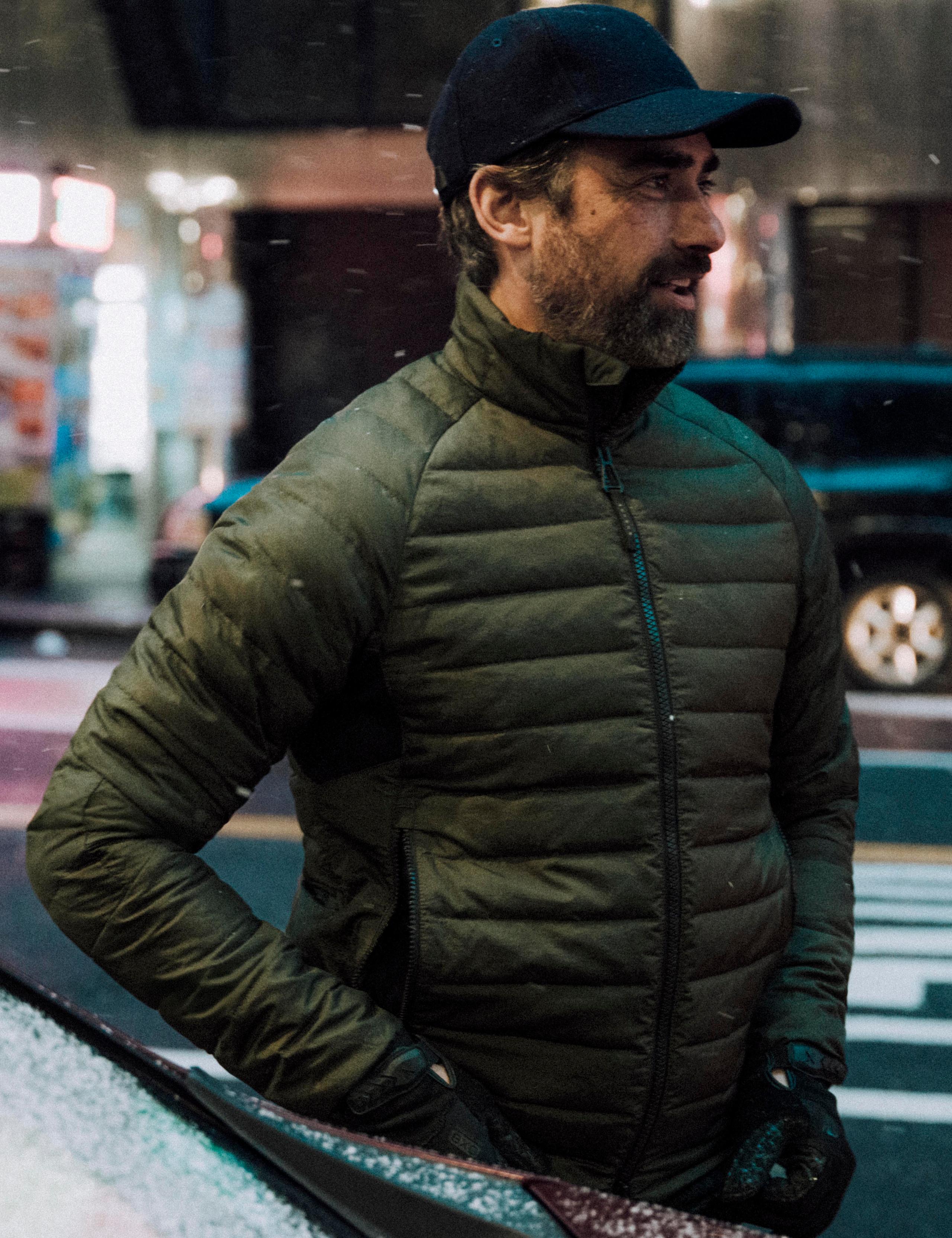 In order to provide an ideal balance of warmth and mobility, the jacket’s insulation is set in quilted baffles at the main body and sleeves, while its side panels have been left un-quilted. And, while not totally impervious to the elements, this travel-ready style is still water repellent.