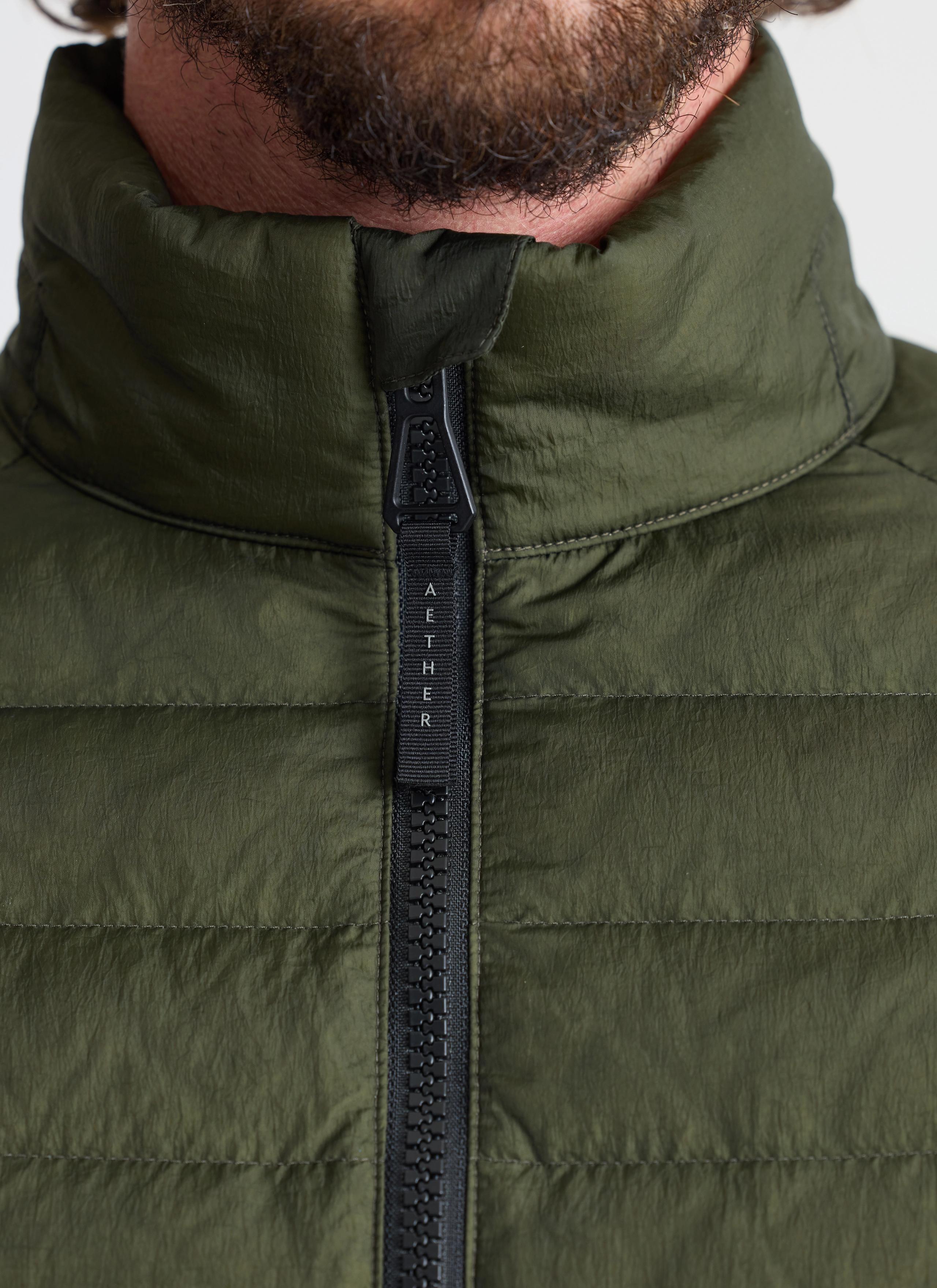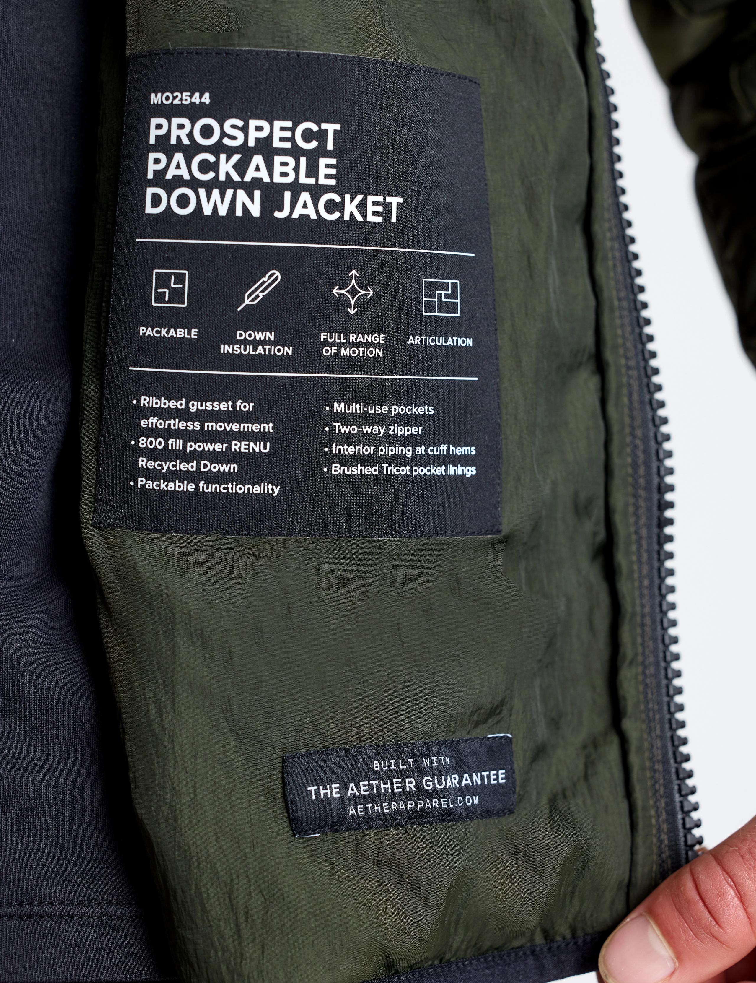 Lending itself brilliantly to four-season use, the Prospect Packable Down Jacket features a #8 two-way VISLON® zipper at its center-front, complete with custom-branded AETHER pulls and grosgrain tabs. Additionally, the jacket features exposed hand pockets with #5 VISLON® zippers and pocket bags trimmed in a cozy brushed tricot on the palm side.