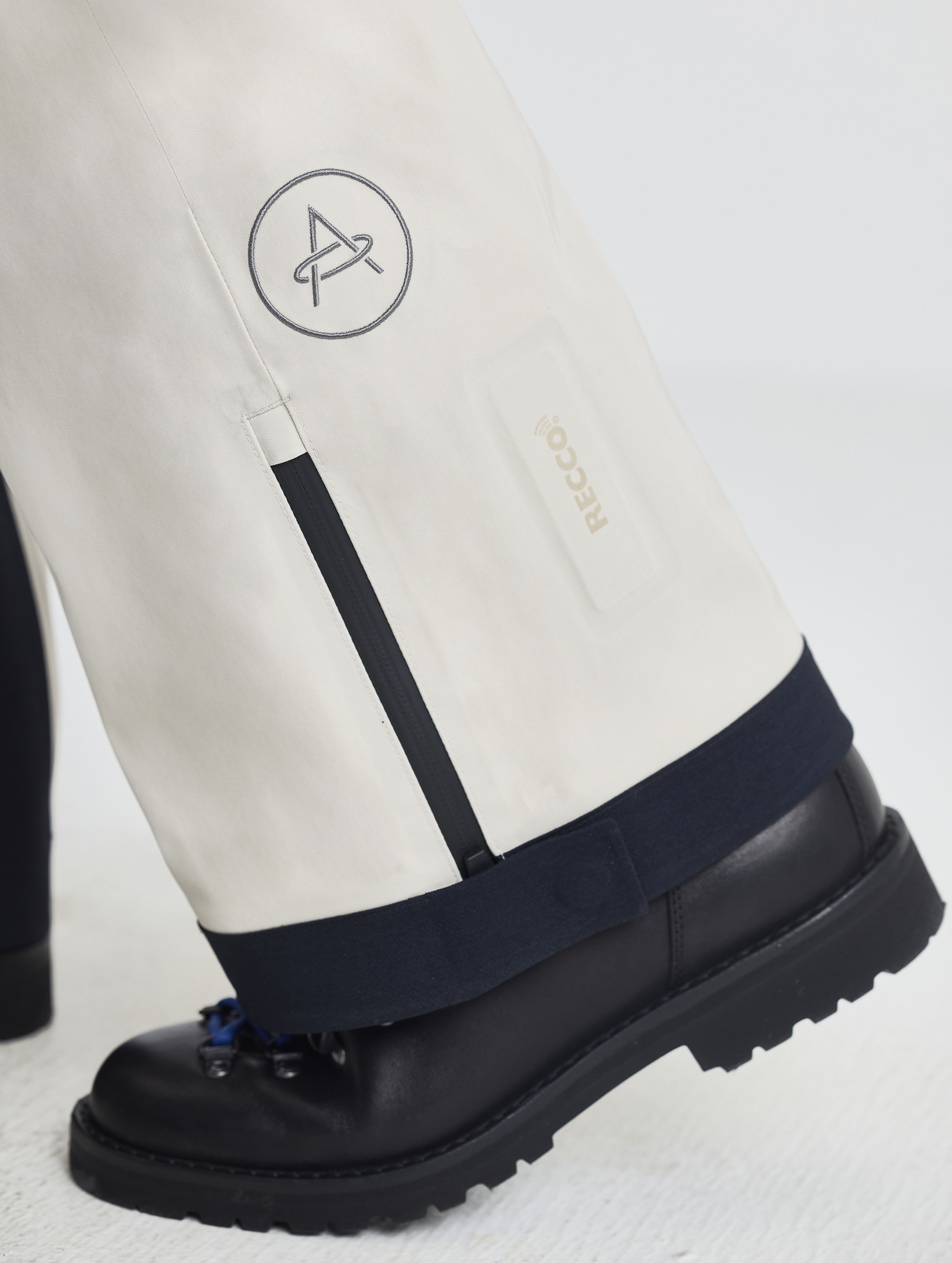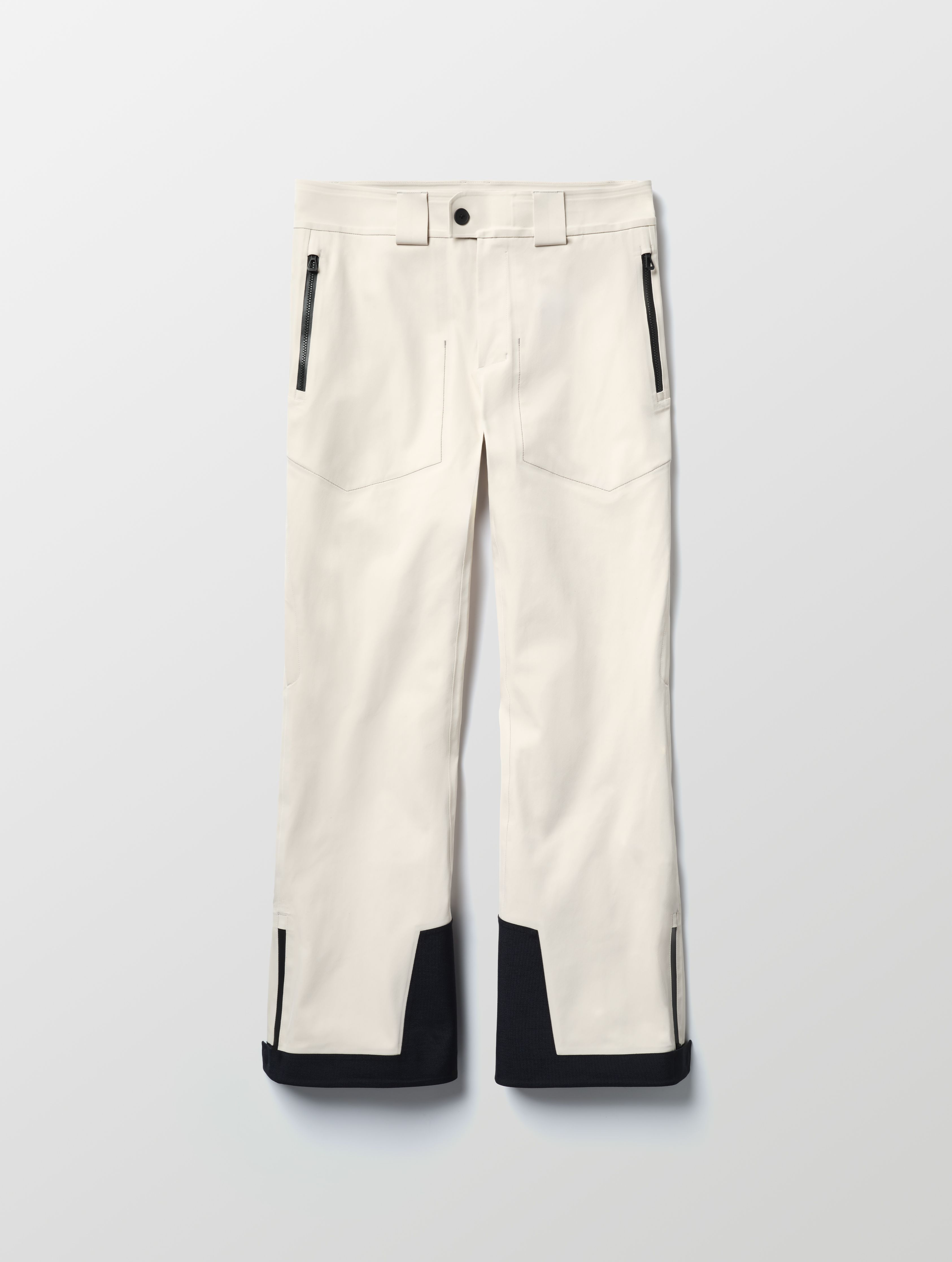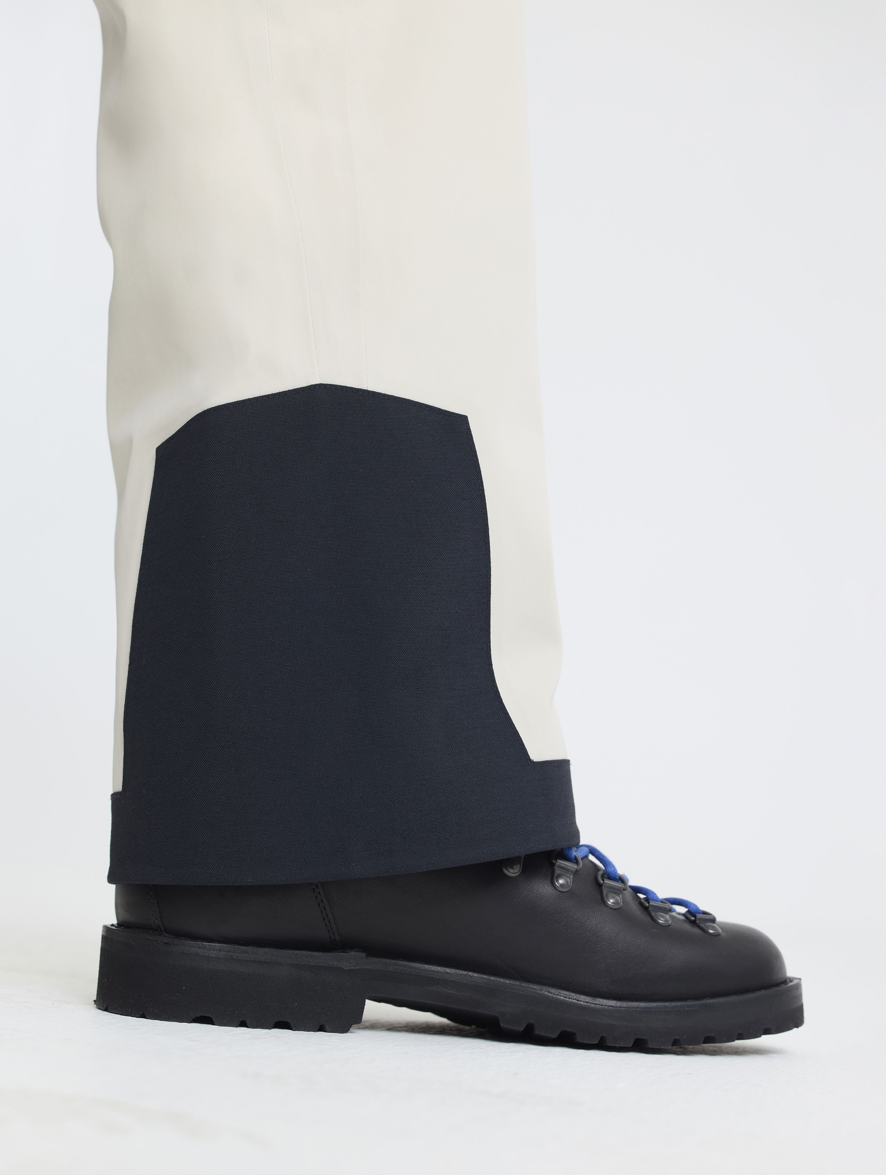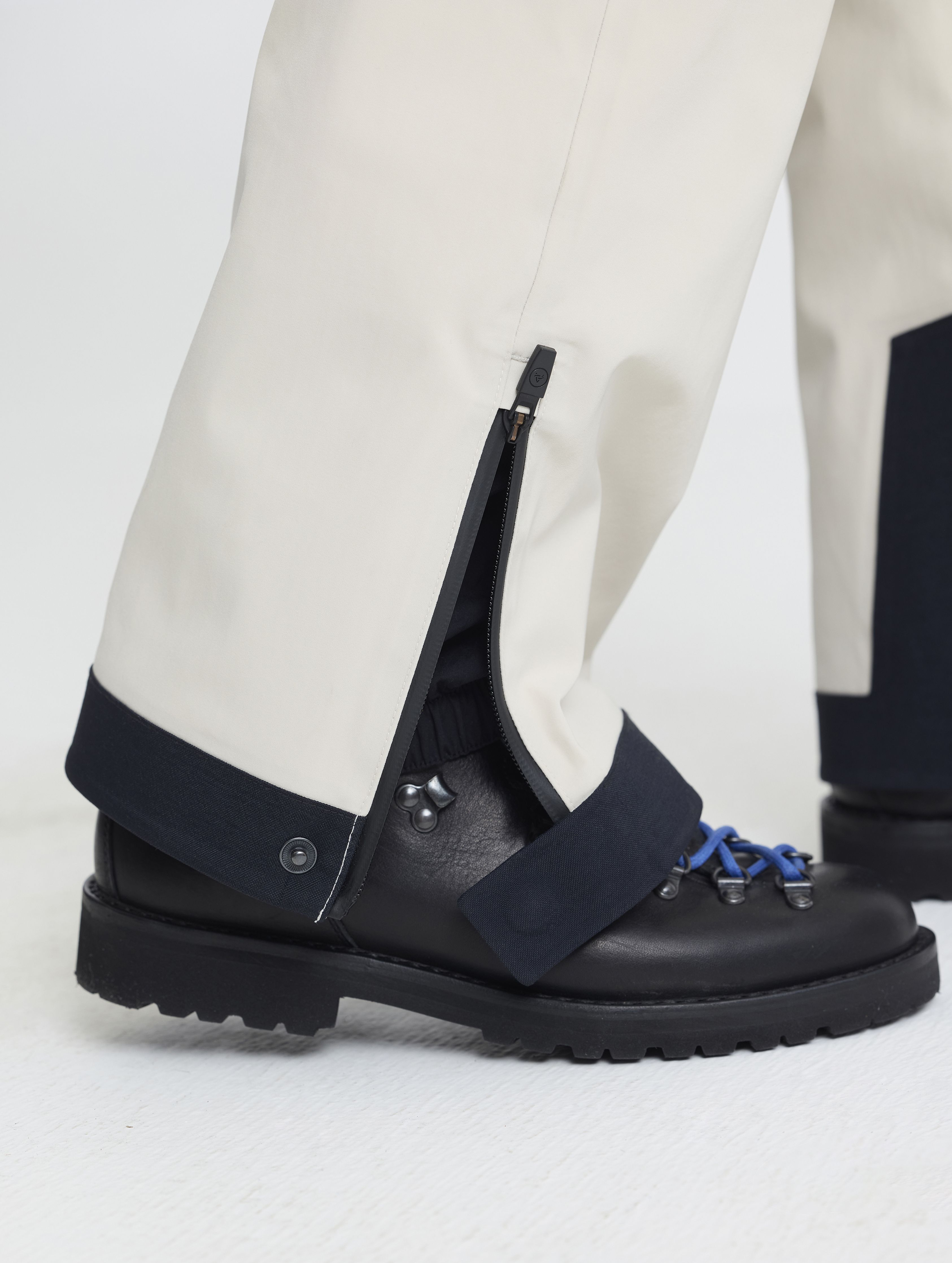 At AETHER, we strive to deliver garments that will serve you season after season and year after year. So, when developing the Ridge Pant, we looked at pairs of our ski pants that have been subjected to hundreds of hours of use in order to hone in on the areas most susceptible to abrasions and wear and tear. This ultimately resulted in the Ridge Pant being bestowed with bonded scuff guards at its cuffs that are designed to protect the pants from edges and buckles. Alongside interior powder cuffs, this scuff guard also features a weatherproof #5 AquaGuard® reverse-coil zipper with glove-friendly pulls positioned under a scuff guard tab with a snap closure.