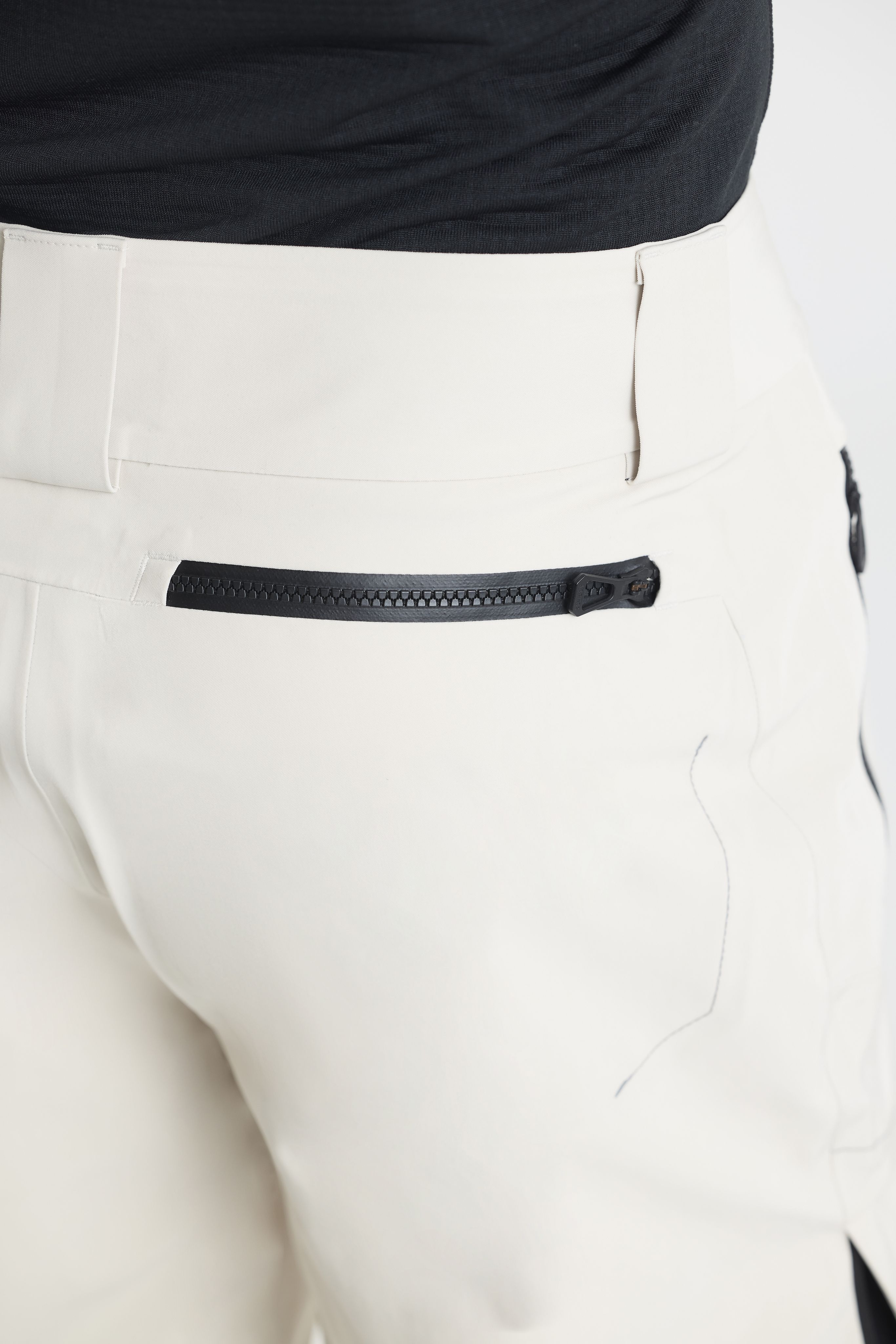 Hidden beneath welt coverings on the outside of the thighs are on-seam vents fitted with #3 reverse-coil zippers that can be opened in order to dump heat and improve thermoregulation.