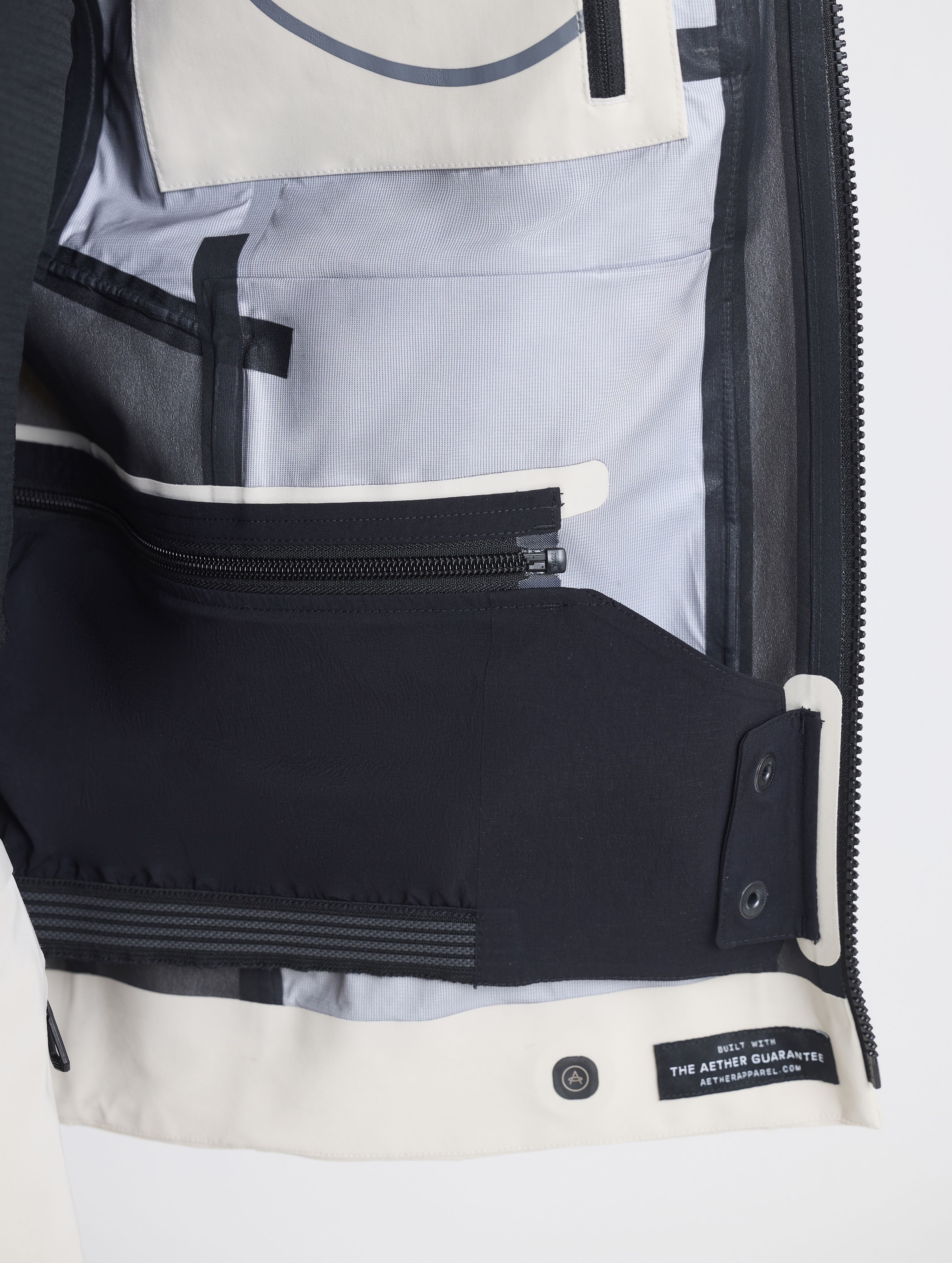 There’s also a welded on-seam pocket at the back yoke that’s secured via a #3 AquaGuard® VISLON® zipper with AETHER-branded pulls and a contrasting shadow stitch detail.