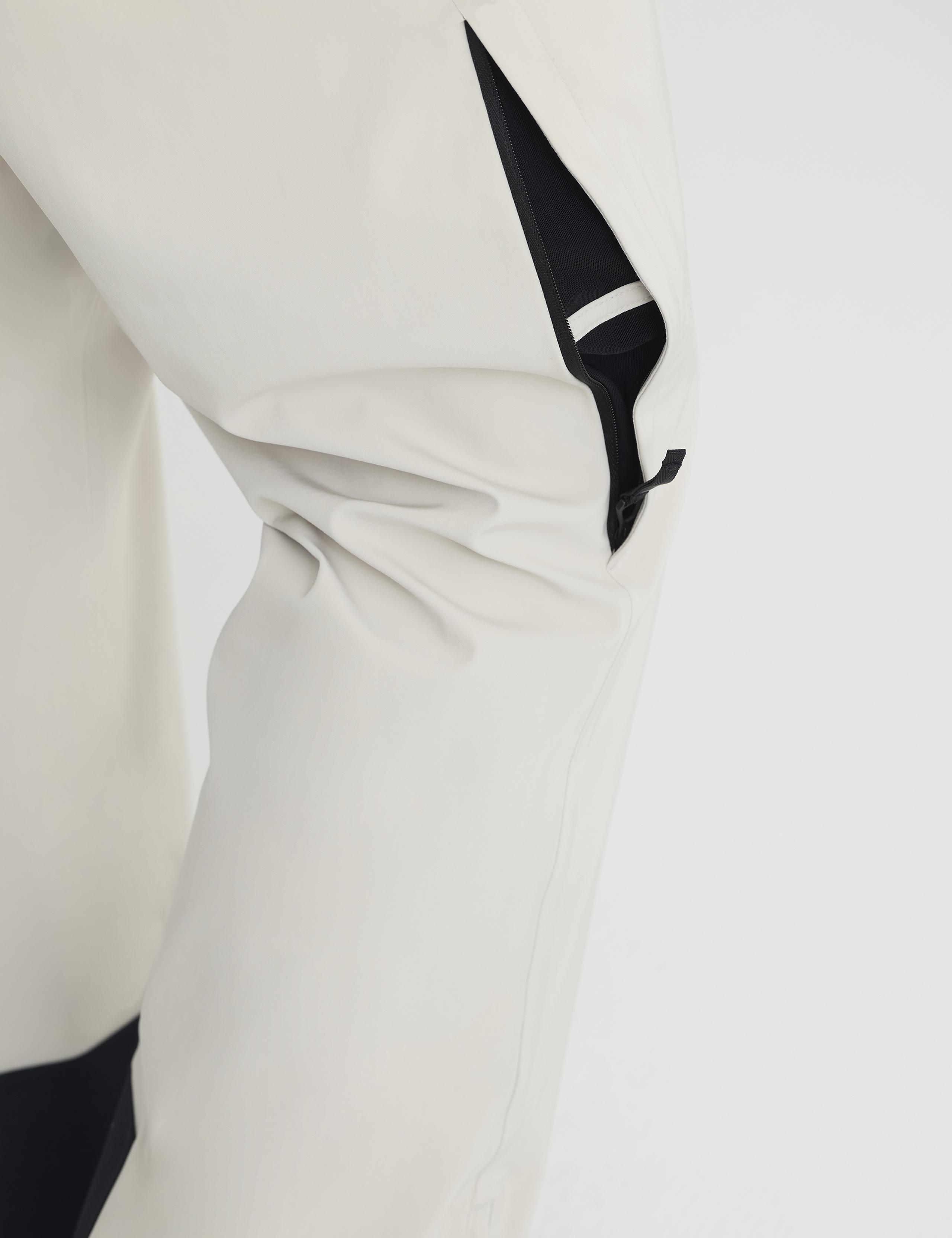 Hidden beneath welt coverings on the outside of the thighs are on-seam vents fitted with #3 reverse-coil zippers that can be opened in order to dump heat and improve thermoregulation.