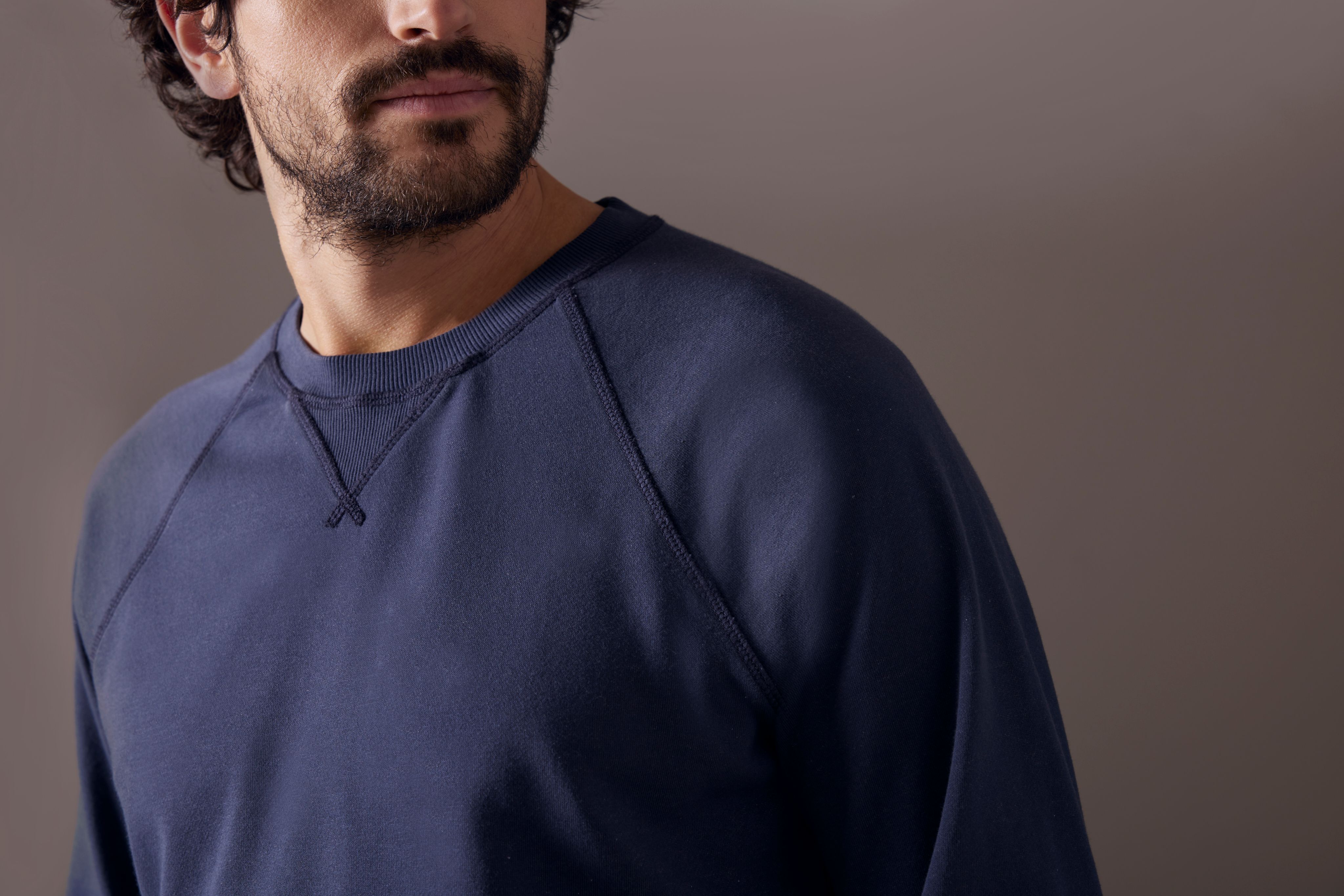 Our Solstice Lightweight Crew is constructed with a cover stitch at the raglan sleeves for minimal seam allowance and internal comfort for the wearer.