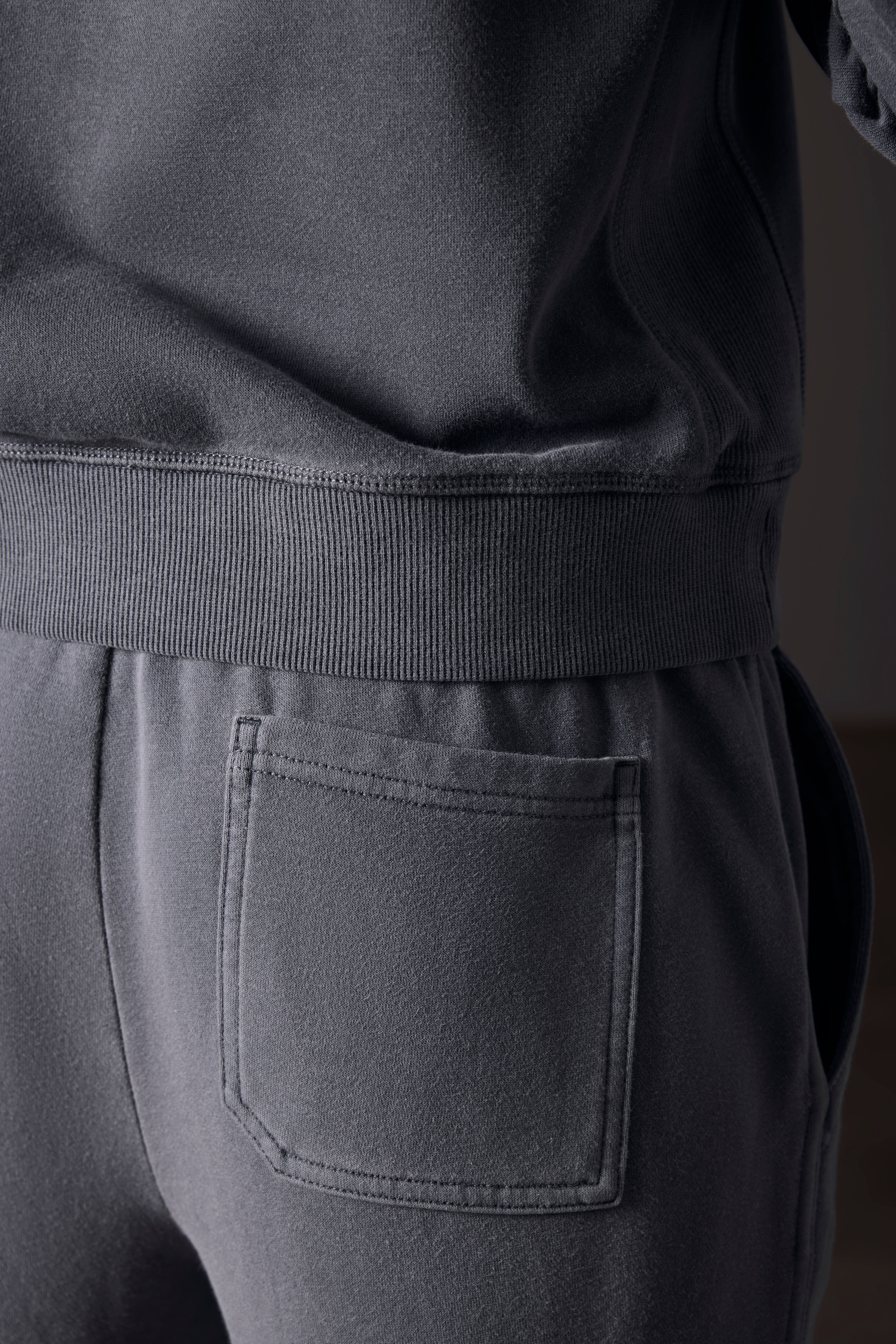 This slub French Terry style lightweight joggers are made with a cotton and polyester blend, and have a natural hand with superior shape retention due to the polyester blend.
