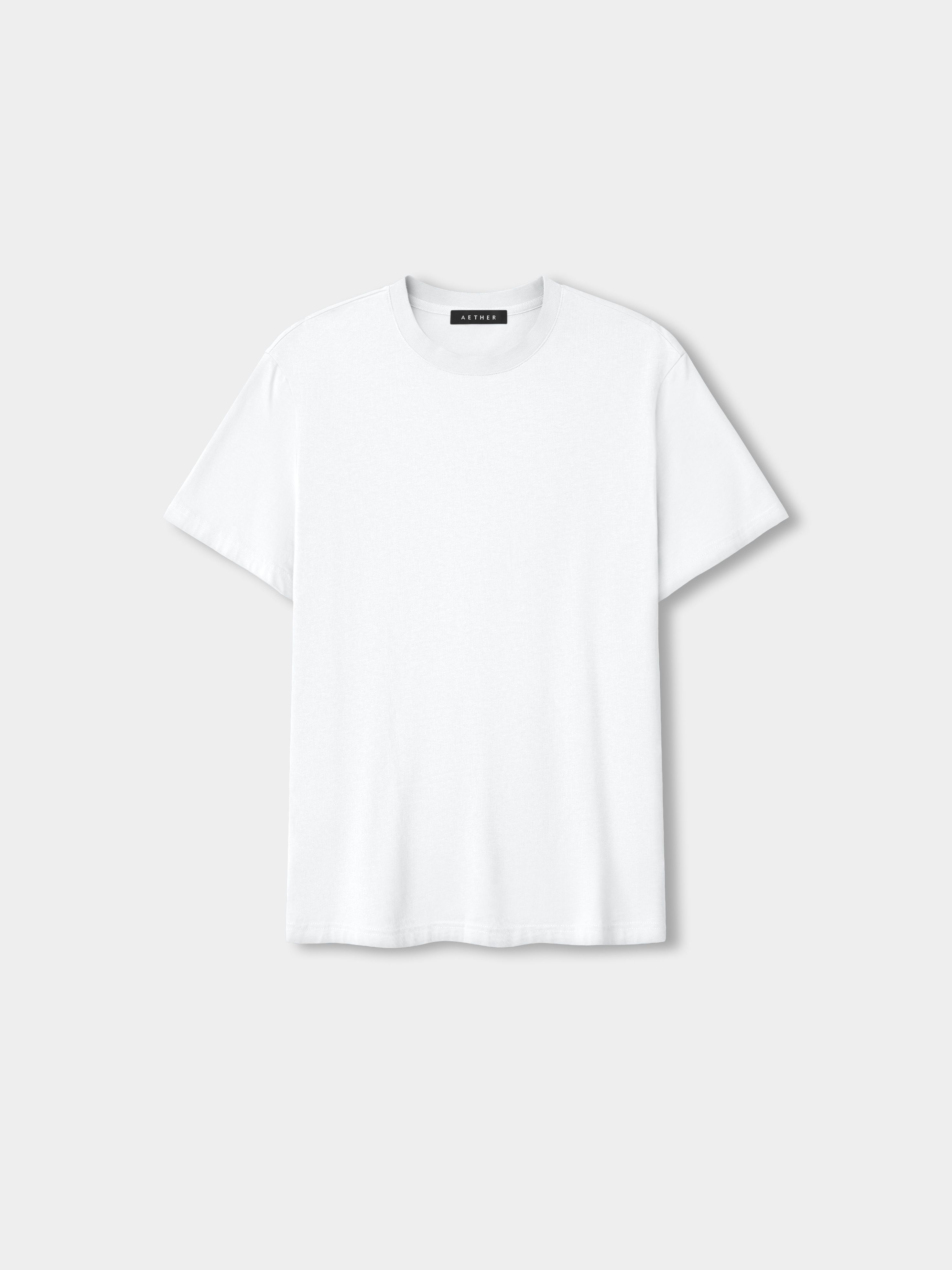 • Flat lay view of the Standard Tee in White from AETHER Apparel.