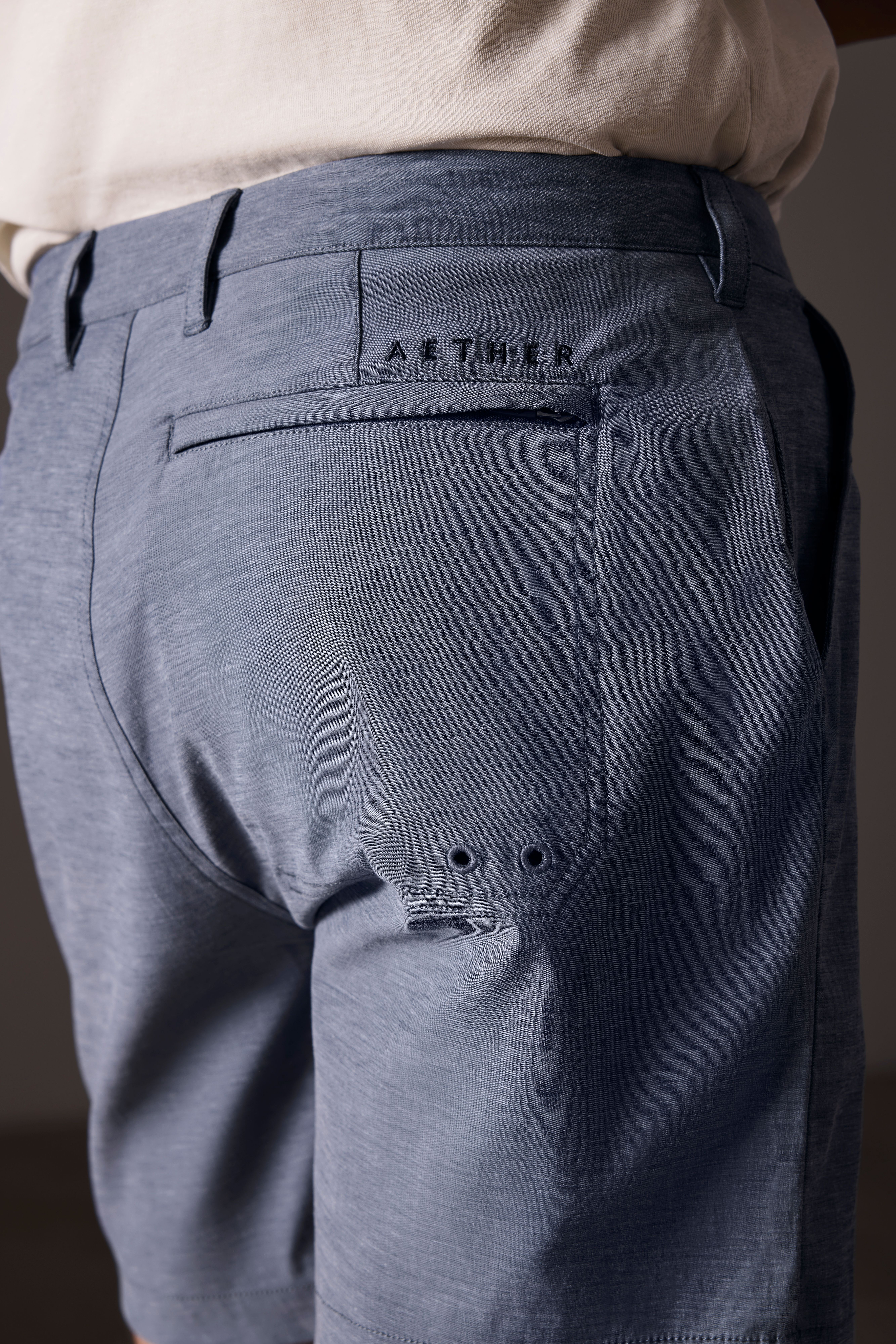 The back welt pocket features a hidden zipper and holes for quick drainage. Above the pocket is a subtle AETHER wordmark embroidery.