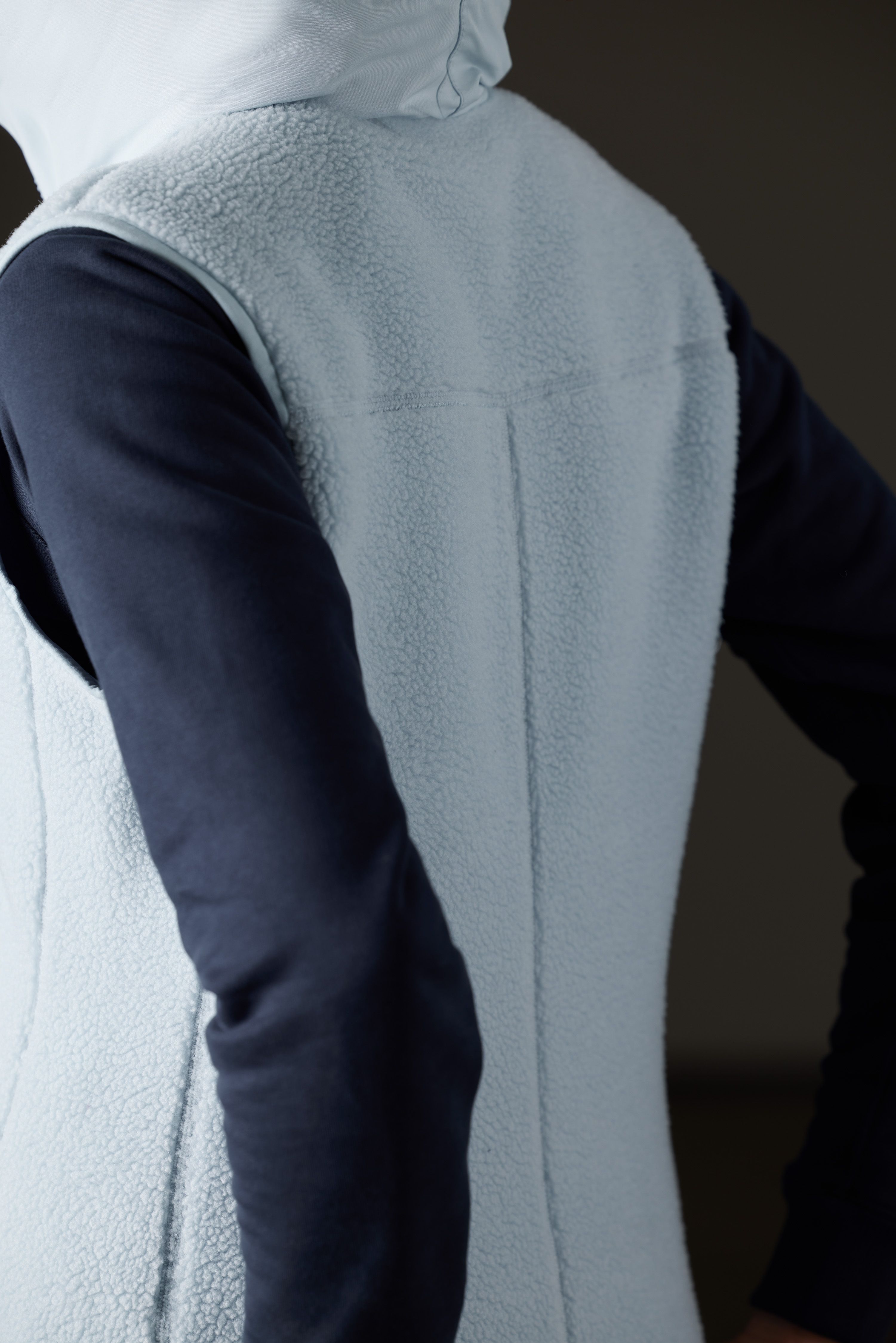 The Terrain Sherpa Vest—made of premium recycled sherpa fleece both inside and out—is a go-to choice for urban adventures.