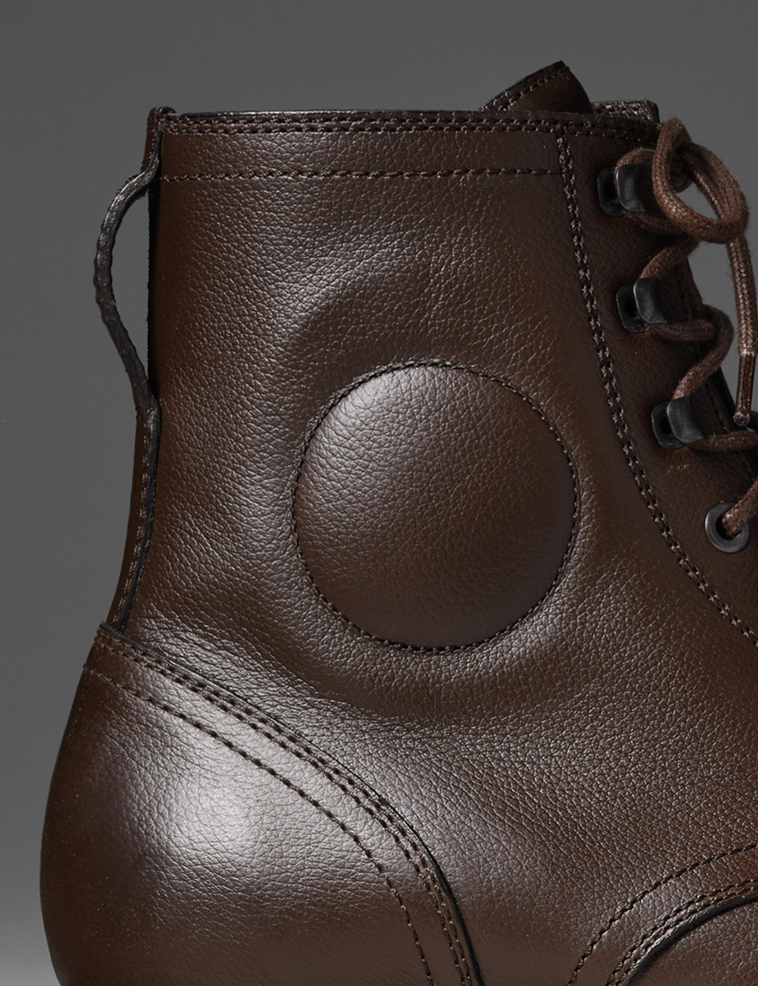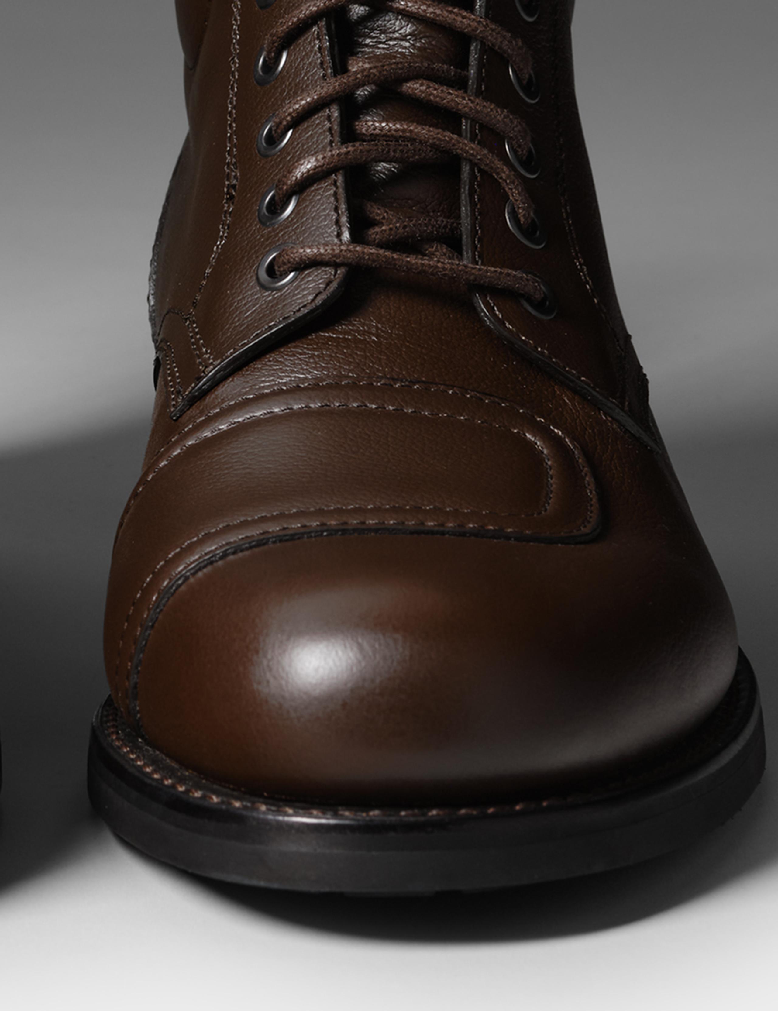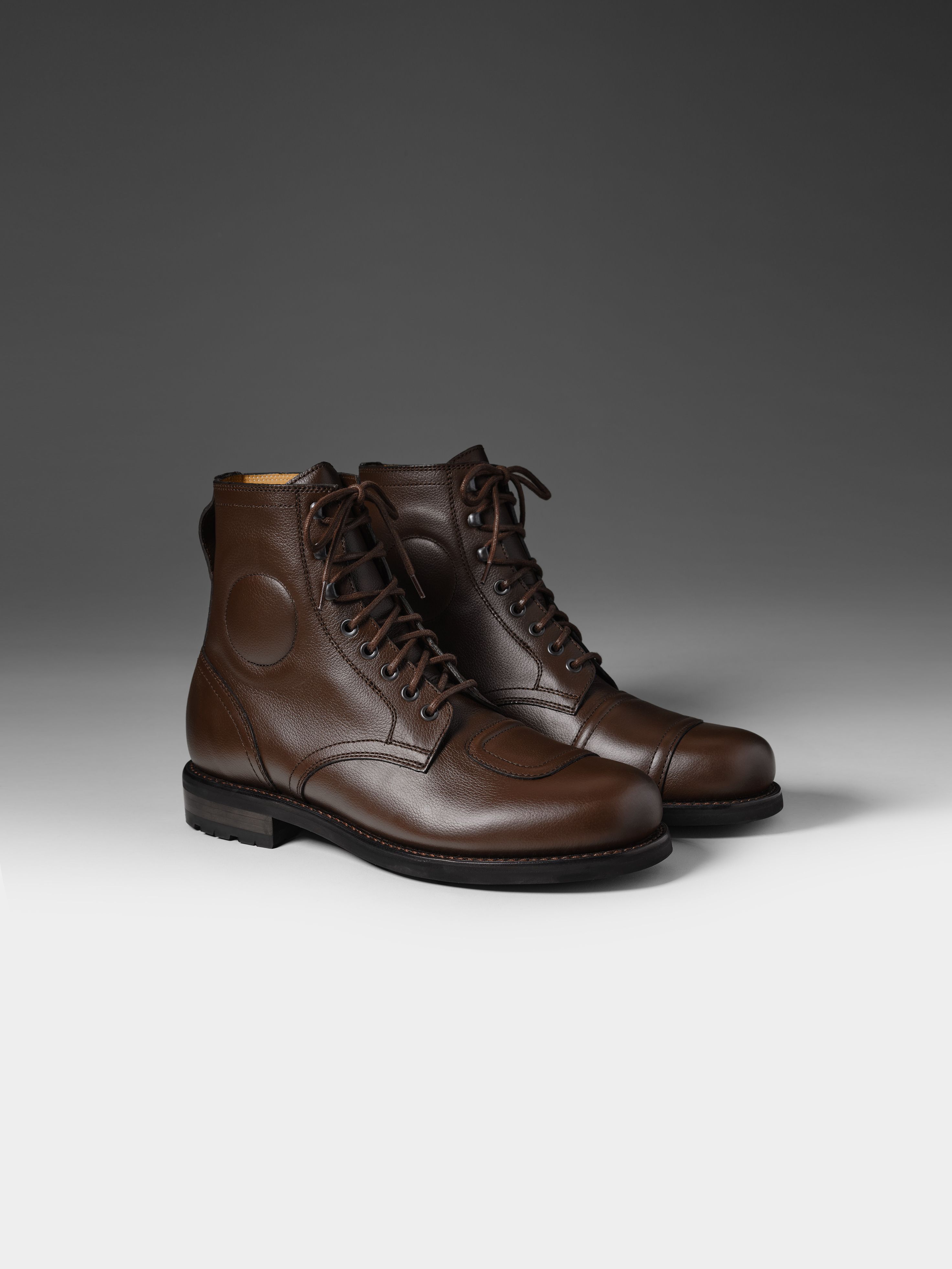 The Tioga Moto Boot is constructed around a set of water-resistant Spanish full-grain cowhide leather uppers with a Spanish calf leather lining and a padded leather tongue. The Tioga’s Goodyear welt construction allows it to be re-soled if the outsole wears down, allowing it to offer a literal lifetime of use — and making it a modern-day heirloom.